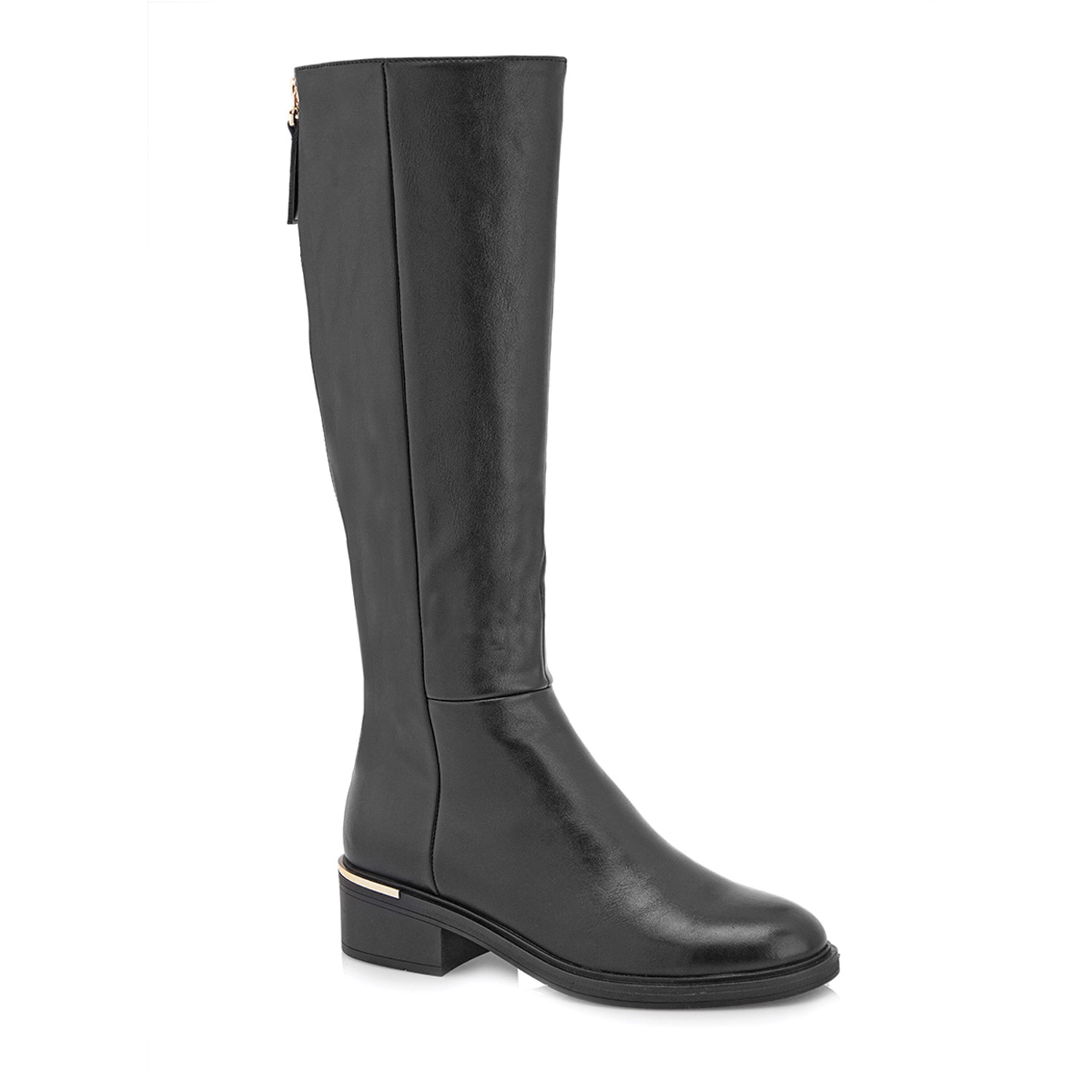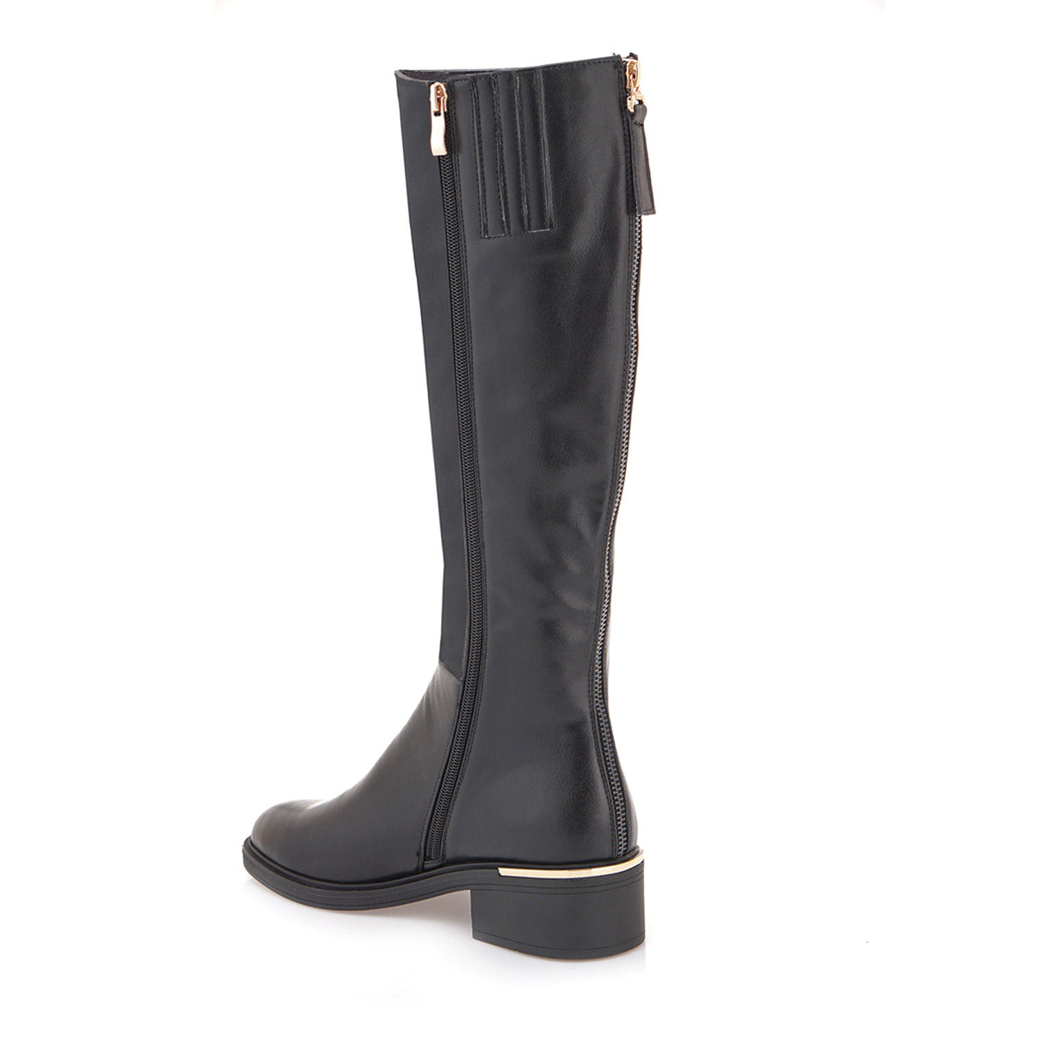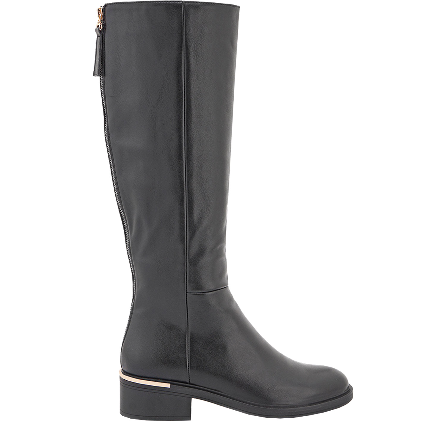 Seven γυναικεία μπότα, σε μαύρο χρώμα, κατασκευασμένη από οικολογικό δέρμα. Ύψος τακουνιού 5εκ.