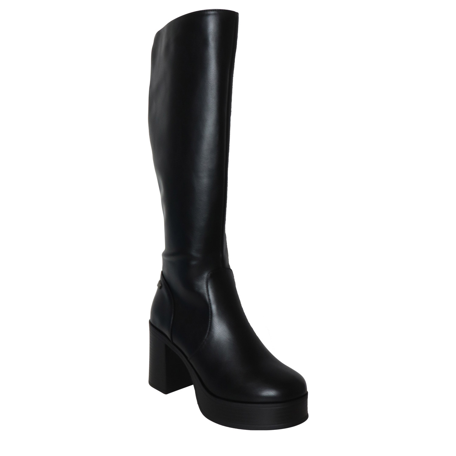 MTNG γυναικεία μπότα, σε μαύρο χρώμα, κατασκευασμένη από οικολογικό δέρμα. Ύψος τακουνιού 9εκ.