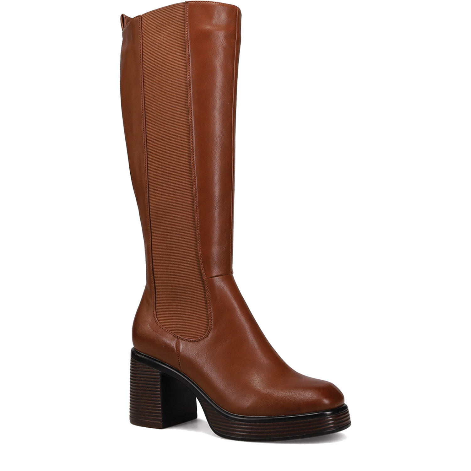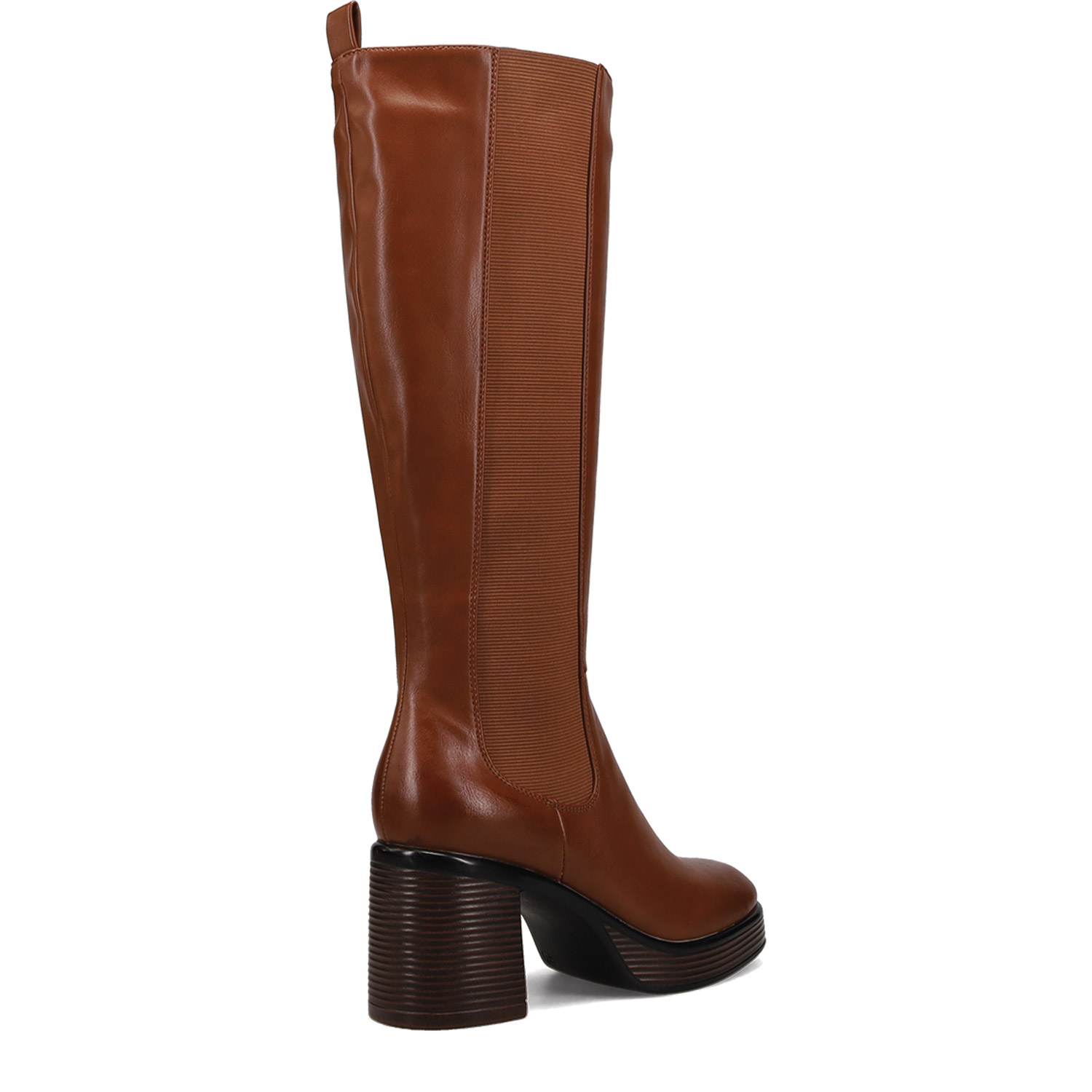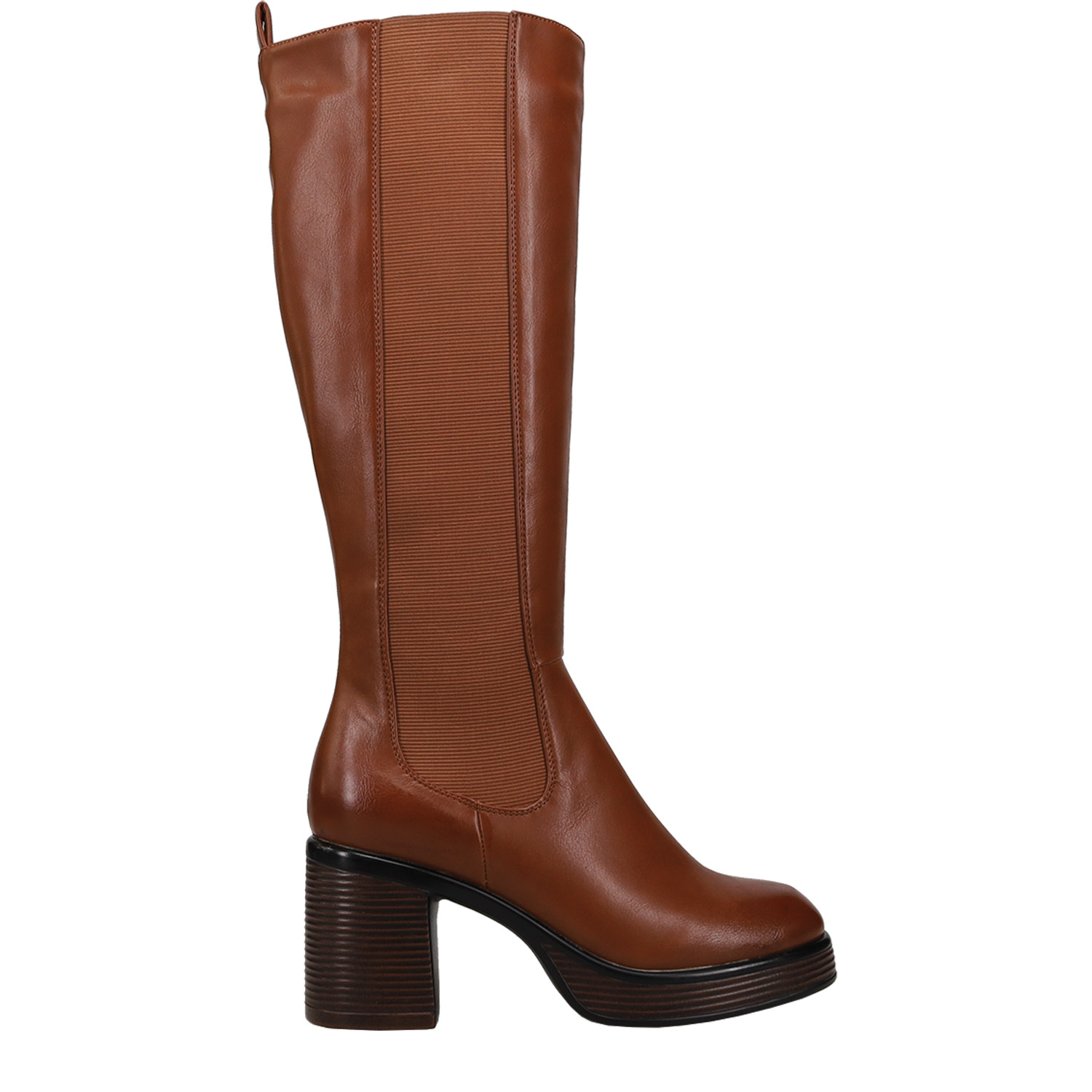 Migato γυναικεία μπότα, σε ταμπά χρώμα, κατασκευασμένη από οικολογικό δέρμα. Ύψος τακουνιού 8εκ.