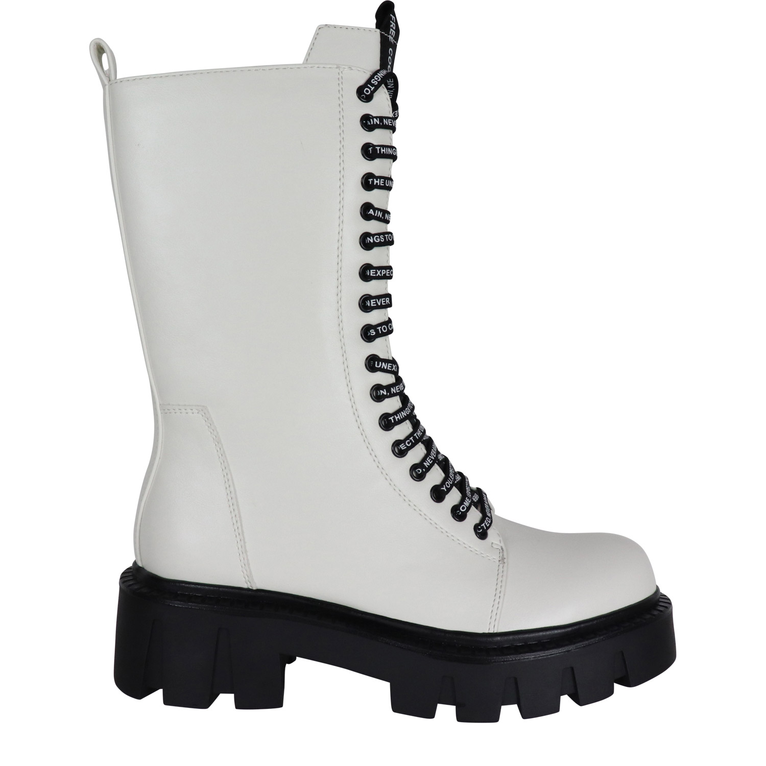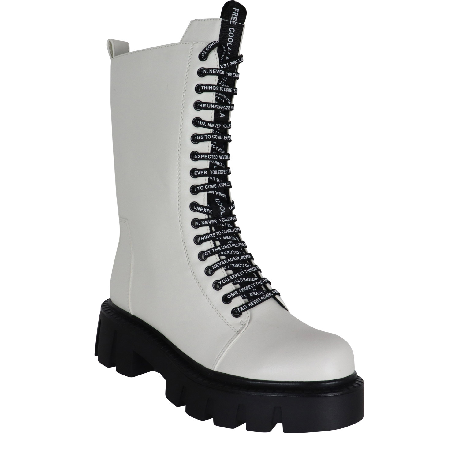 Migato γυναικεία μπότα σε λευκό χρώμα, κατασκευασμένη από οικολογικό δέρμα. Ύψος σόλας 4εκ.