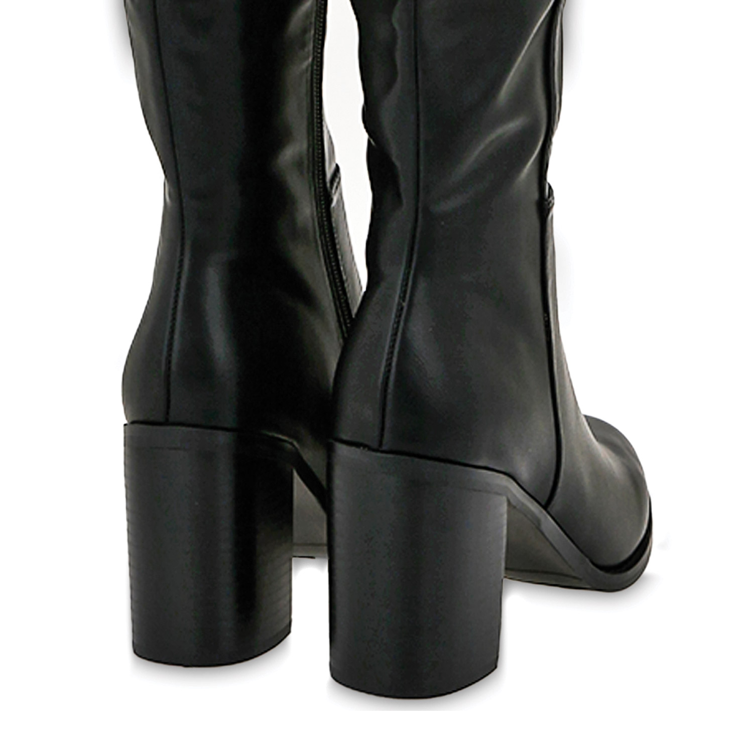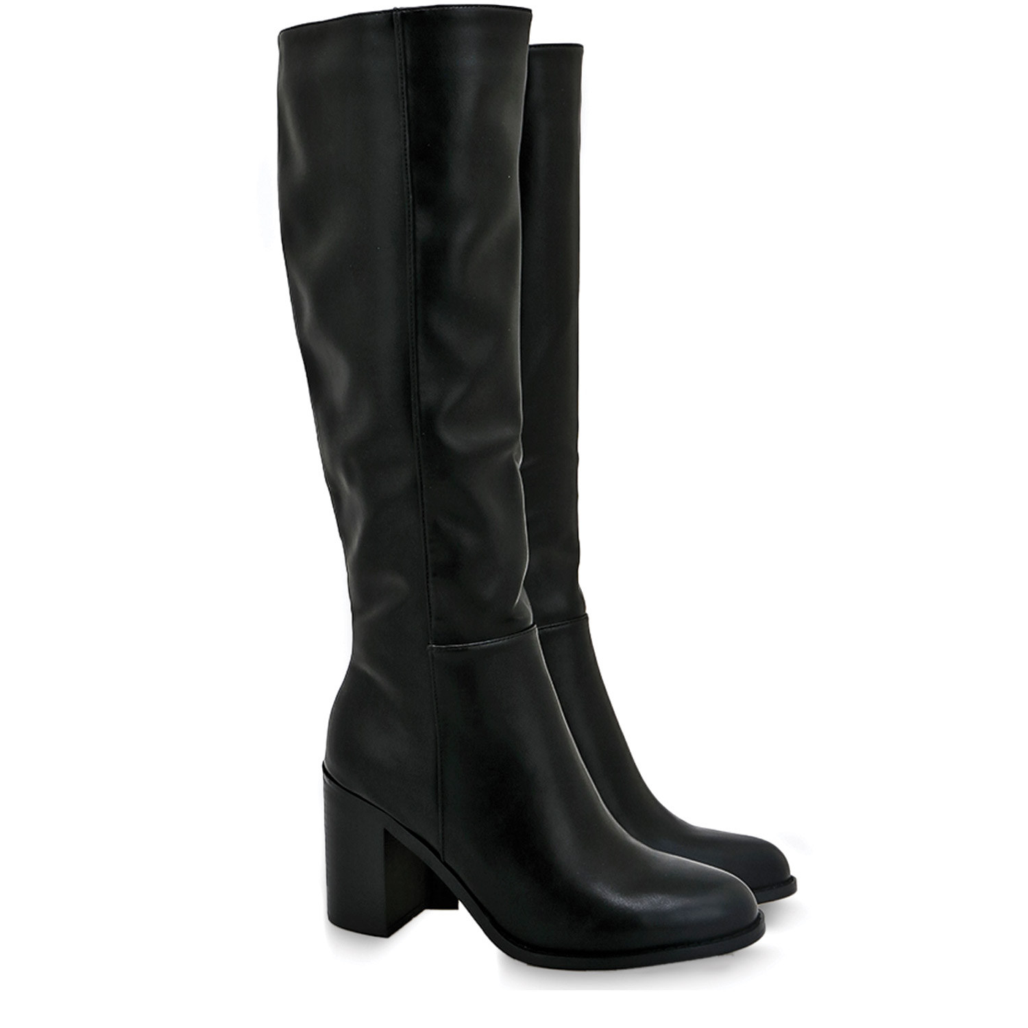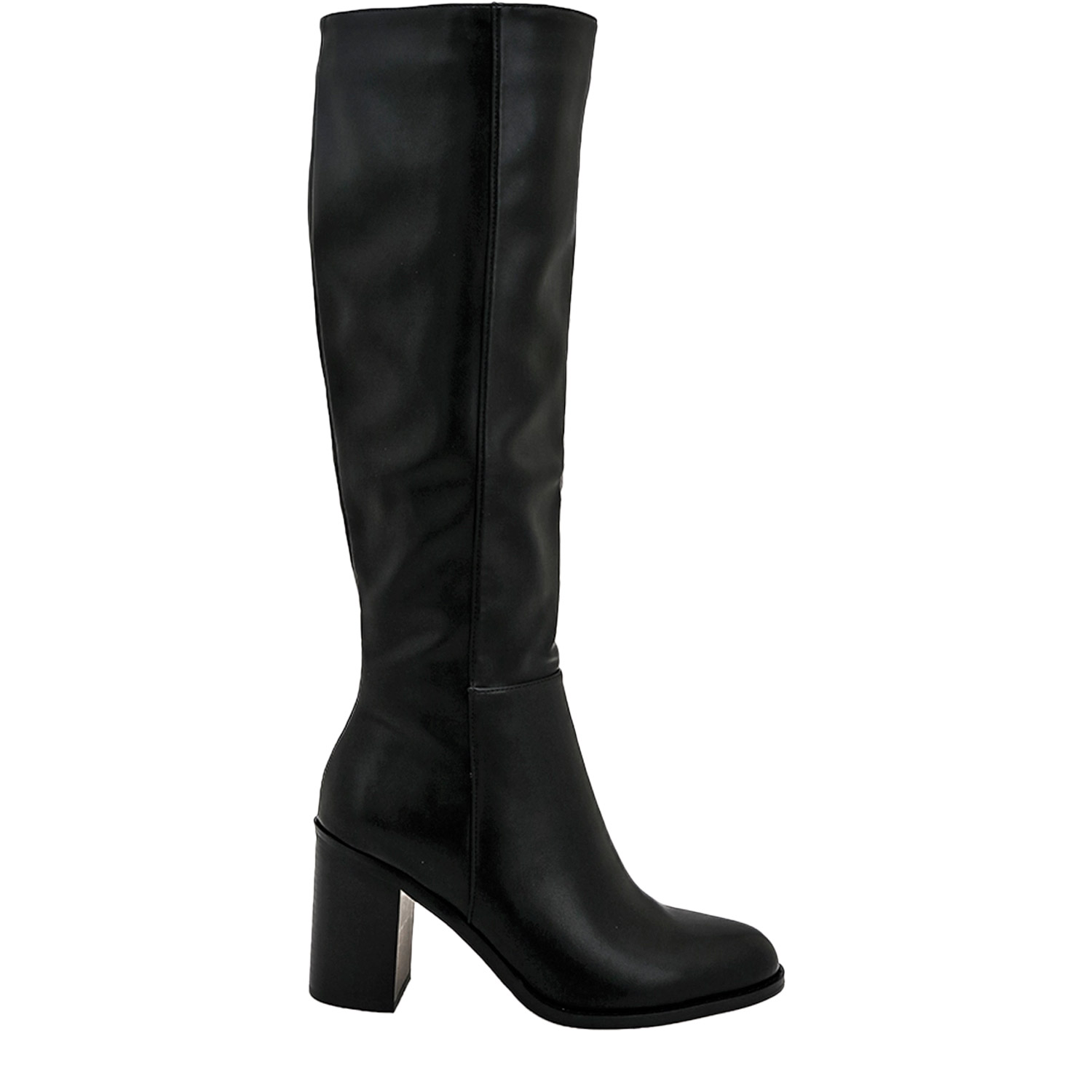 Seven γυναικεία μπότα, σε μαύρο χρώμα, κατασκευασμένη από οικολογικό δέρμα. Ύψος τακουνιού 8.5εκ.
