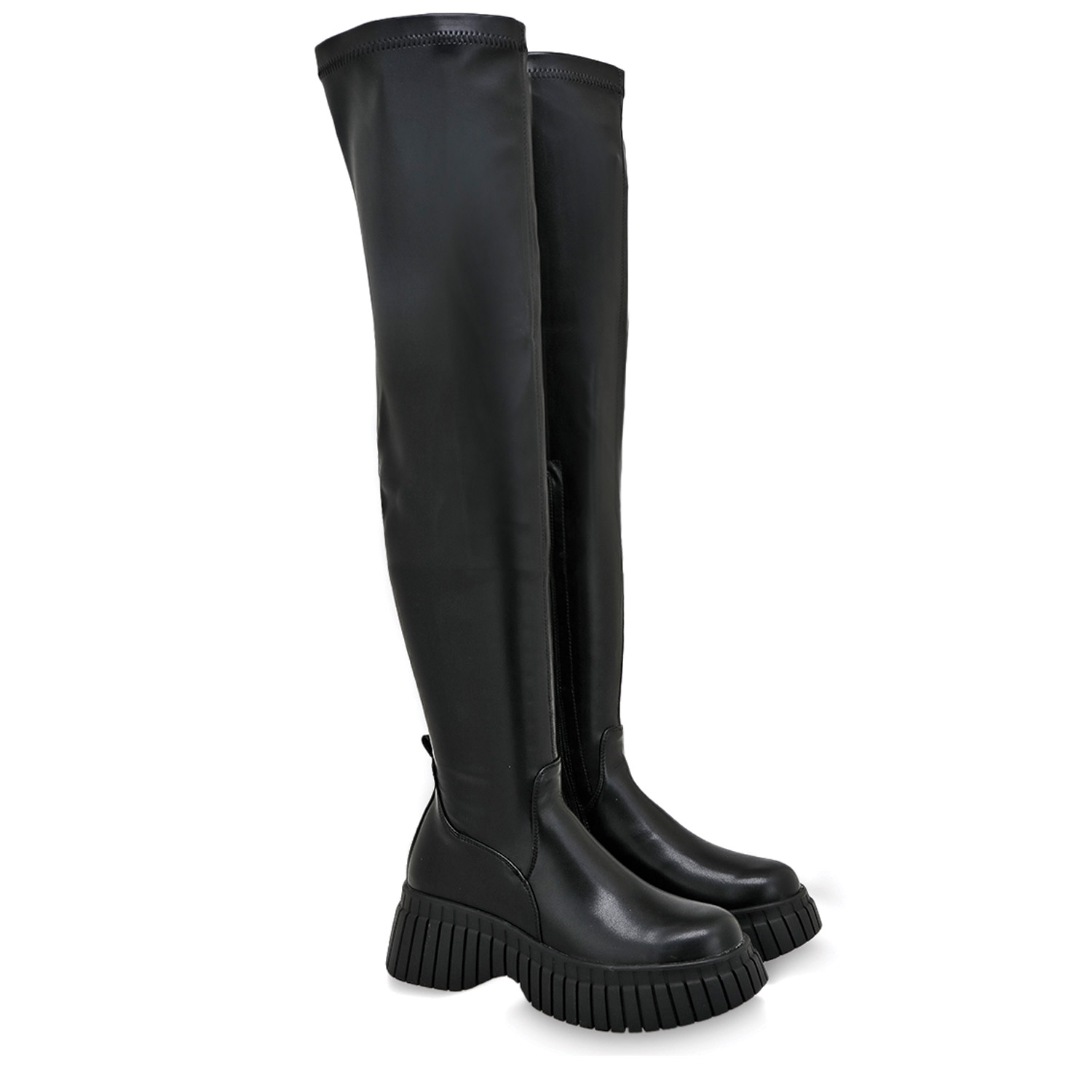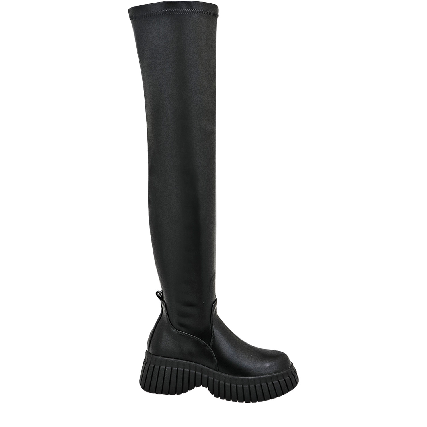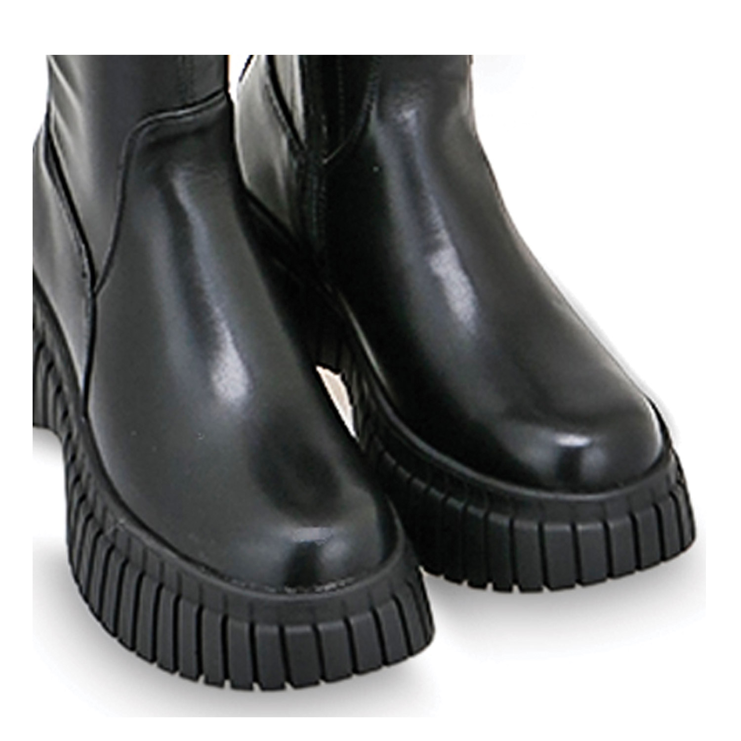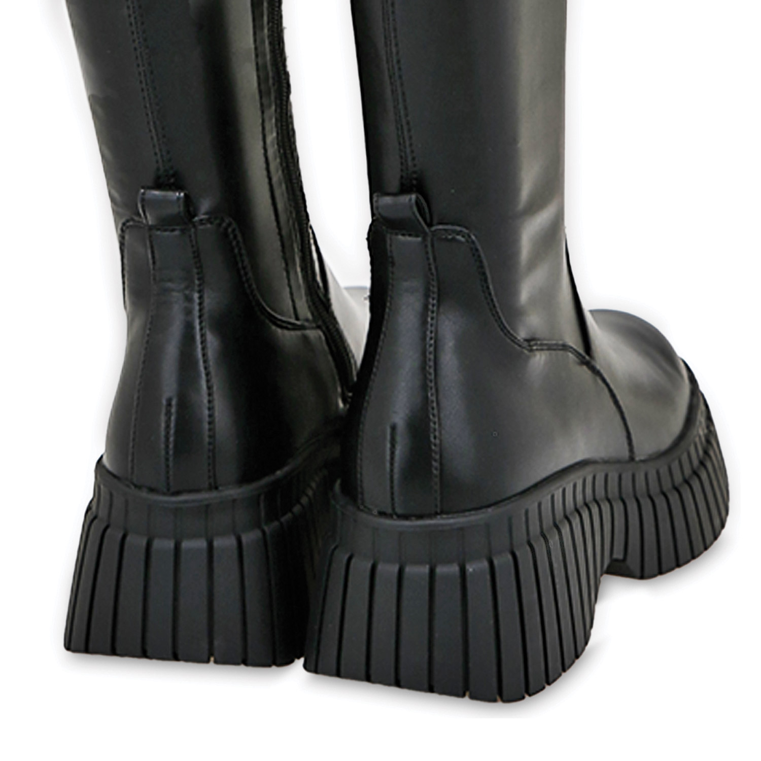 Exe γυναικεία μπότα, σε μαύρο χρώμα, κατασκευασμένη από οικολογικό δέρμα. Ύψος τακουνιού 6εκ.