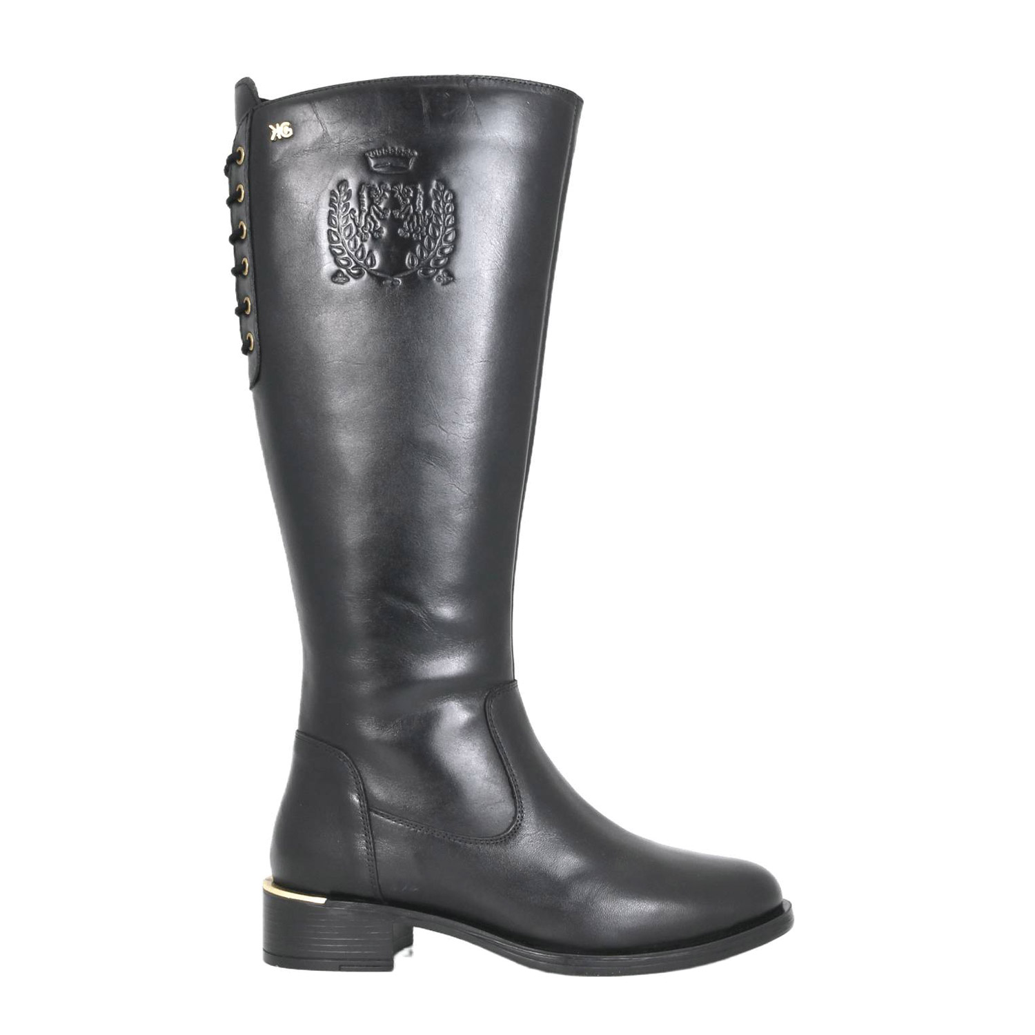 Gianna Kazakou γυναικεία μπότα, σε μαύρο χρώμα, κατασκευασμένη από δέρμα, με υφασμάτινη φόδρα. Ύψος τακουνιού 4εκ.