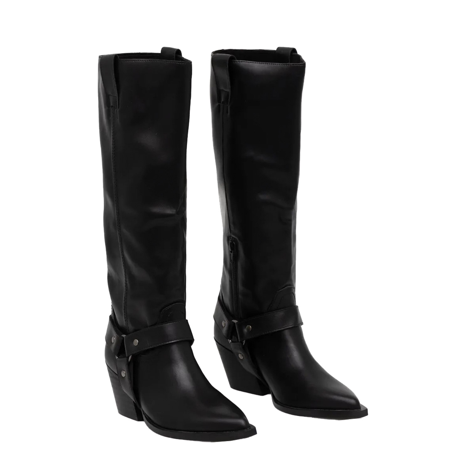 Koniarisshoes γυναικεία μπότα, σε μαύρο χρώμα, κατασκευασμένη από οικολογικό δέρμα. Ύψος τακουνιού 7εκ.