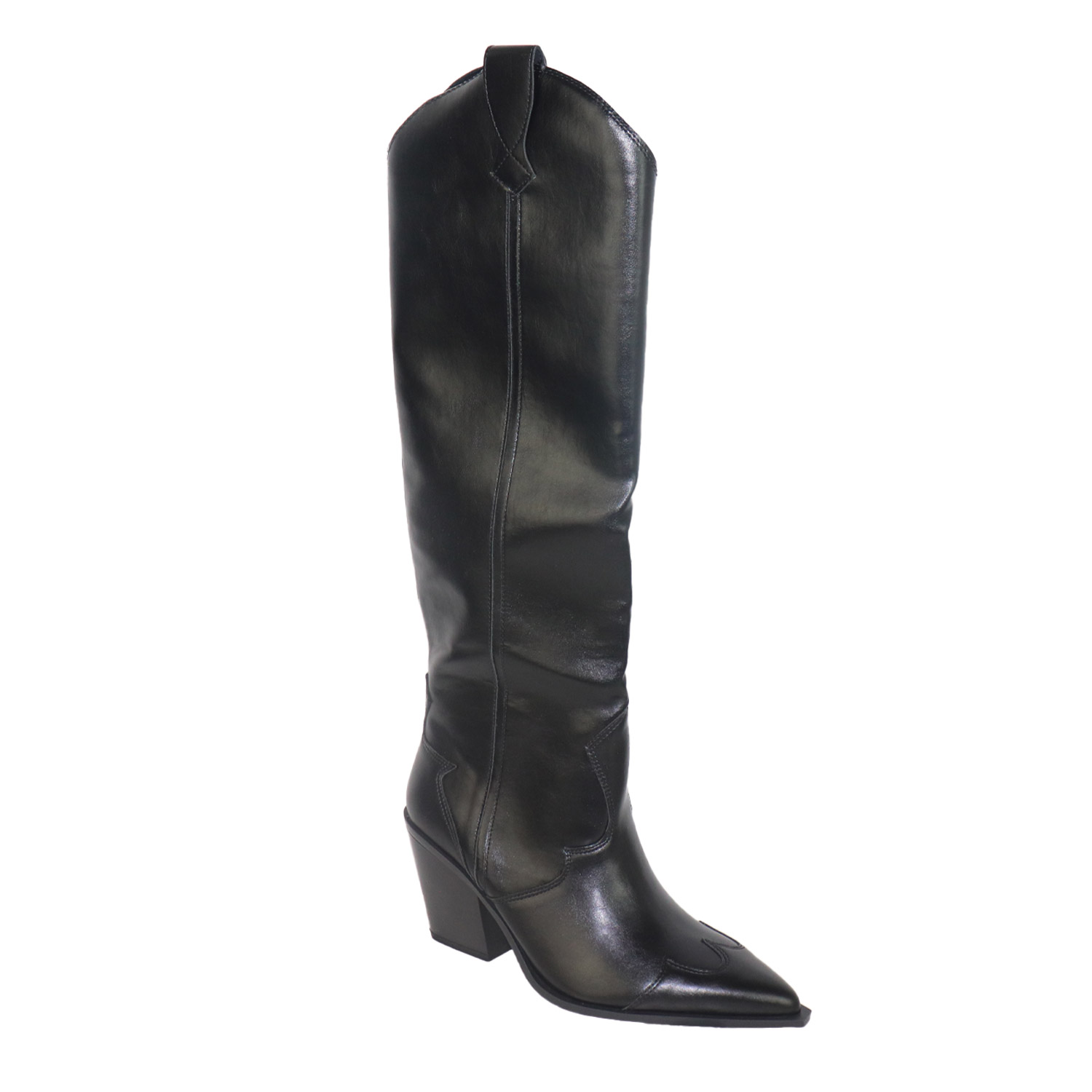 Koniarisshoes γυναικεία μπότα, σε μαύρο χρώμα, κατασκευασμένη από οικολογικό δέρμα. Ύψος τακουνιού 8.5εκ.