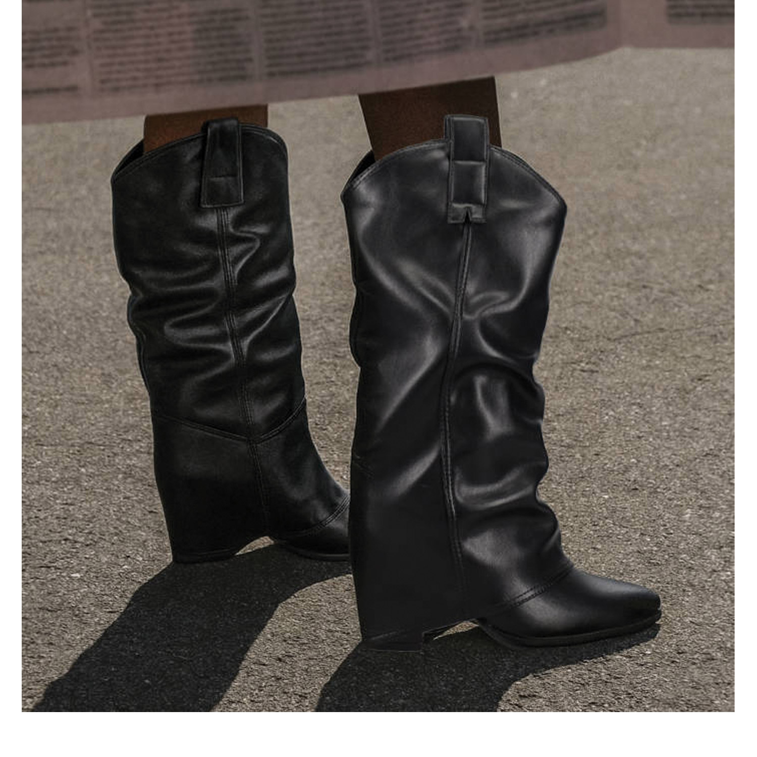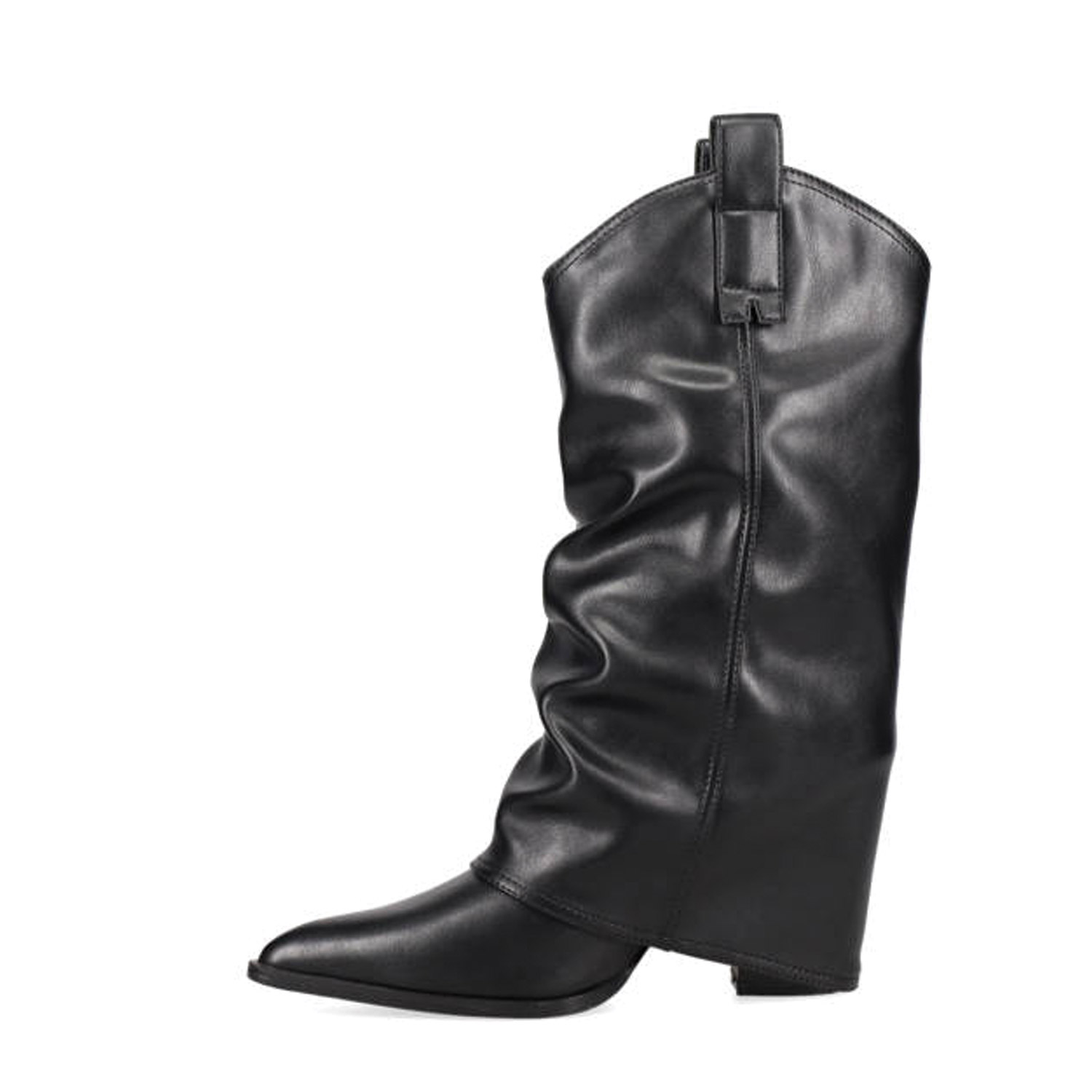 Μαύρη western μπότα. Διαθέτει μεσαίο χοντρό τακούνι.