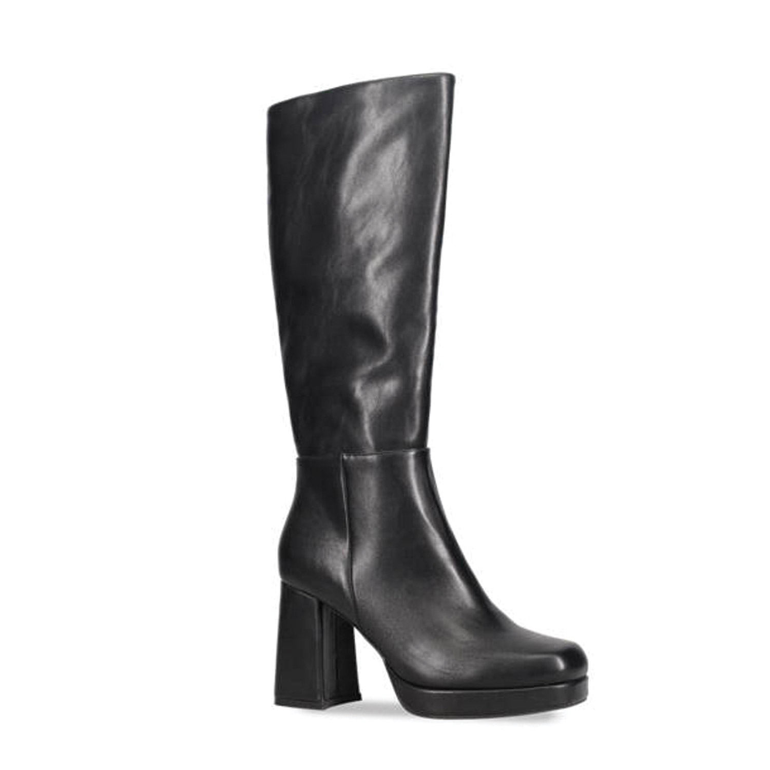 Μαύρη μπότα με ψηλό χοντρό τακούνι. Κλείνει με φερμουάρ.
