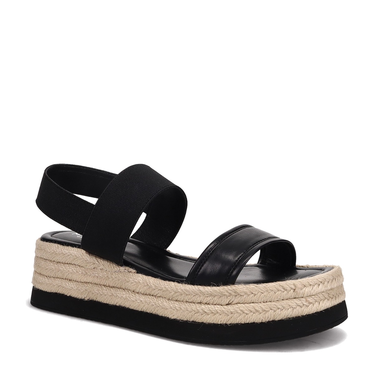 Migato γυναικεία πλατφόρμα σε μαύρο χρώμα , κατασκευασμένο από οικολογικό δέρμα και ύφασμα. Ύψος σόλας 6εκ.