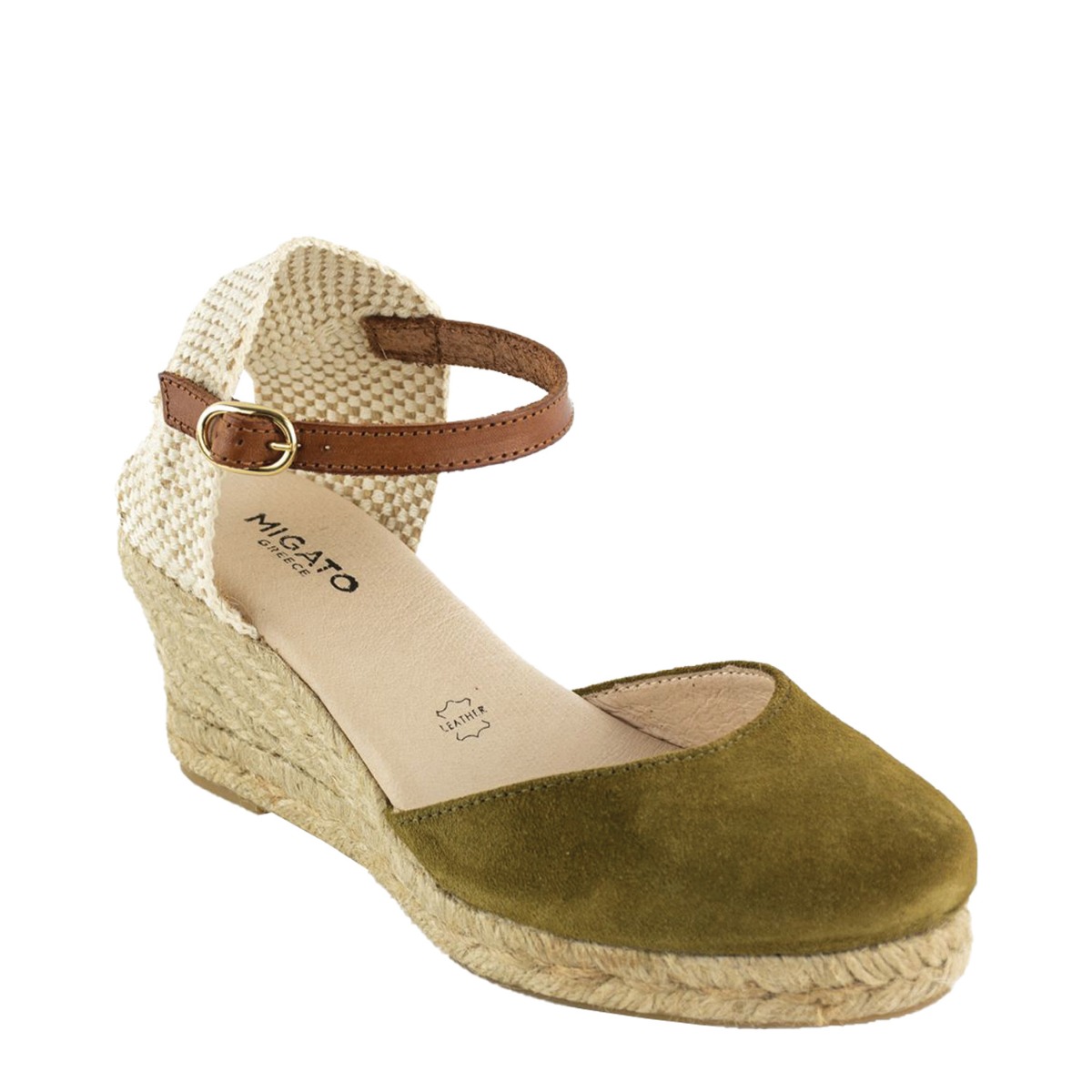 Migato γυναικεία πλατφόρμα σε χακί χρώμα κατασκευασμένη από δέρμα καστόρι. Ύψος τακουνιού 7.5εκ.