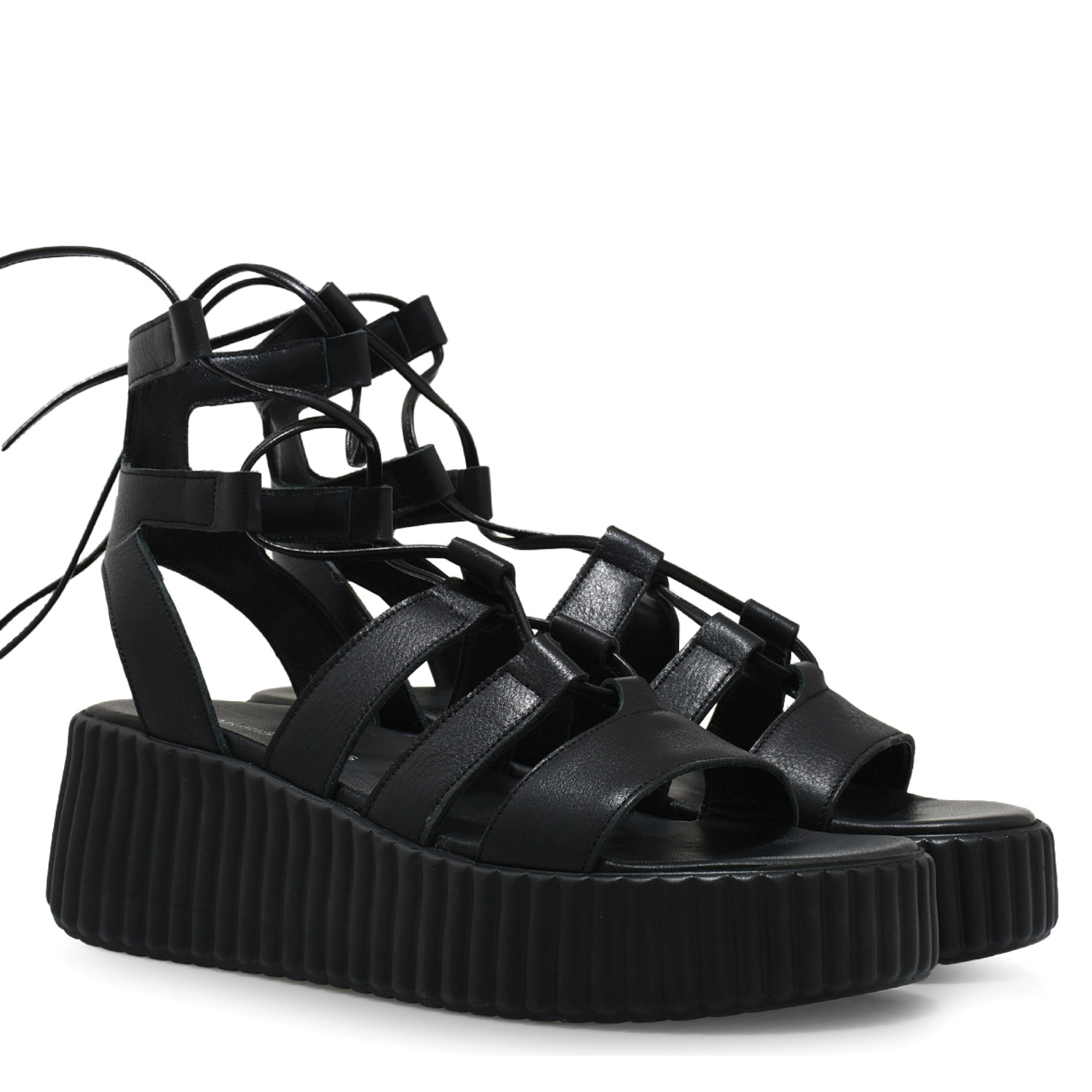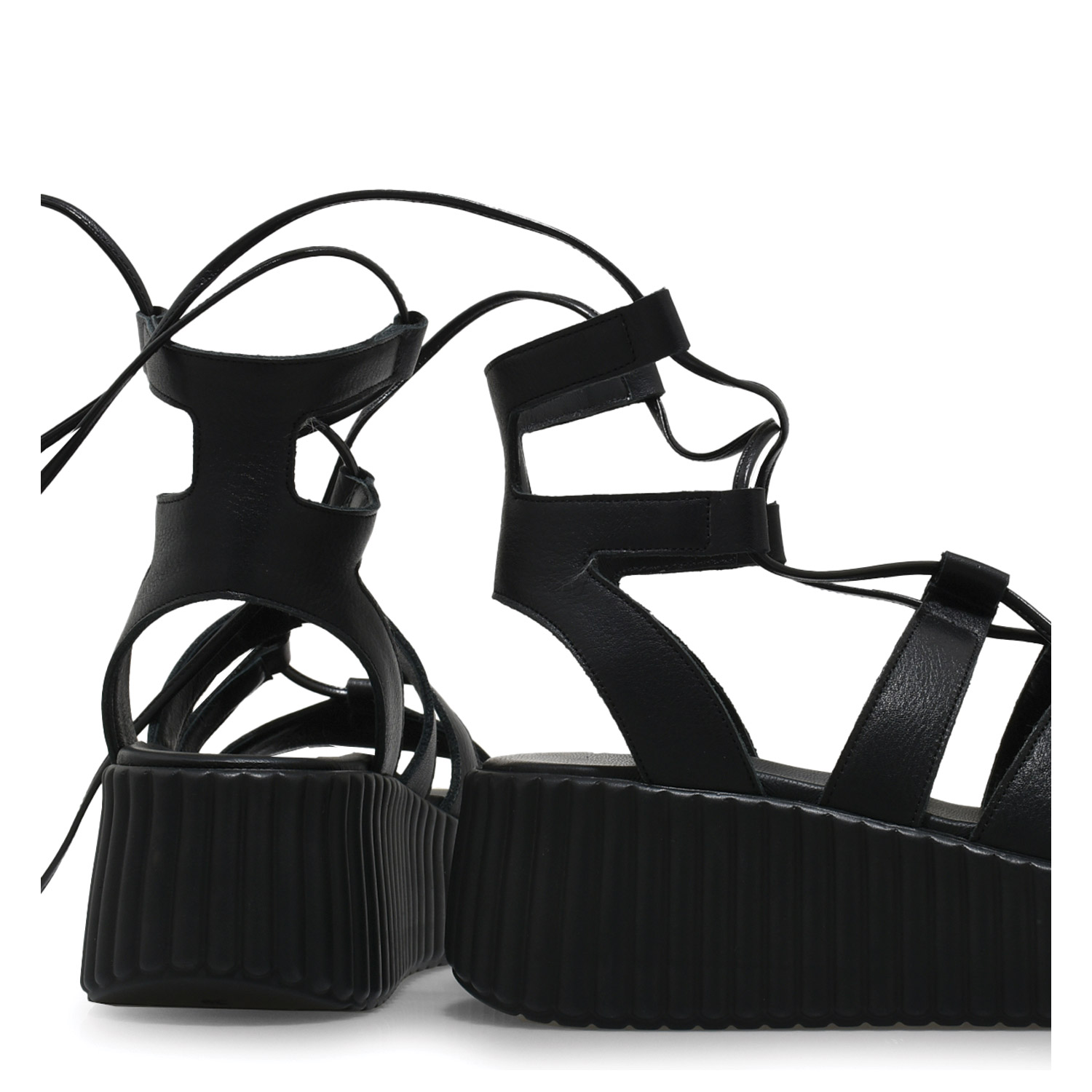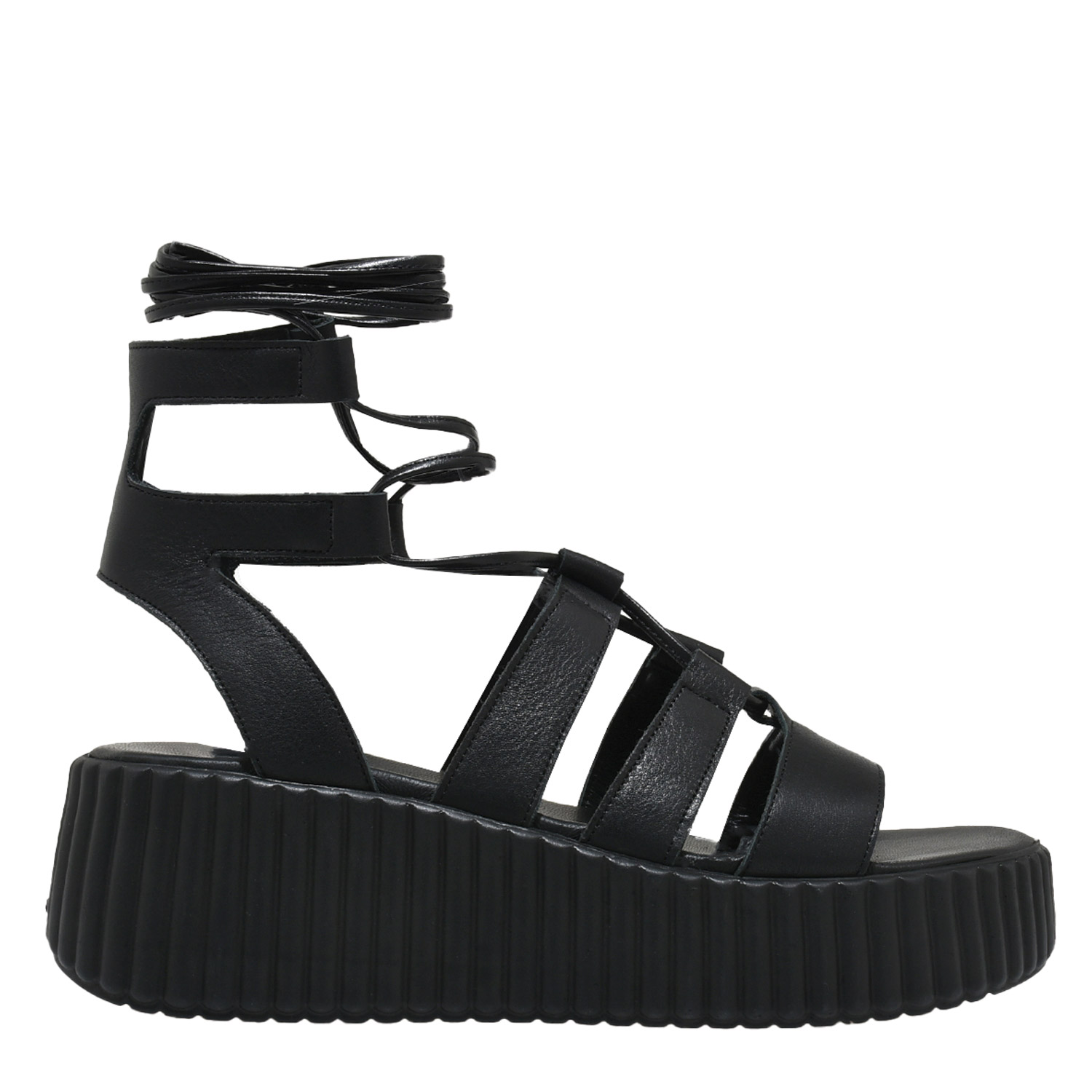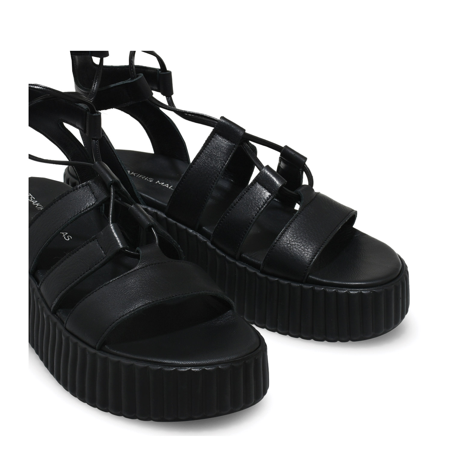 Tsakiris Mallas γυναικεία πλατφόρμα, σε μαύρο χρώμα, κατασκευασμένη από δέρμα. Ύψος σόλας 5.5εκ.