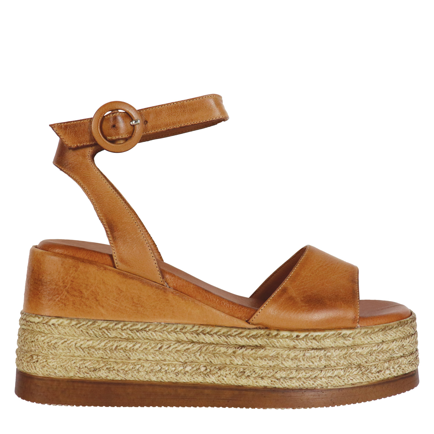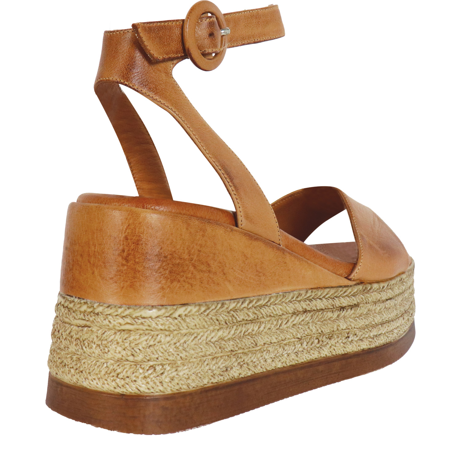 Tsakiris Mallas γυναικεία πλατφόρμα, σε ταμπά χρώμα, κατασκευασμένη από δέρμα. Ύψος σόλας 10εκ.