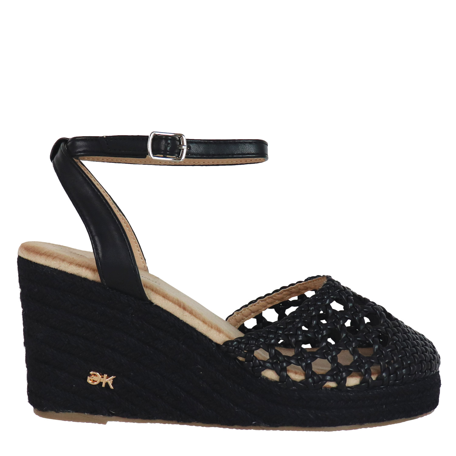 Gianna Kazakou γυναικεία εσπαντρίγια, σε μαύρο χρώμα, κατασκευασμένη από οικολογικό δέρμα. Ύψος σόλας 9εκ.