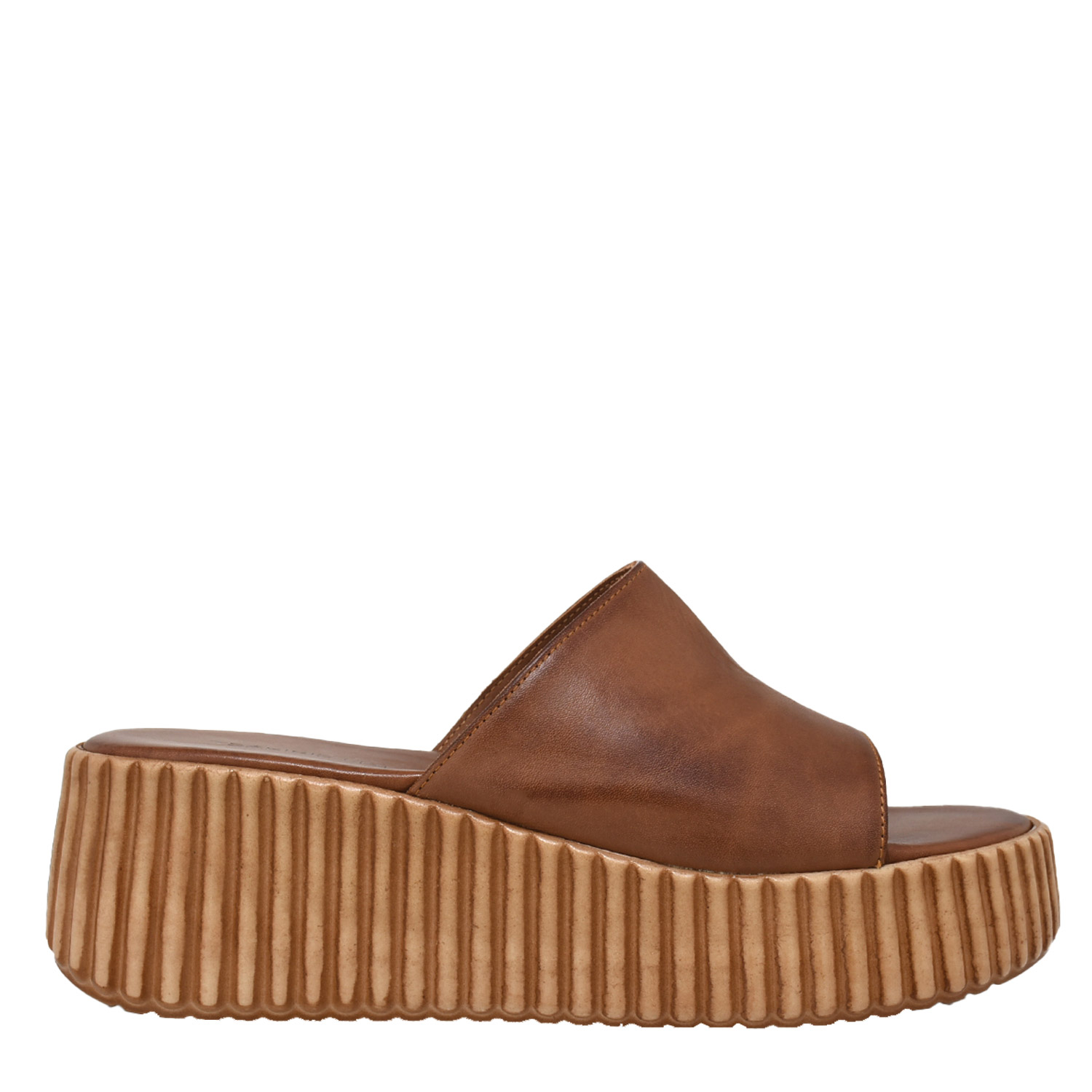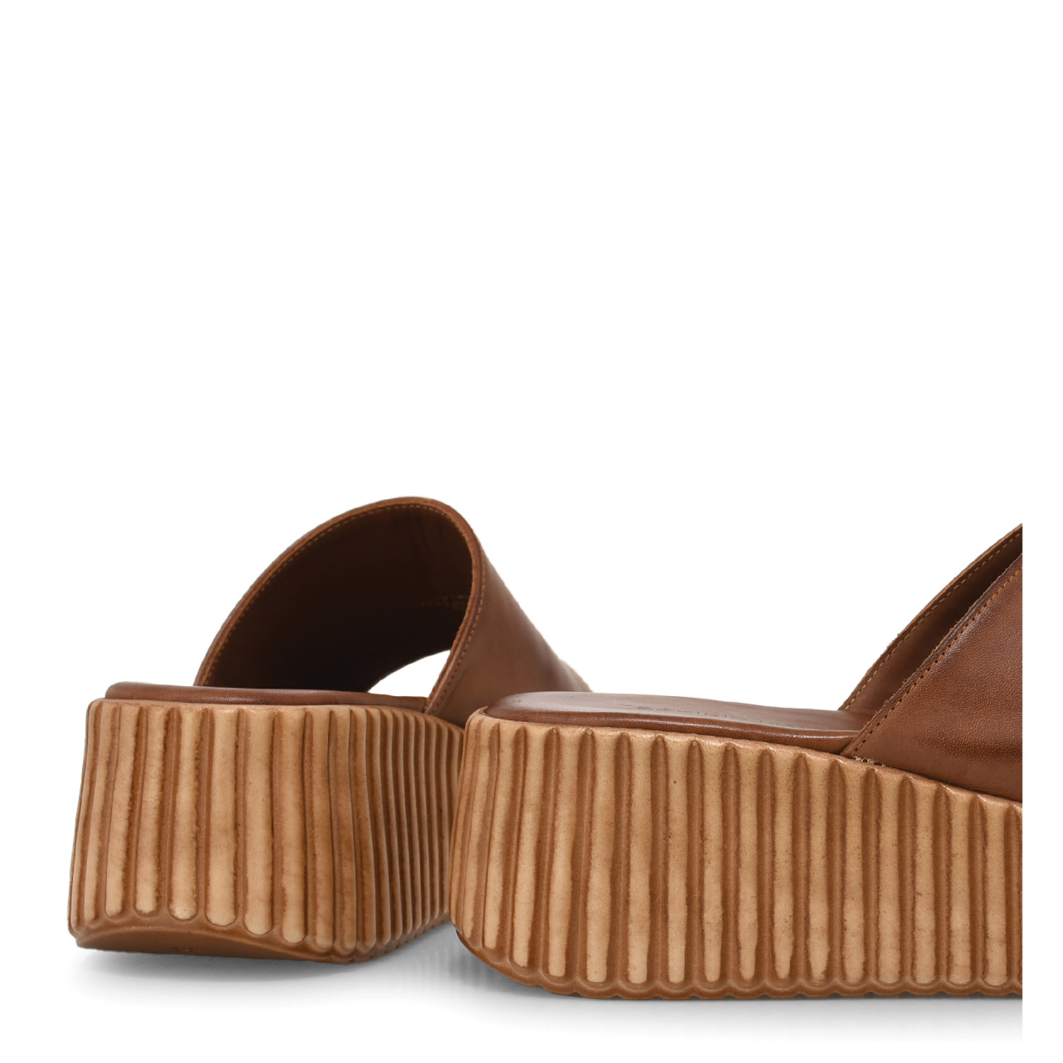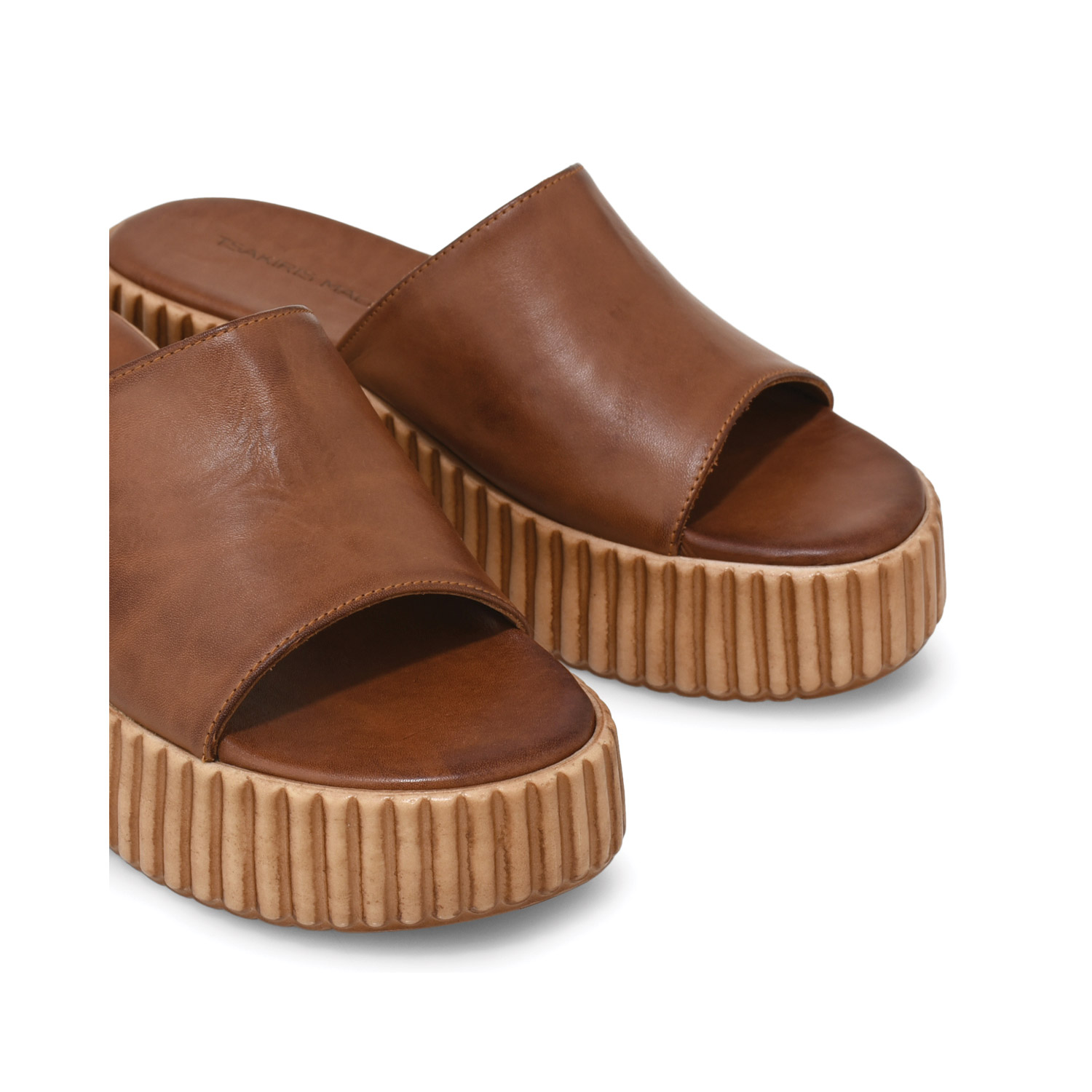 Tsakiris Mallas γυναικεία πλατφόρμα, σε ταμπά χρώμα, κατασκευασμένη από δέρμα. Ύψος σόλας 5.5εκ.