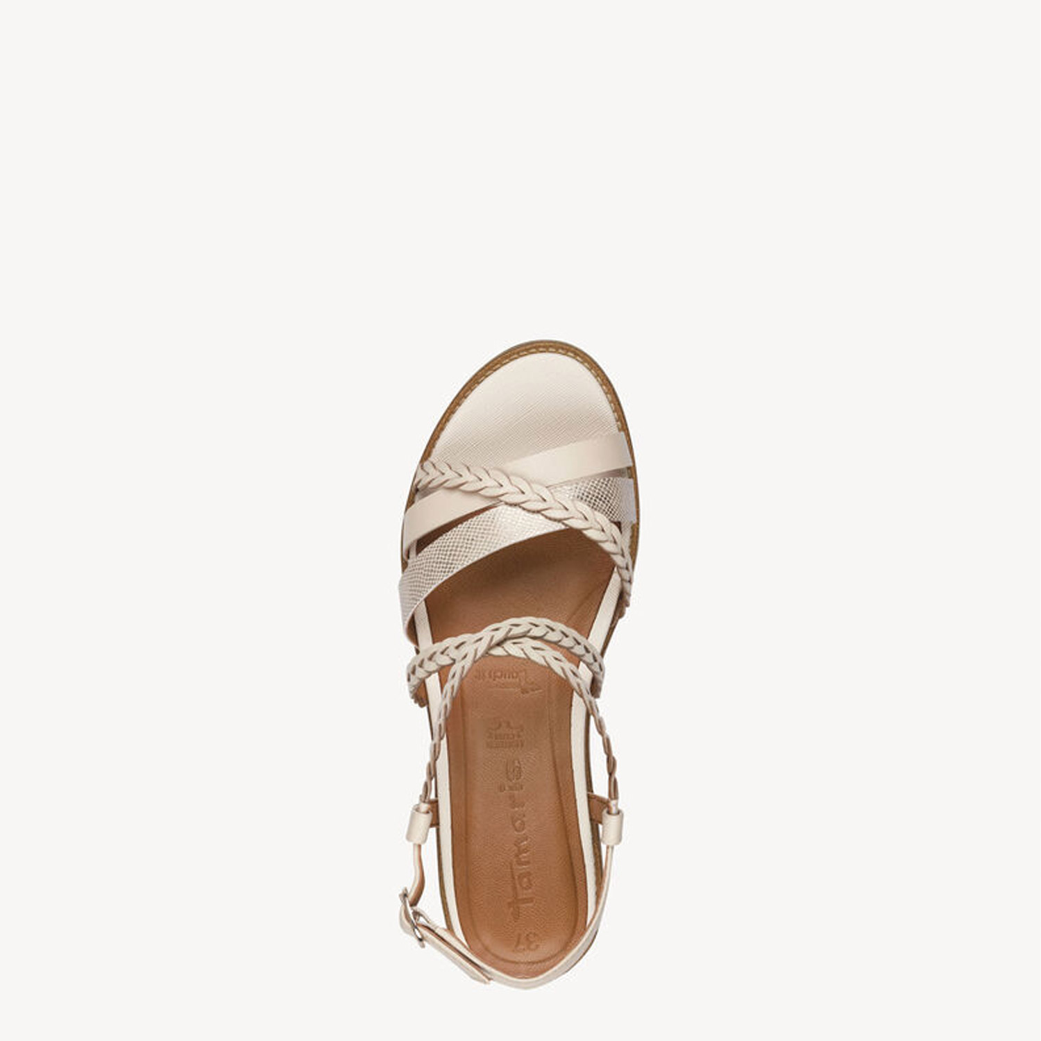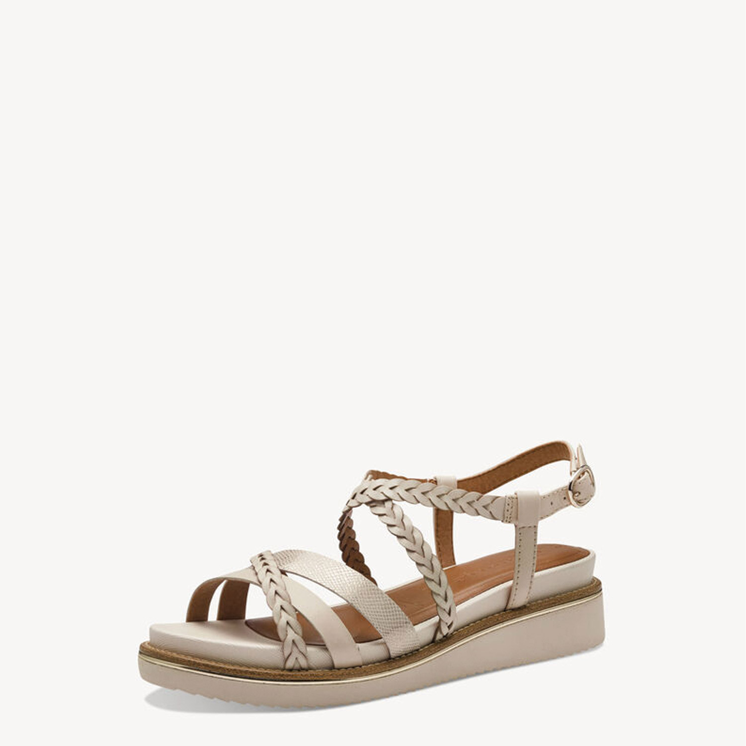Tamaris γυναικεία πλατφόρμα σε μπεζ χρώμα κατασκευασμένη από δέρμα και οικολογικό δέρμα. Ύψος 4.5εκ.