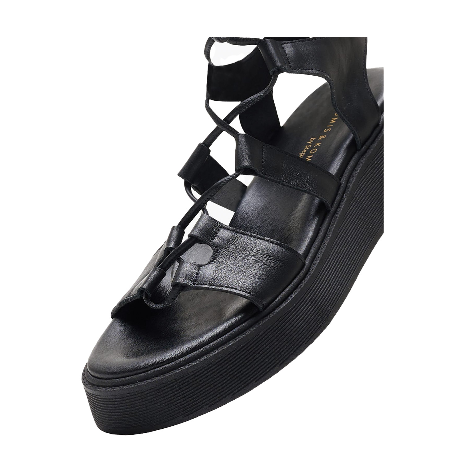 Komis & Komis γυναικείο flatform, σε μαύρο χρώμα, κατασκευασμένο από δέρμα, με ανατομικό, δερμάτινο πάτο. Ύψος σόλας 4εκ.