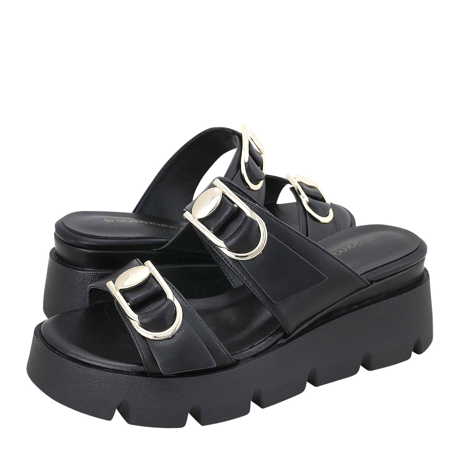 Gianna Kazakou γυναικεία πλατφόρμα σε μαύρο χρώμα κατασκευασμένη από οικολογικό δέρμα. Ύψος σόλας 6εκ.