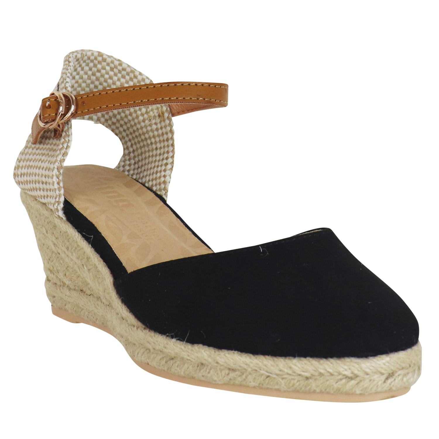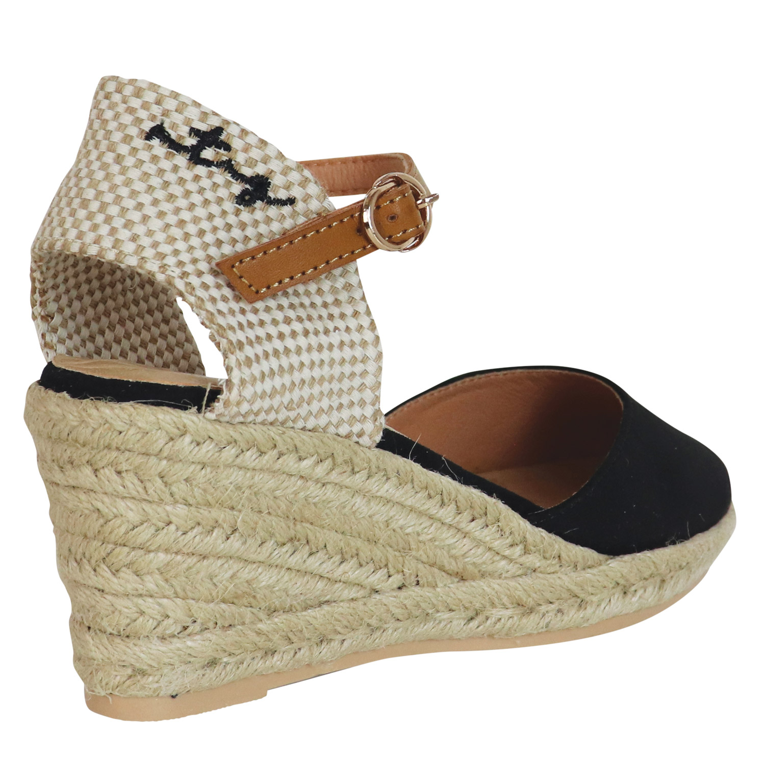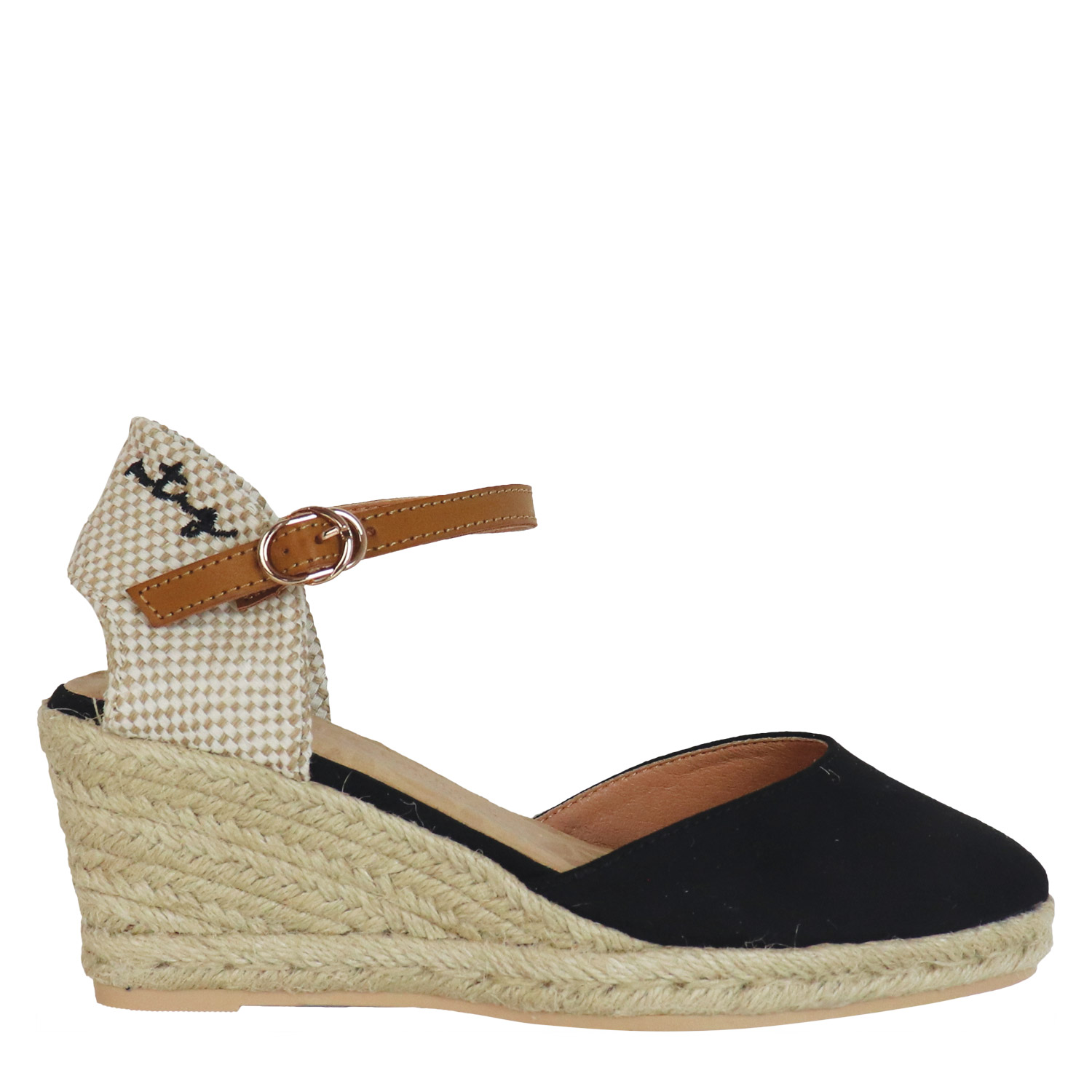 Mtng γυναικεία εσπαντρίγια, σε μαύρο χρώμα, κατασκευασμένη από ύφασμα. Ύψος σόλας 8εκ.