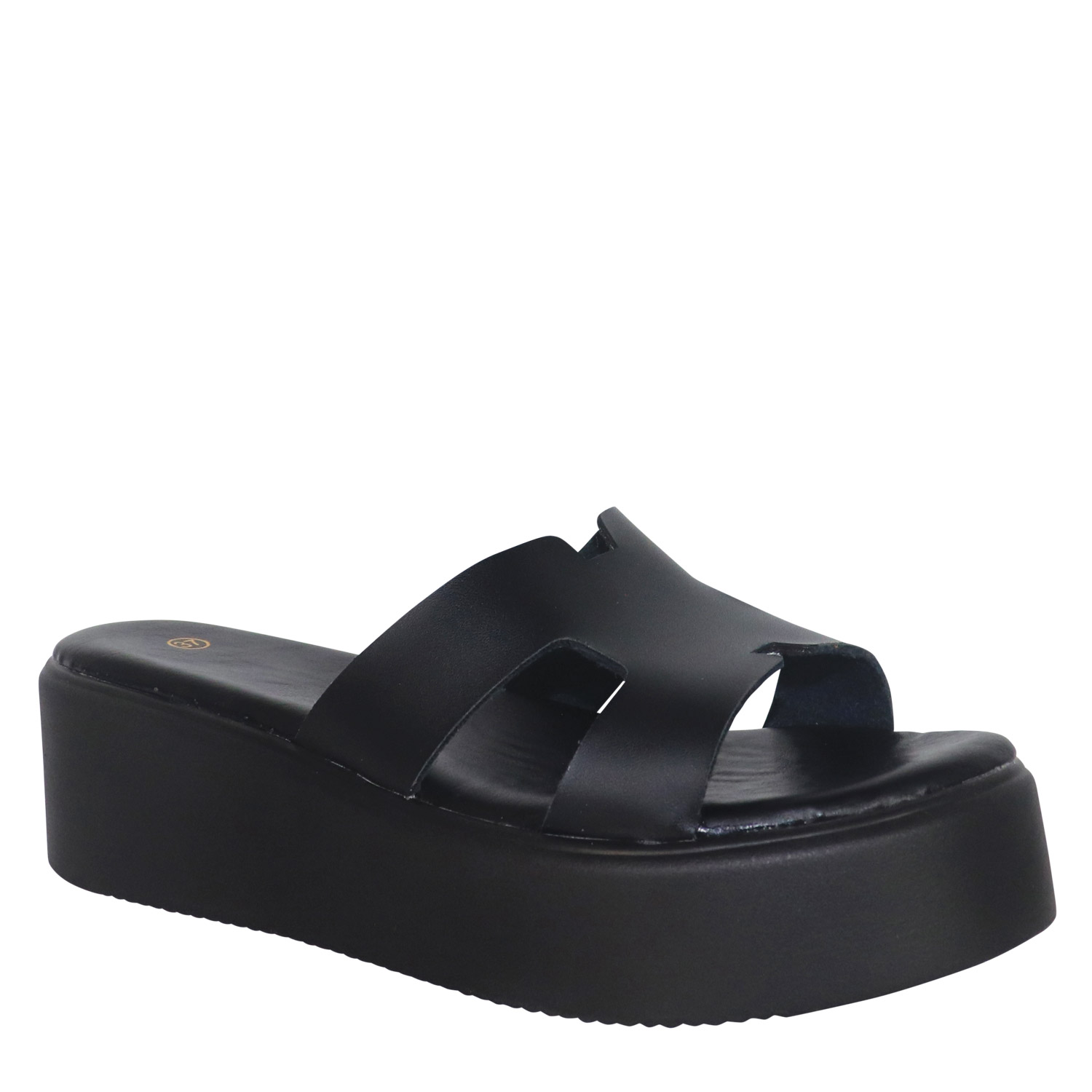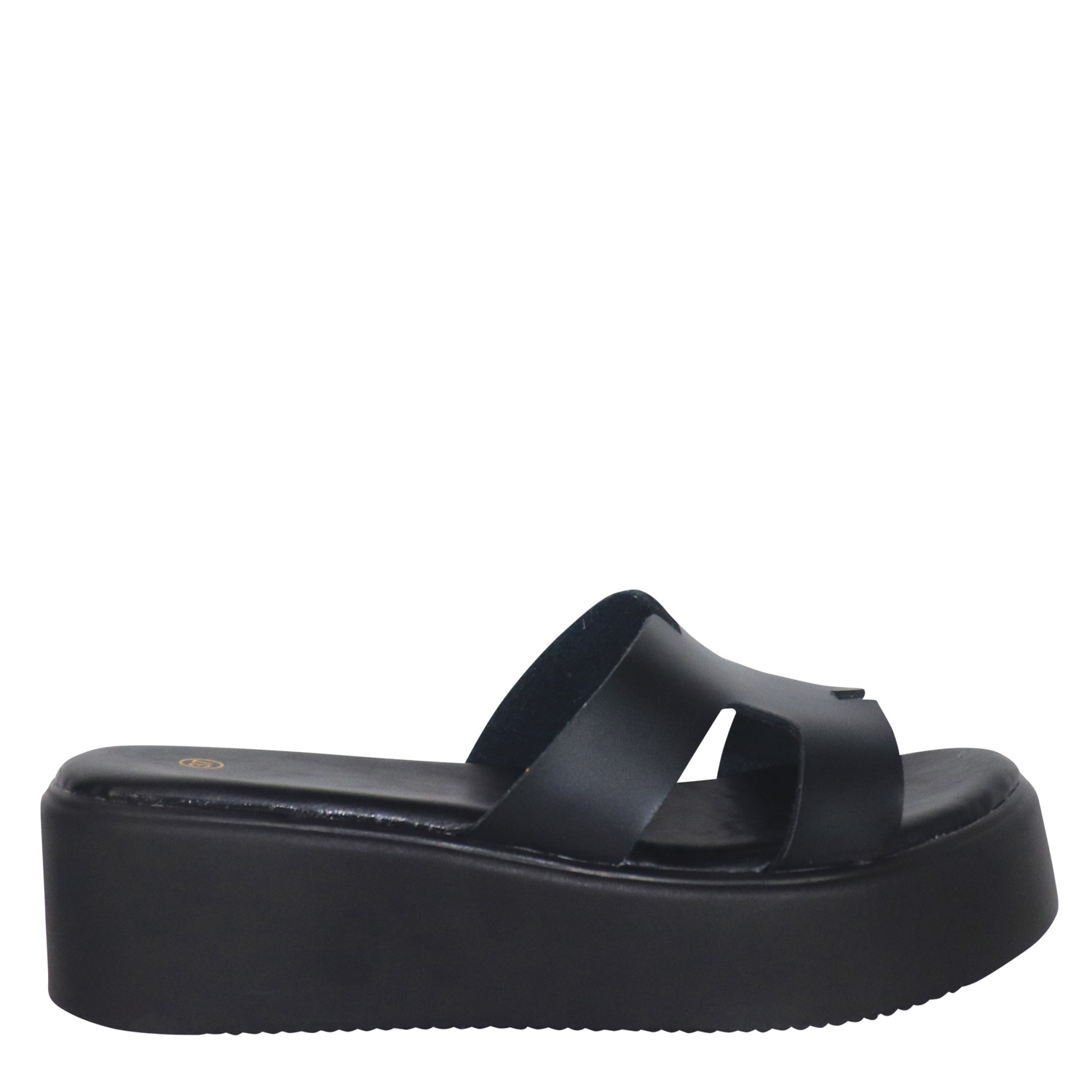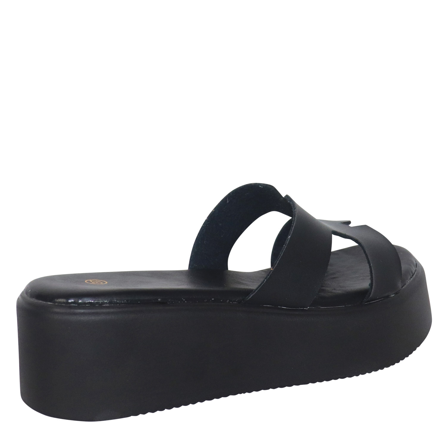 Koniarisshoes γυναικεία πλατφόρμα, σε μαύρο χρώμα, κατασκευασμένη από οικολογικό δέρμα. Ύψος τακουνιού 5.5εκ.