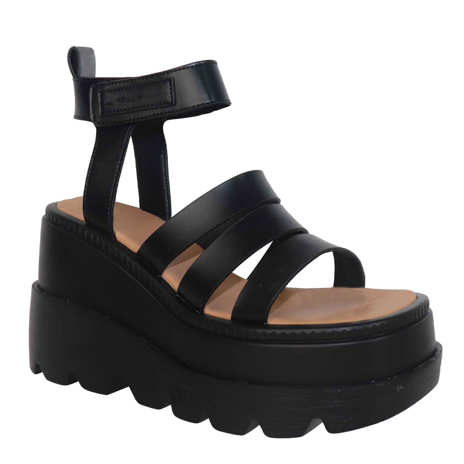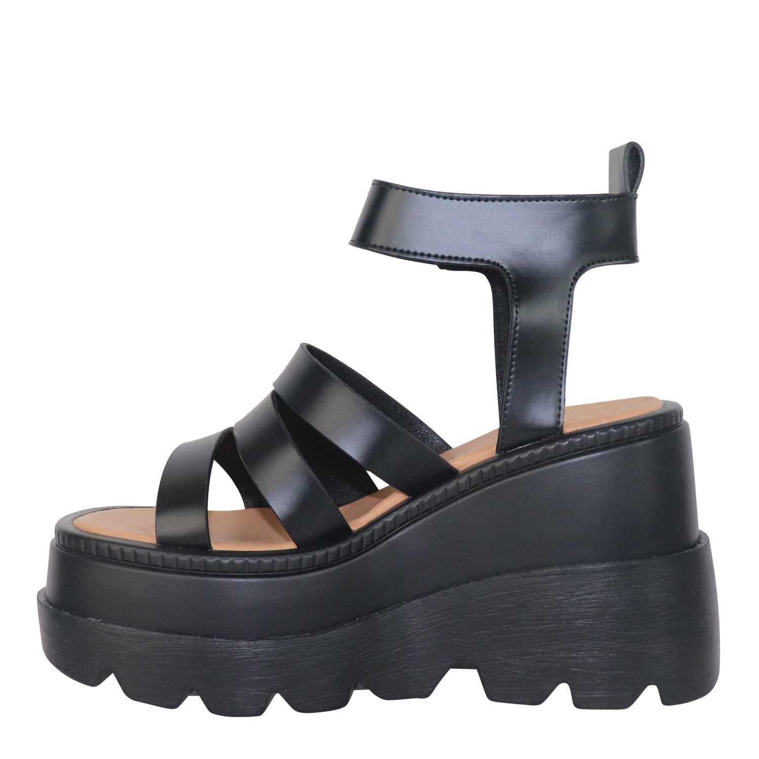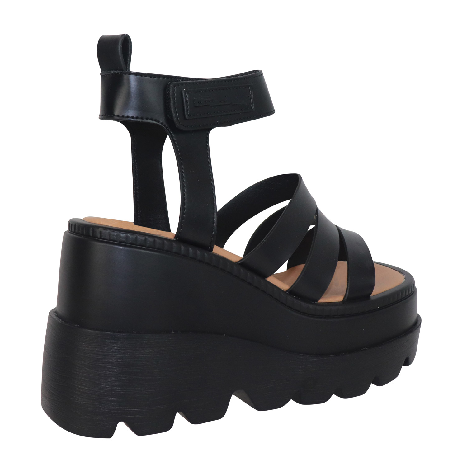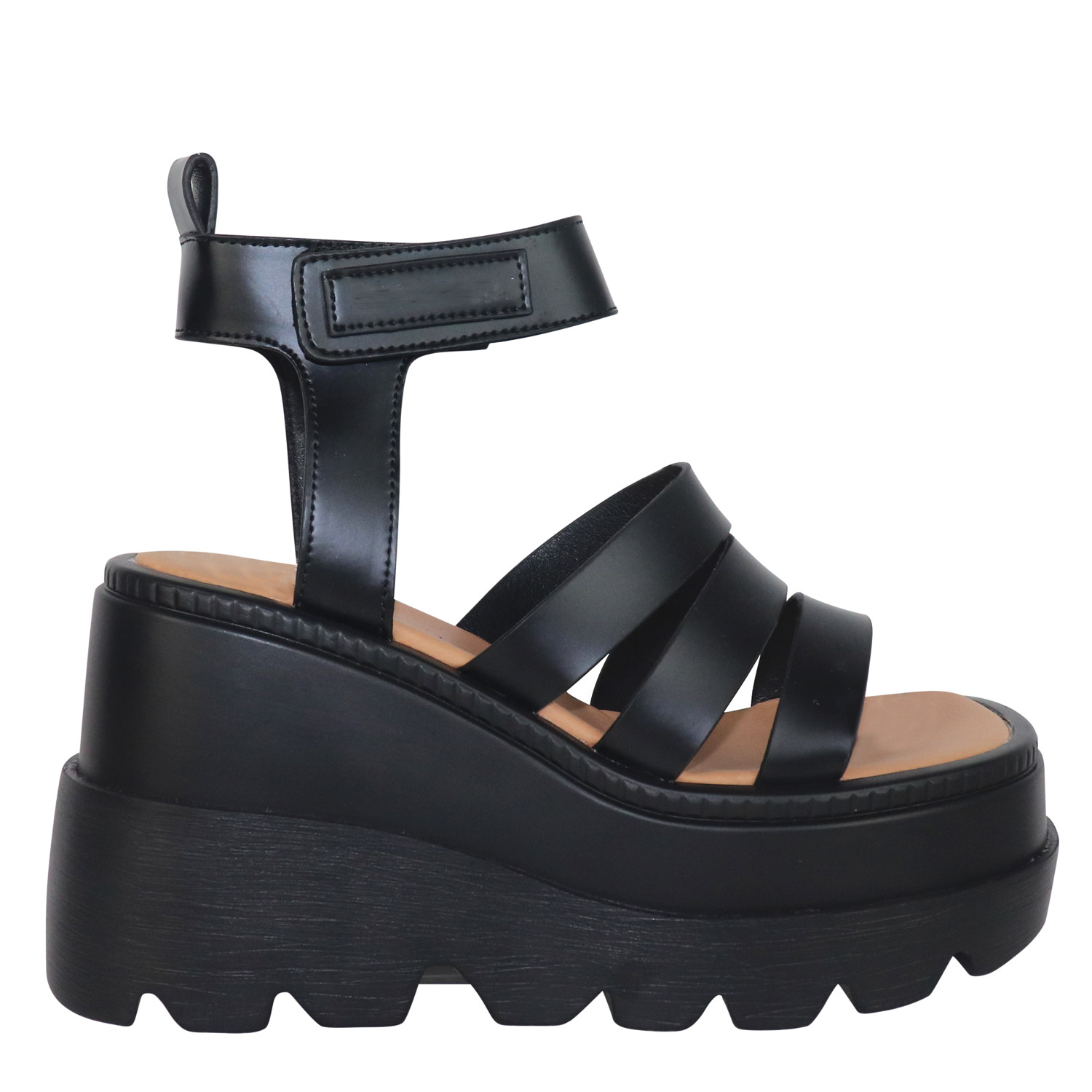 Koniarisshoes γυναικεία πλατφόρμα, σε μαύρο χρώμα, κατασκευασμένη από οικολογικό δέρμα. Ύψος τακουνιού 12εκ.