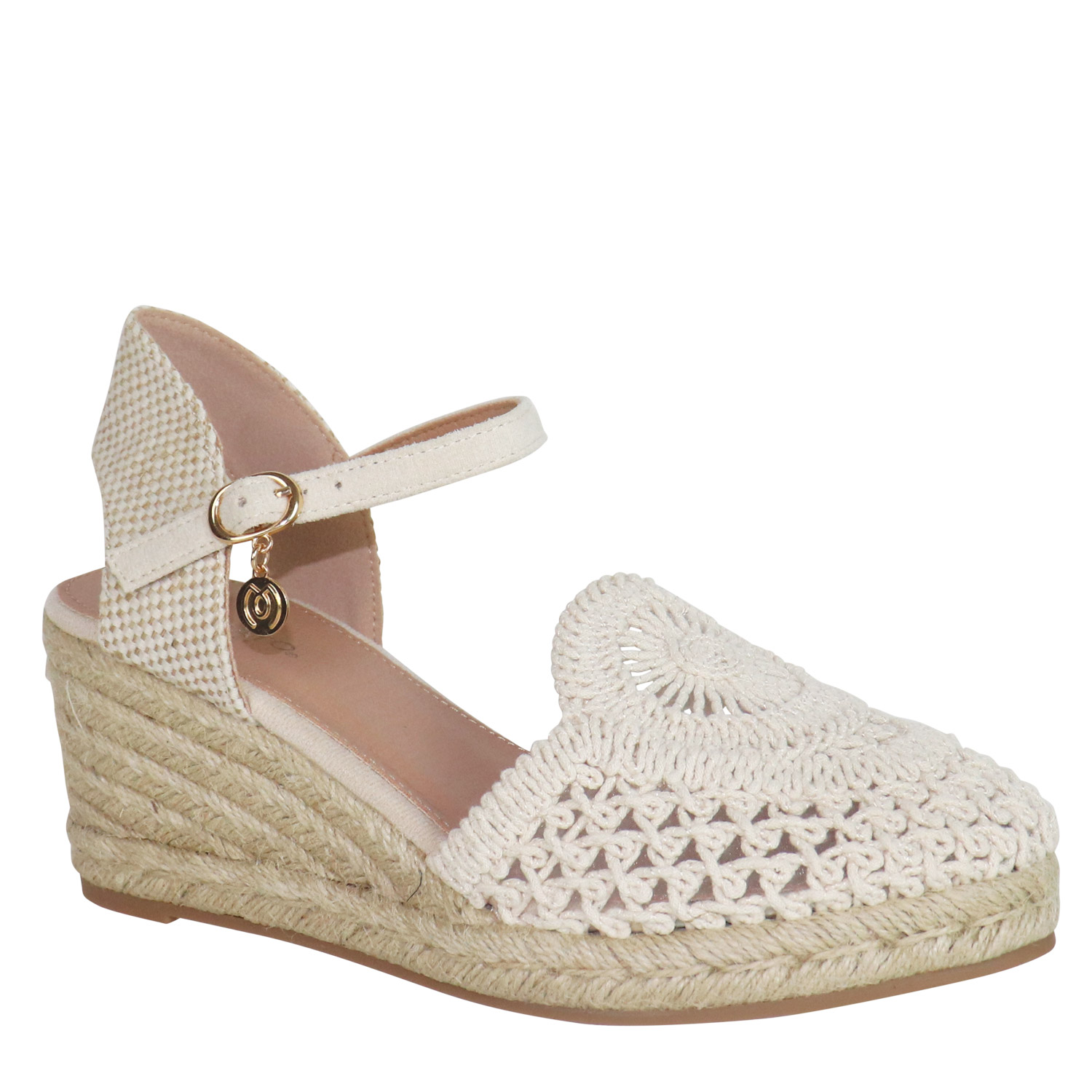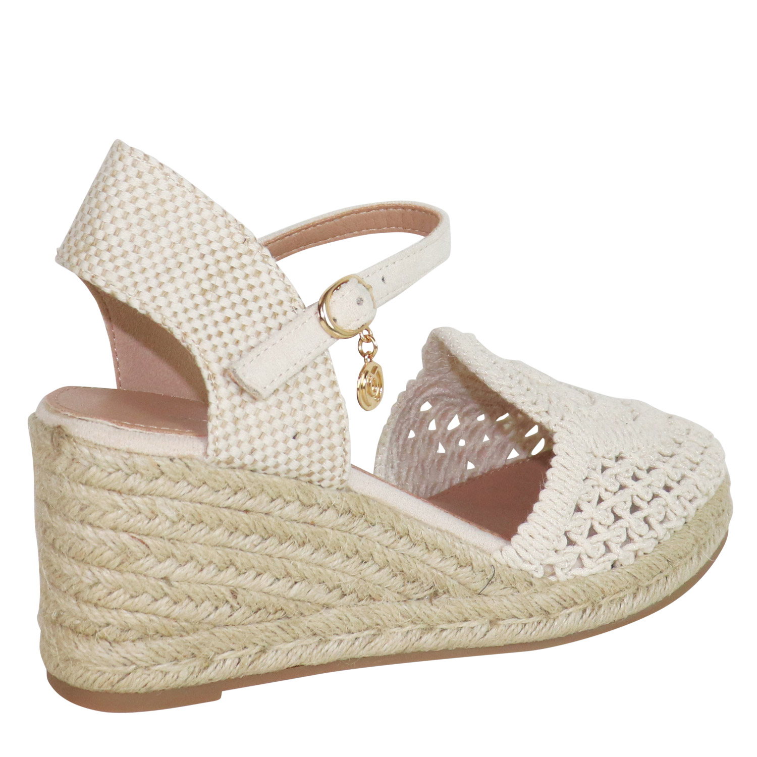 Migato γυναικεία εσπαντρίγια, σε μπεζ χρώμα, κατασκευασμένη από ύφασμα. Ύψος σόλας 7εκ.
