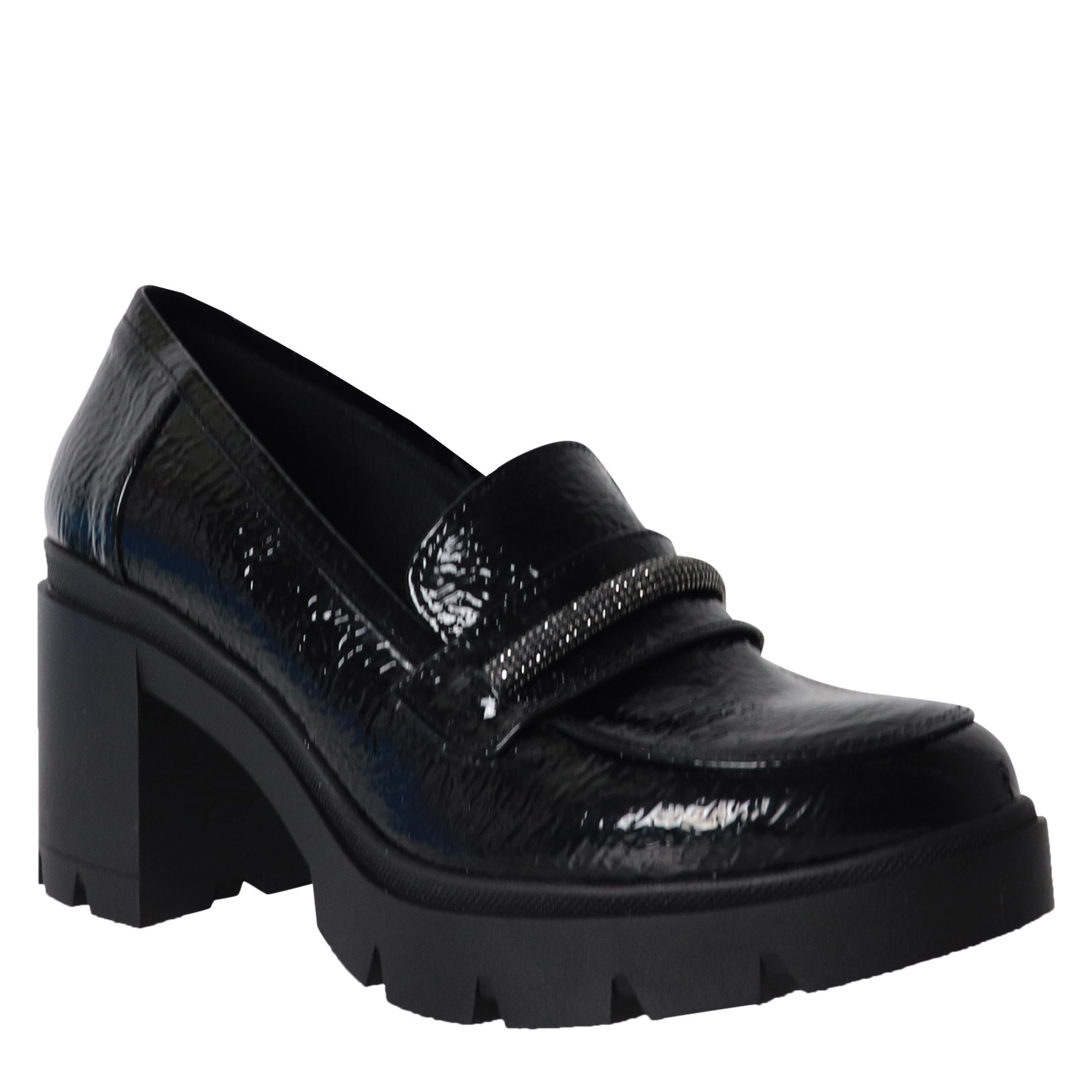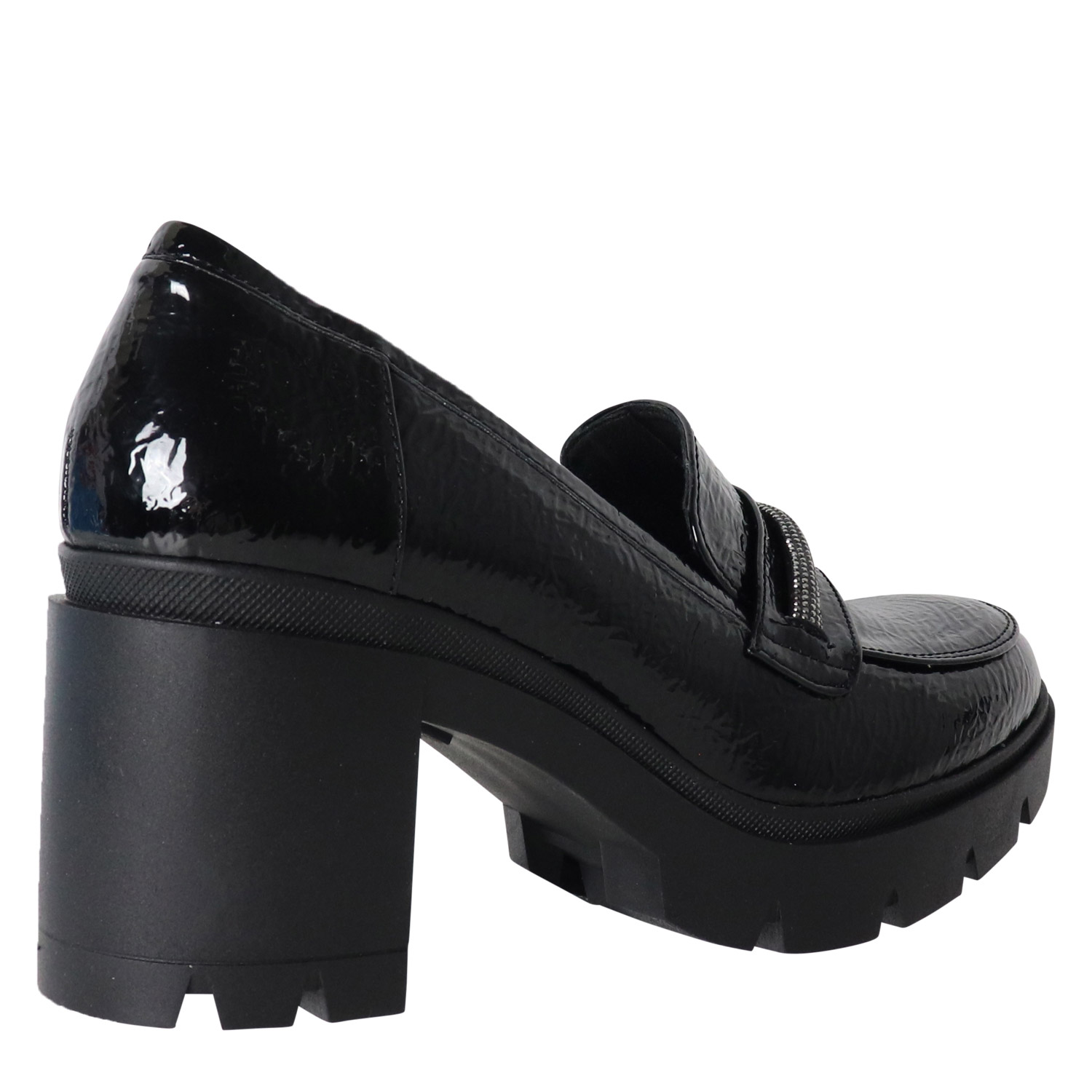 Koniarisshoes γυναικείο loafer, σε μαύρο χρώμα, κατασκευασμένο από λουστρίνι. Ύψος σόλας 8εκ.