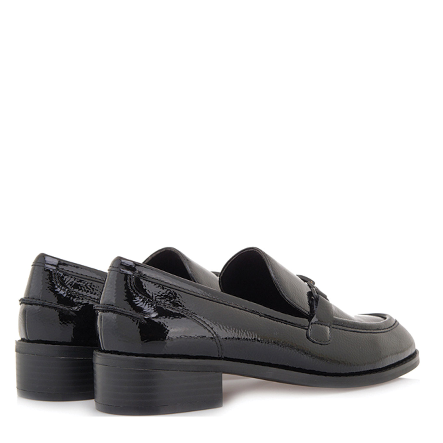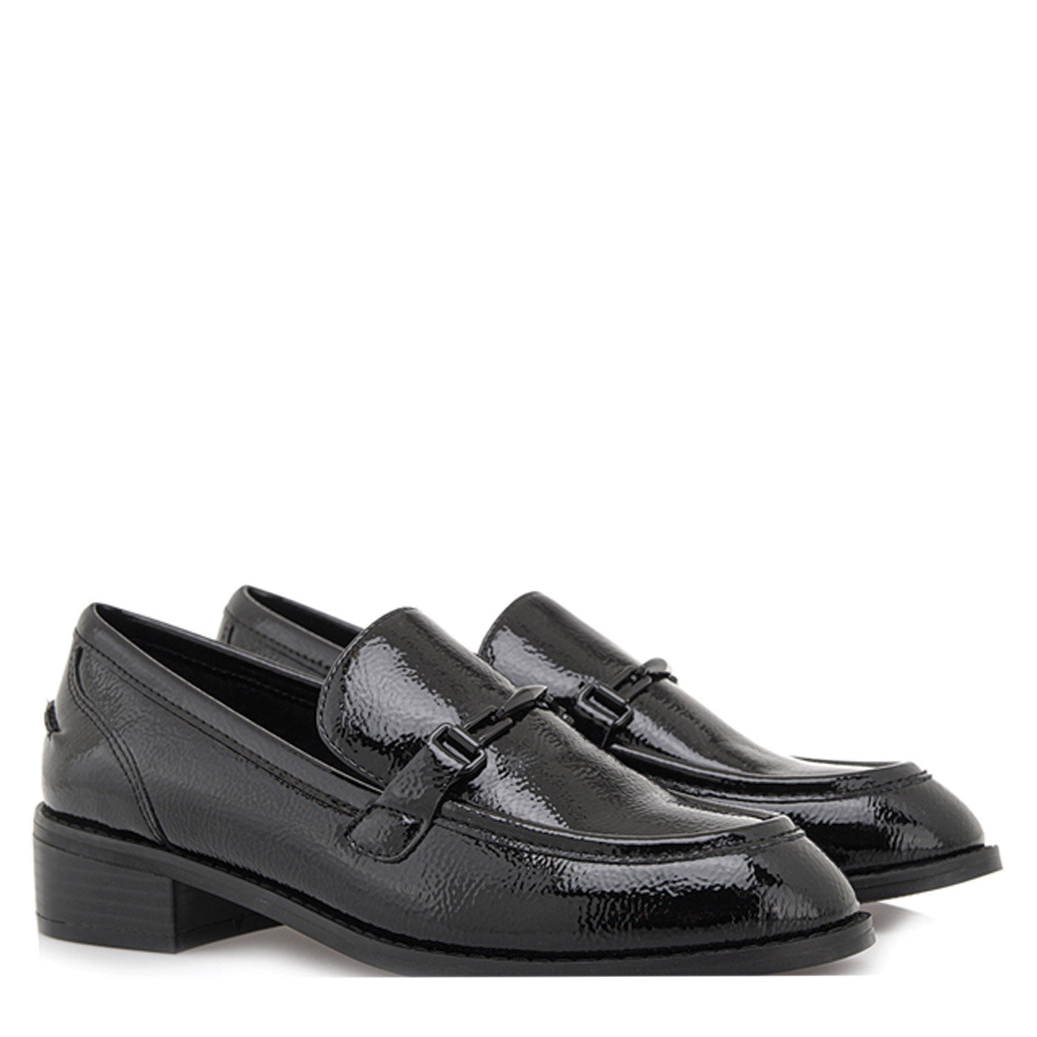 Exe γυναικείο loafer, σε μαύρο χρώμα, κατασκευασμένο από λουστρίνι. Ύψος τακουνιού 4εκ.