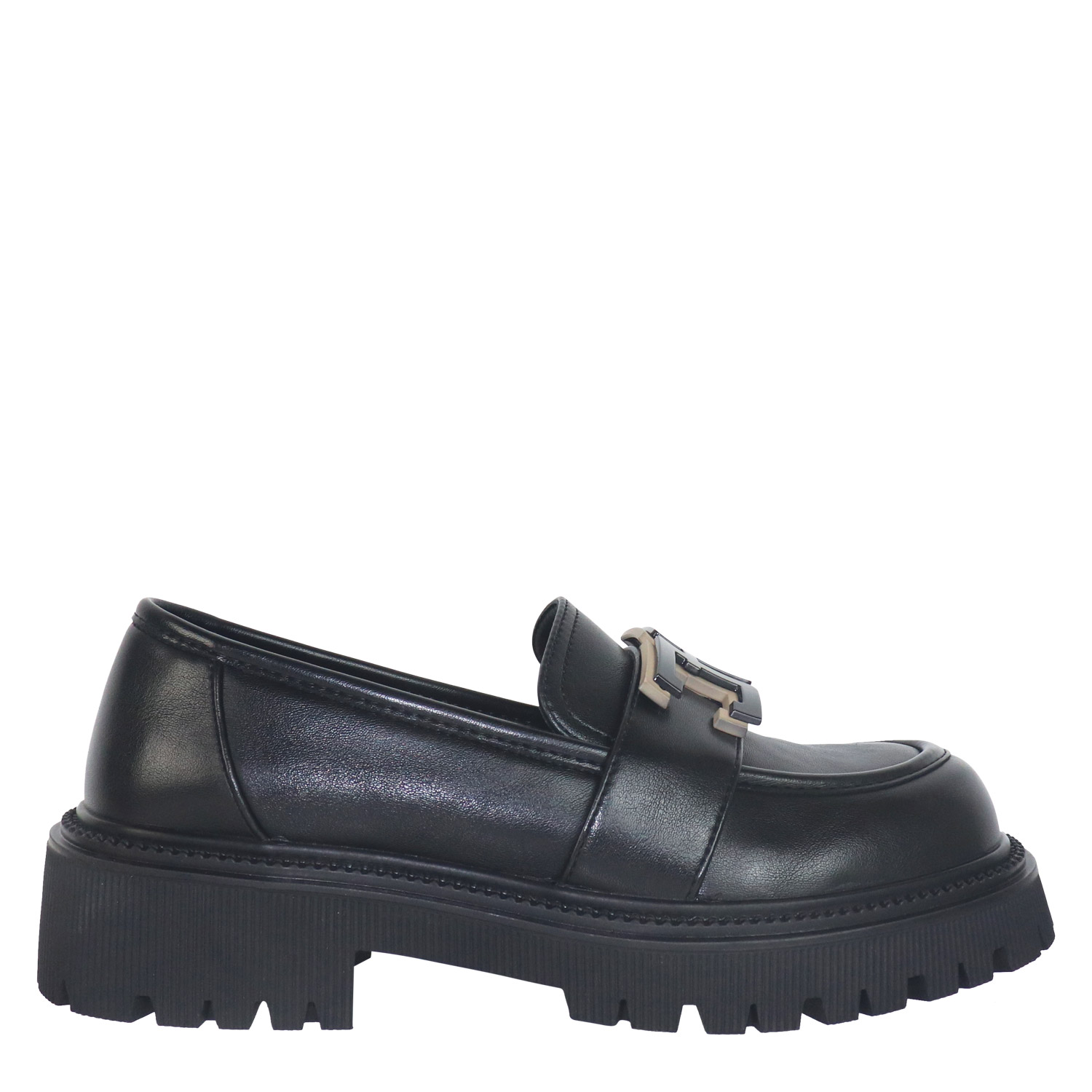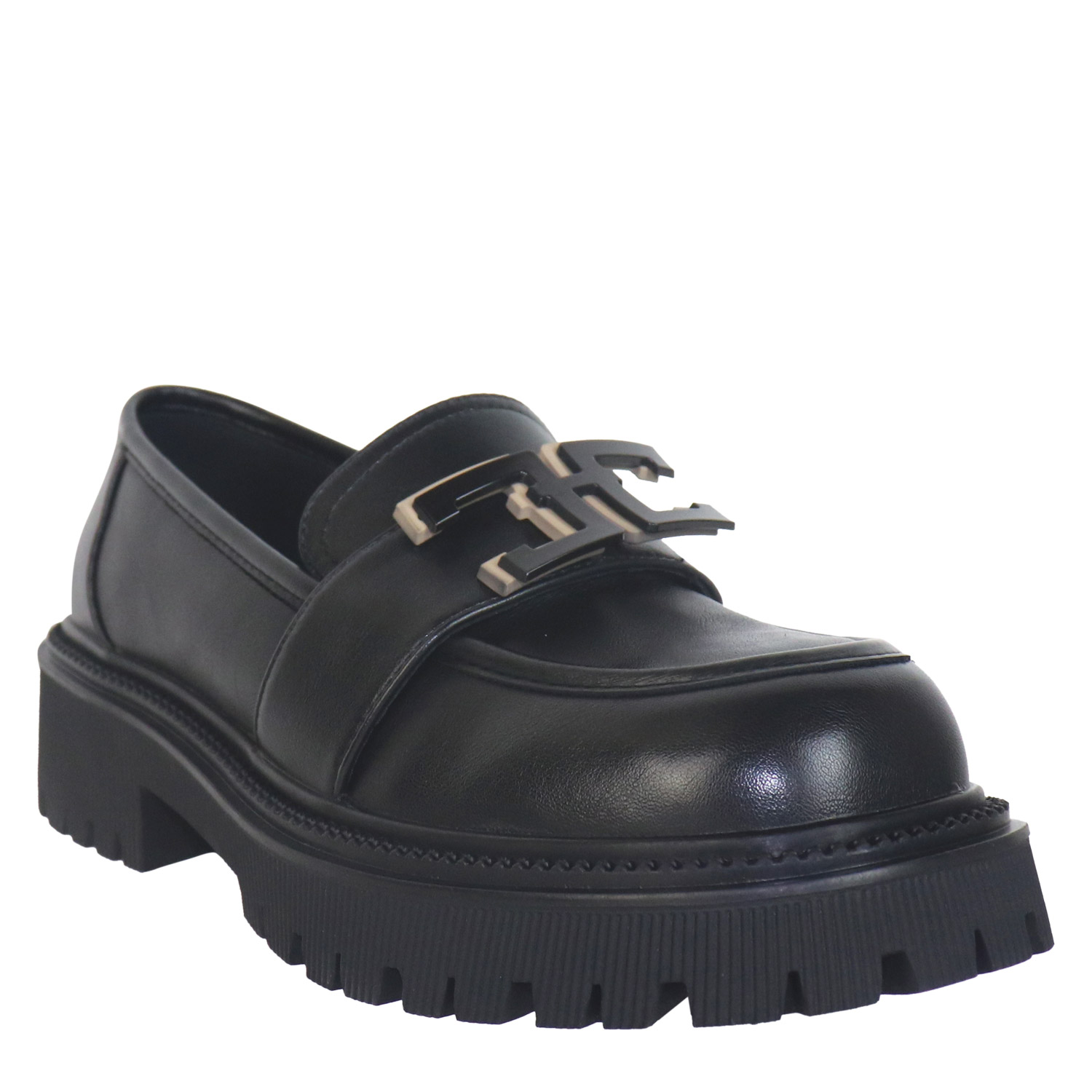 Gianna Kazakou γυναικείο loafer, σε μαύρο χρώμα, κατασκευασμένο από οικολογικό δέρμα. Ύψος τακουνιού 4.5εκ.