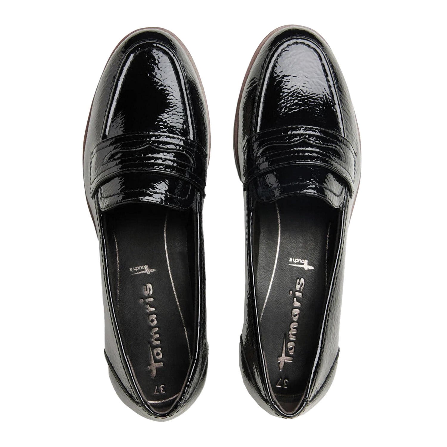 Με το Tamaris Essentials Loafer νιώθεις ασύγκριτη άνεση και διαχρονική κομψότητα – χάρη στο μαλακό πέλμα Touchit που προσαρμόζεται στα βήματά σου. Η στρογγυλή γραμμή, η urban chic αγκράφα και η λαμπερή υφή συνδυάζονται τέλεια για γραφείο, βόλτα ή φθινοπωρινές βραδιές. Αυτό το loafer τονίζει τον ατομικό σου στιλ με φινέτσα και ασφάλεια σε κάθε περίσταση.