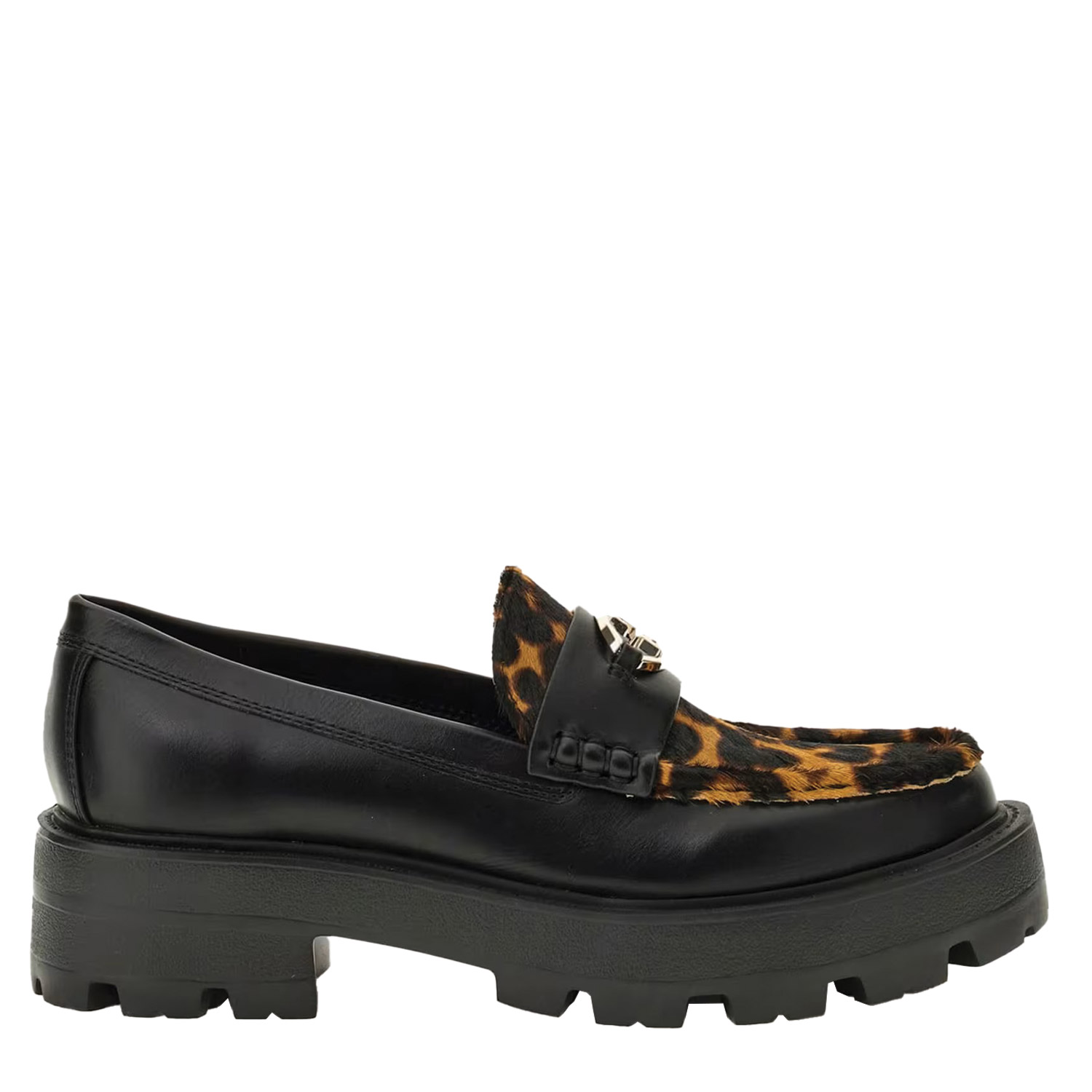 Guess γυναικείο loafer, σε μαύρο λεοπάρ χρώμα, κατασκευασμένο από οικολογικό δέρμα. Ύψος τακουνιού 5εκ.