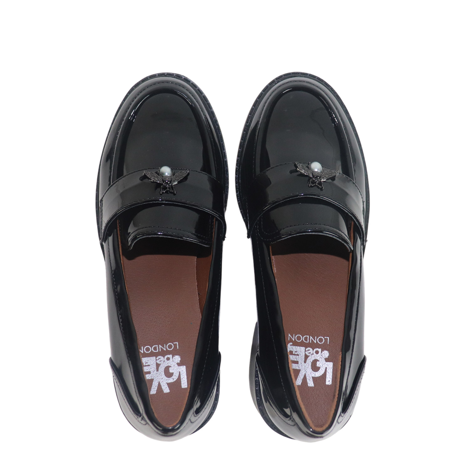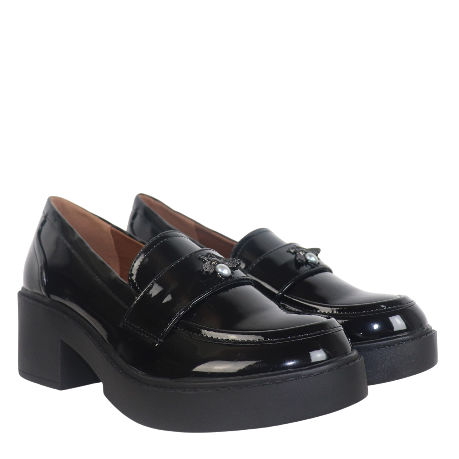 Loveberry γυναικείο loafer, σε μαύρο χρώμα, κατασκευασμένο από λουστρίνι. Ύψος τακουνιού 6εκ.