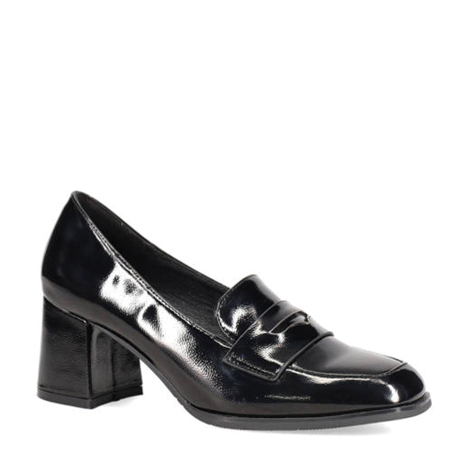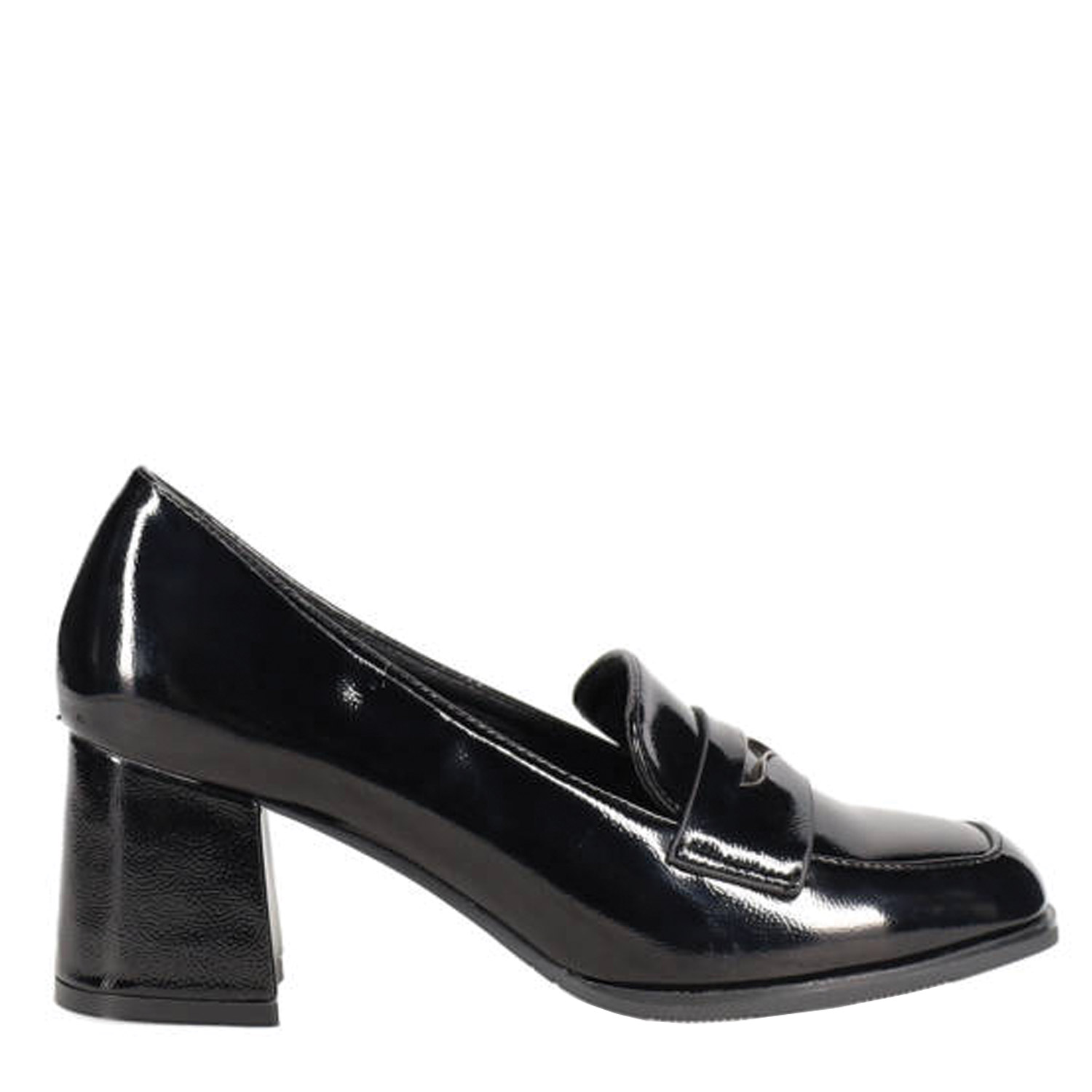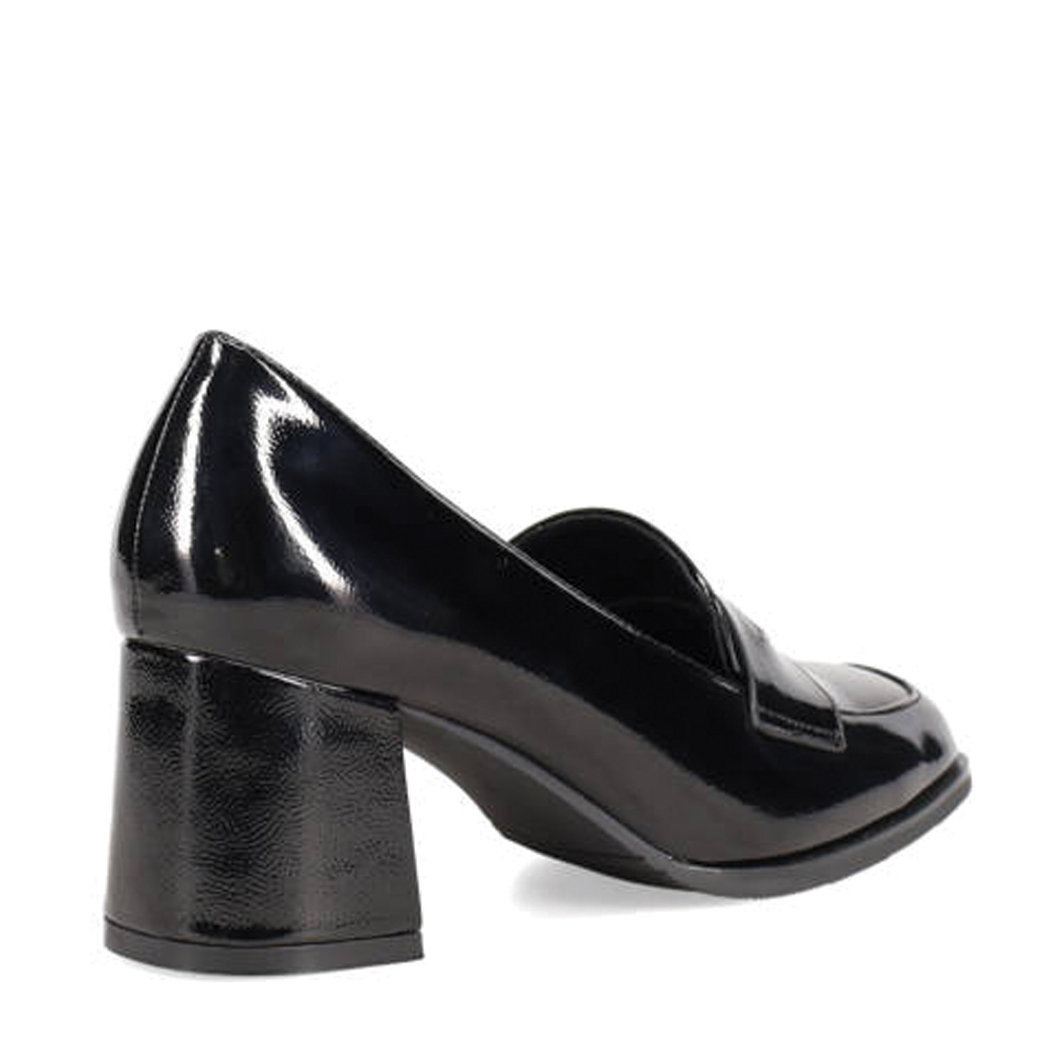 Μαύρο loafer. Διαθέτει μεσαίο χοντρό τακούνι.