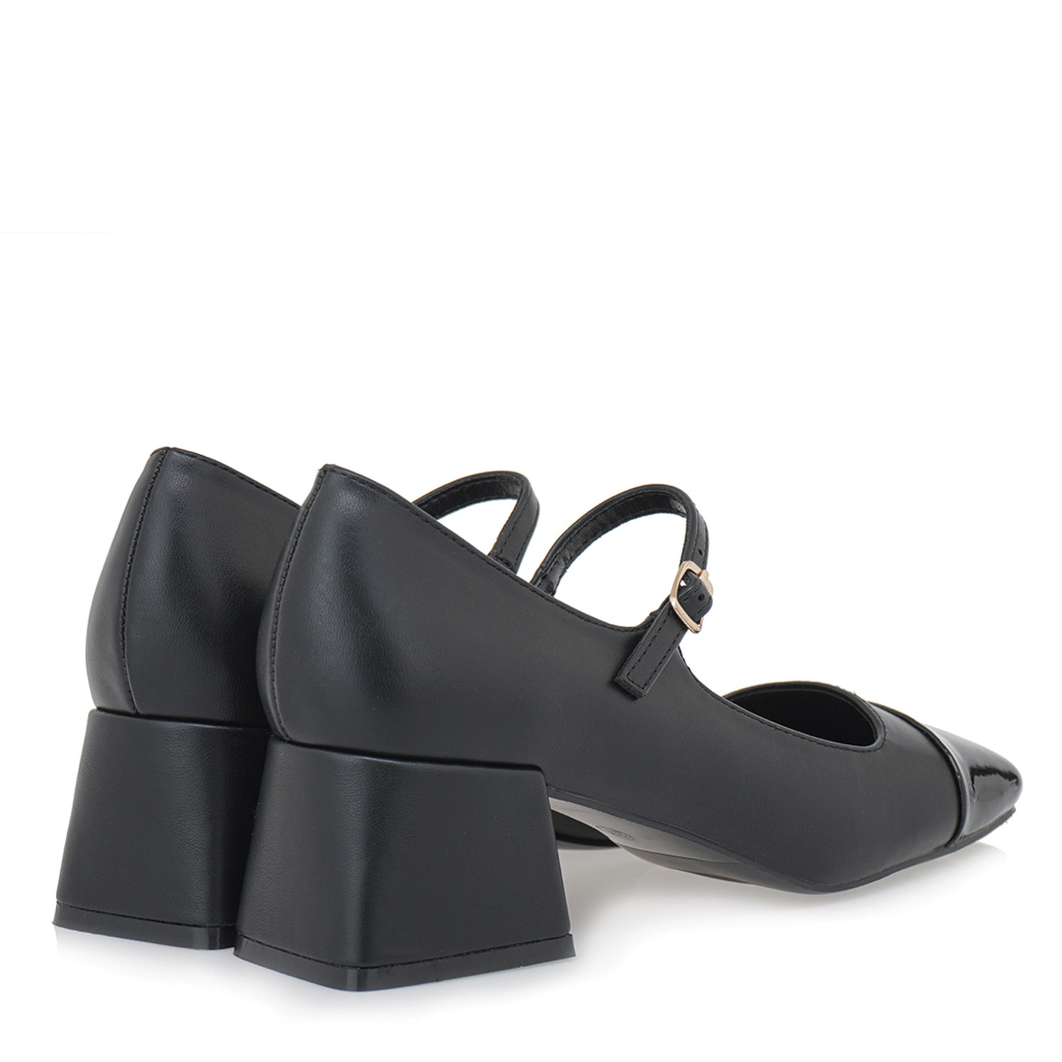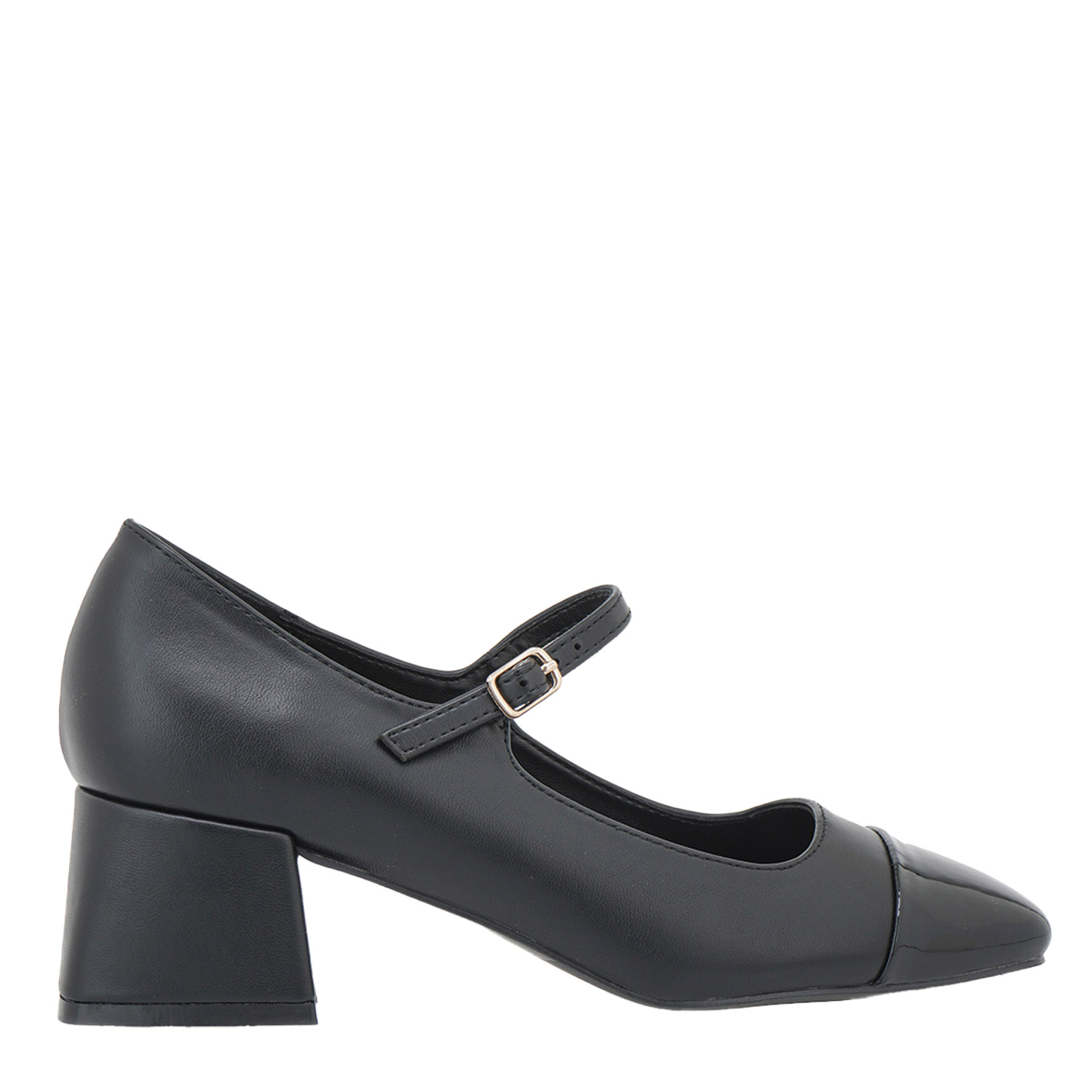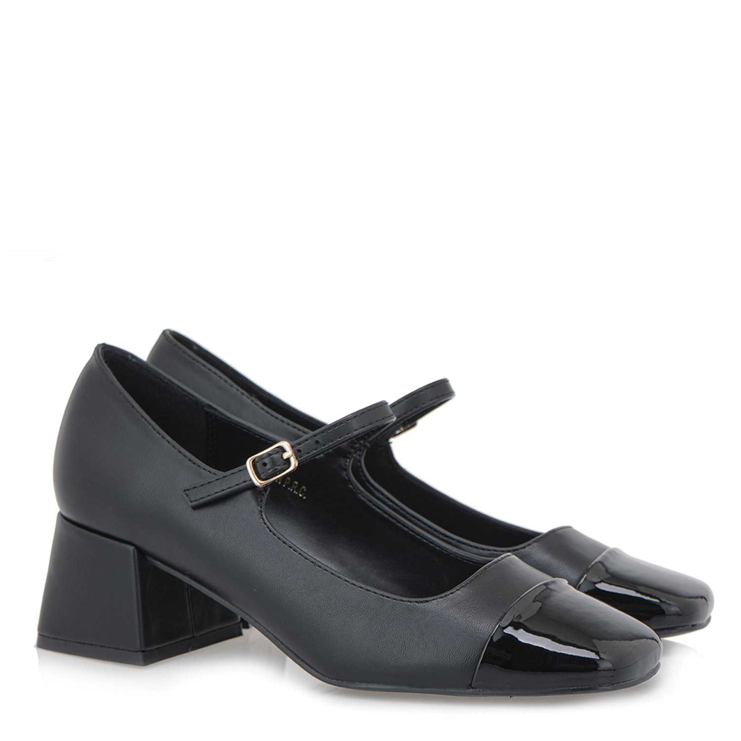 Seven γυναικείο Mary Jane, σε μαύρο χρώμα, κατασκευασμένη από λουστρίνι. Ύψος τακουνιού 5.5εκ.