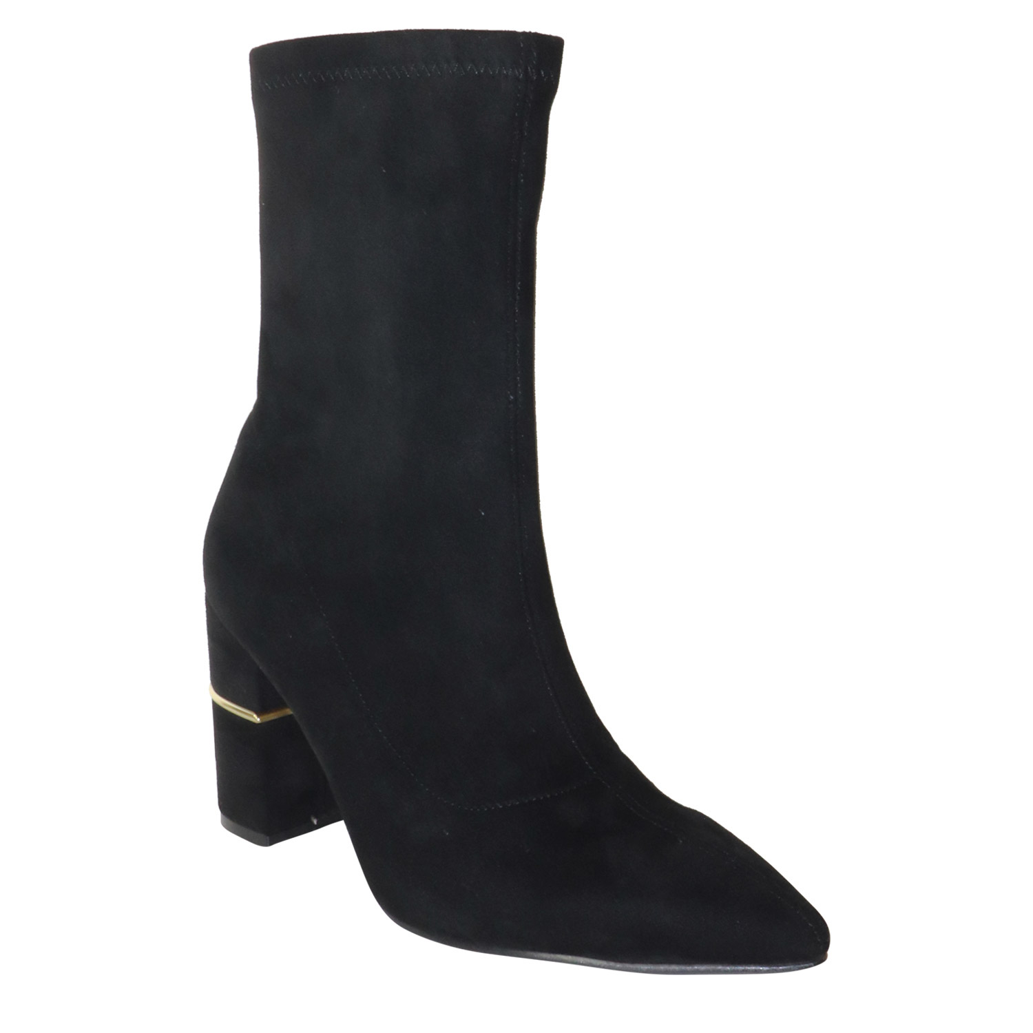 Migato γυναικείο μποτάκι, σε μαύρο χρώμα, κατασκευασμένο από οικολογικό δέρμα. Ύψος τακουνιού 8.5εκ.
