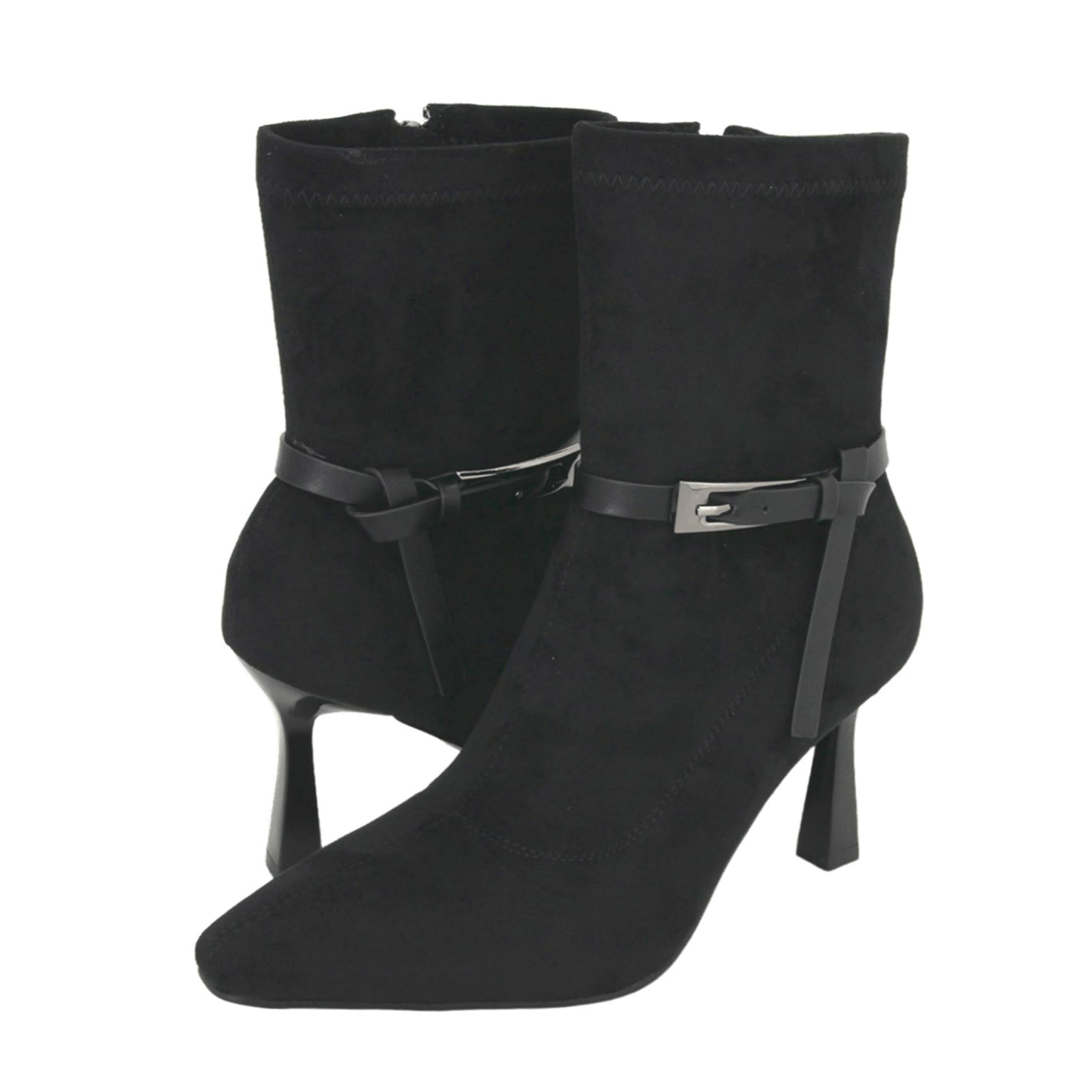 Gianna Kazakou γυναικείο μποτάκι, σε μαύρο χρώμα, κατασκευασμένο από καστορι συνθετικο με υφασμάτινη φόδρα. Ύψος τακουνιού 8.5εκ.