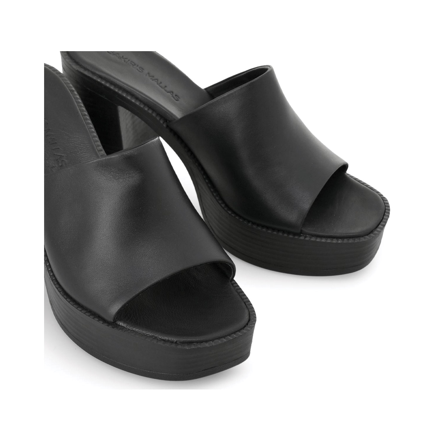 Tsakiris Mallas γυναικείο mule, σε μαύρο χρώμα, κατασκευασμένο από δέρμα. Ύψος τακουνιού 9.5εκ.
