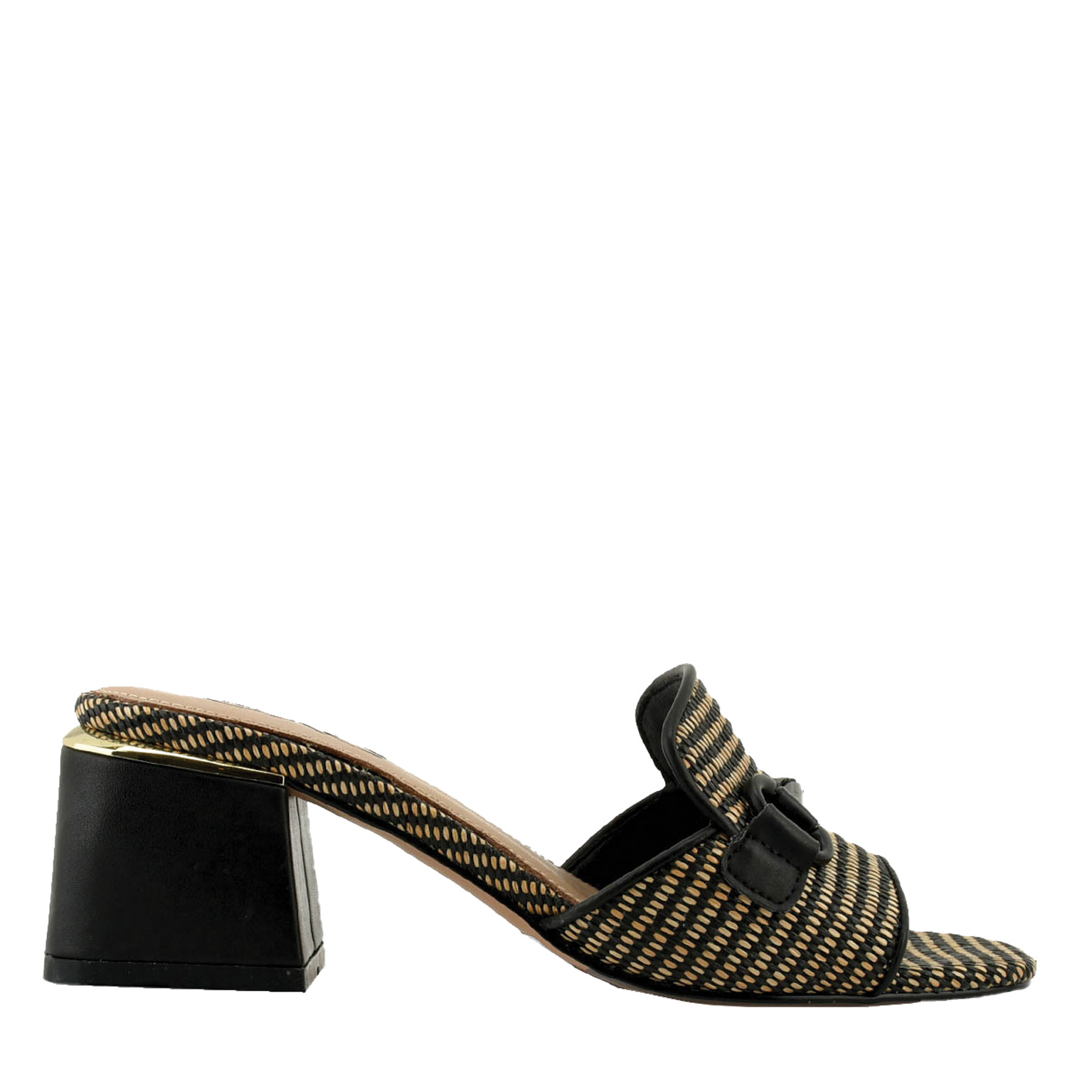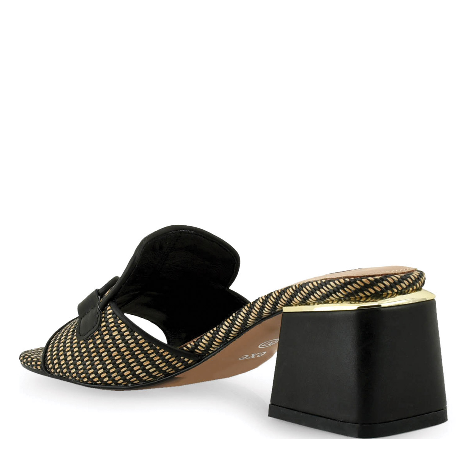 Exe γυναικείο mule, σε μαύρο χρώμα, κατασκευασμένο από ψάθα και οικολογικό δέρμα. Ύψος τακουνιού 6.5εκ.
