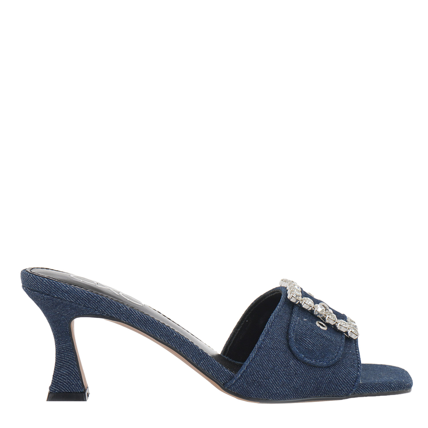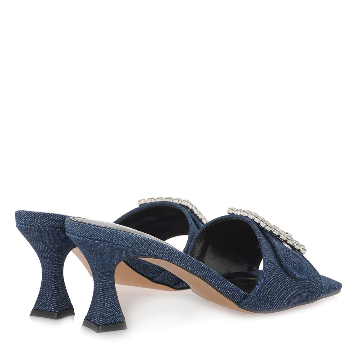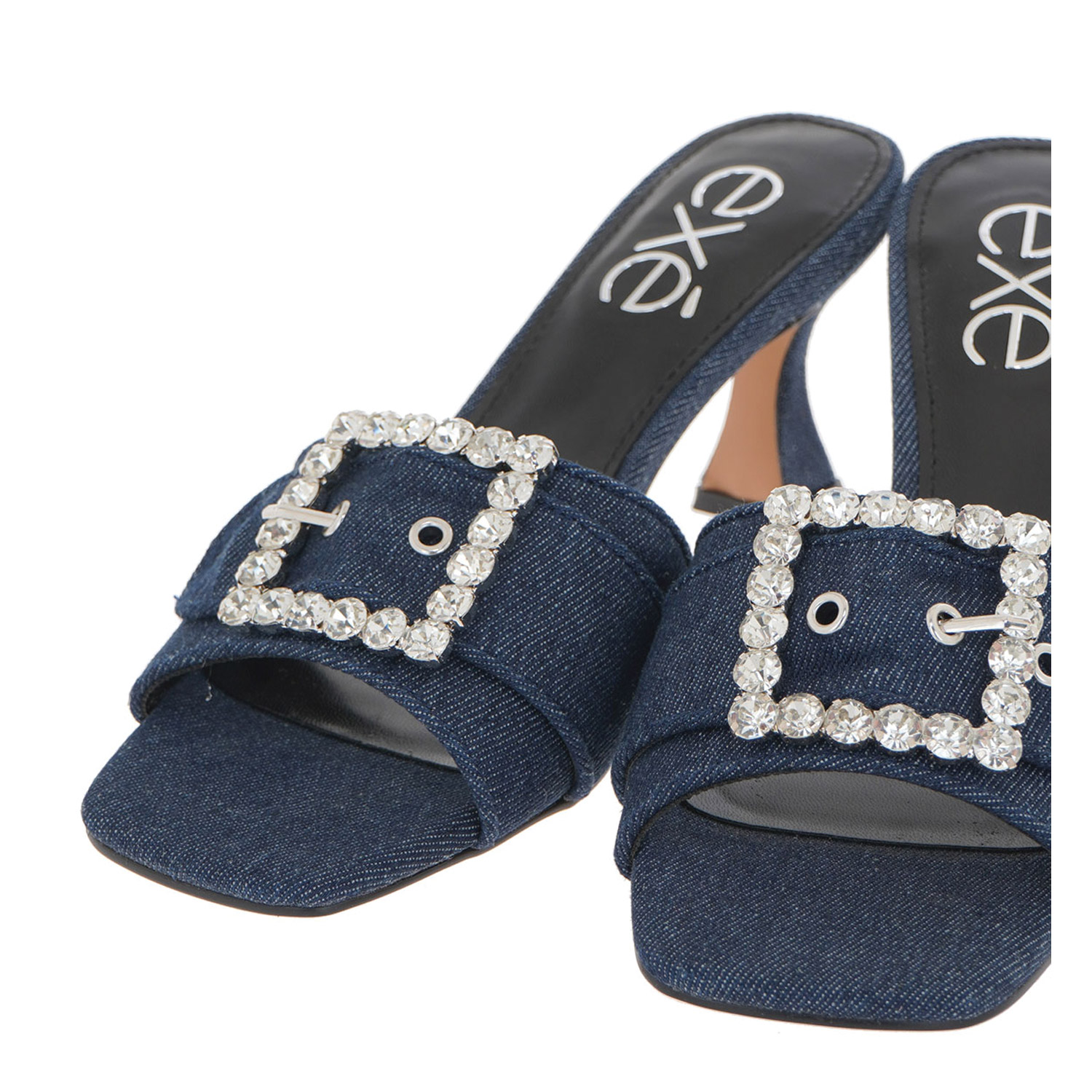 Exe γυναικείο mule, σε τζην χρώμα, κατασκευασμένο από ύφασμα. Ύψος τακουνιού 7.5εκ.