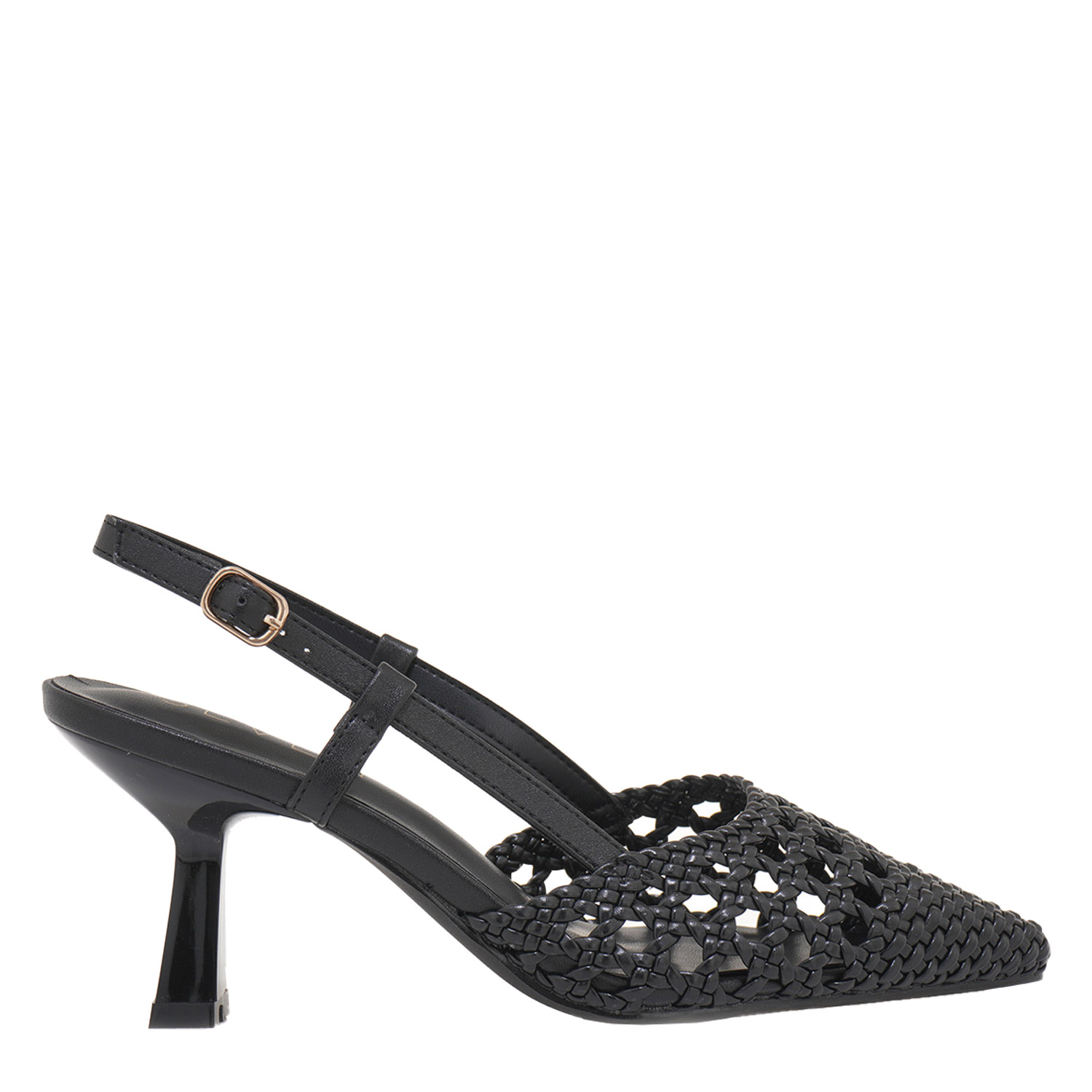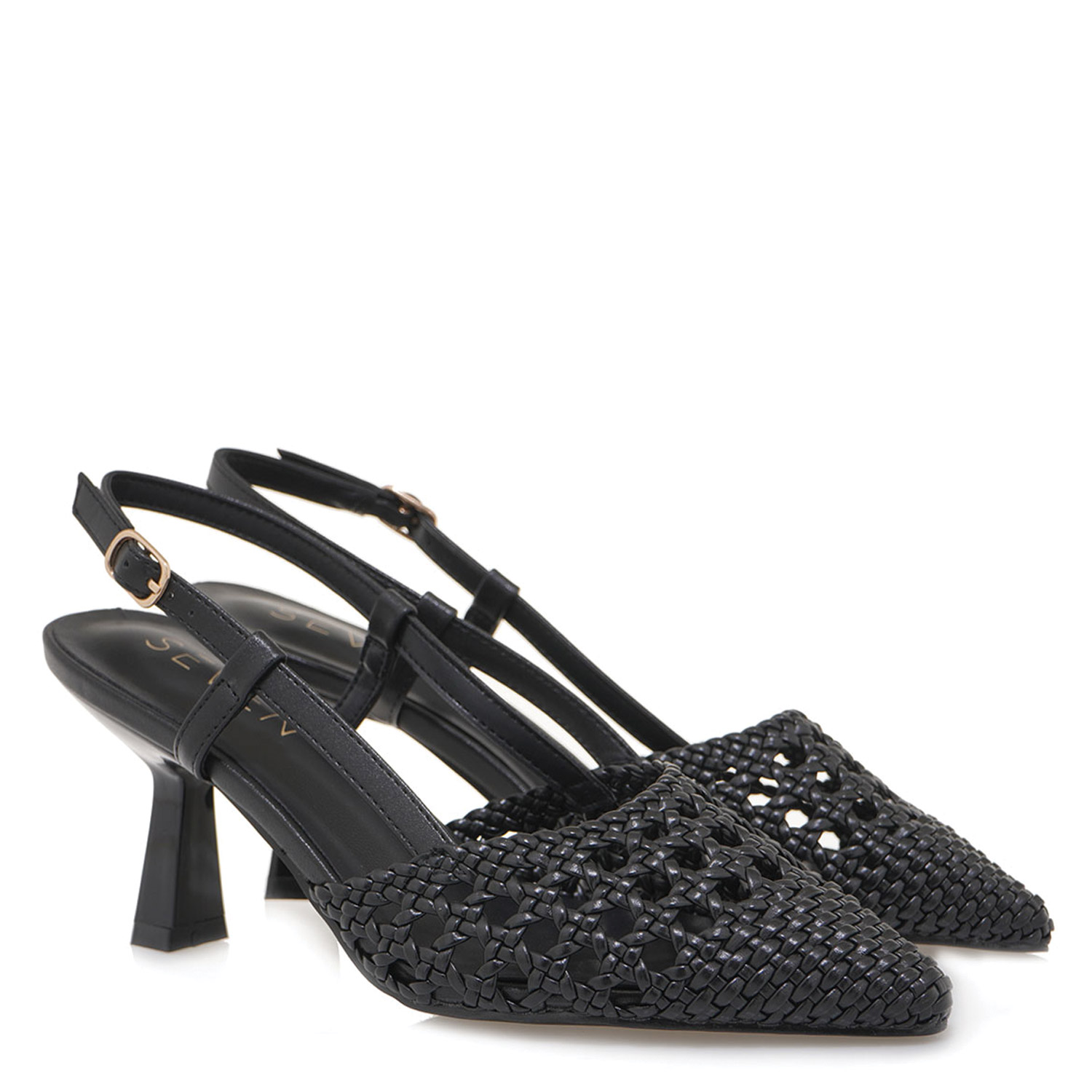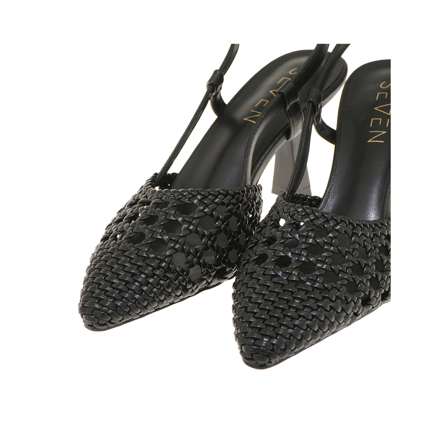 Seven γυναικείο mule, σε μαύρο χρώμα, κατασλευασμένο από οικολογικό δέρμα. Ύψος τακουνιού 8.5εκ.