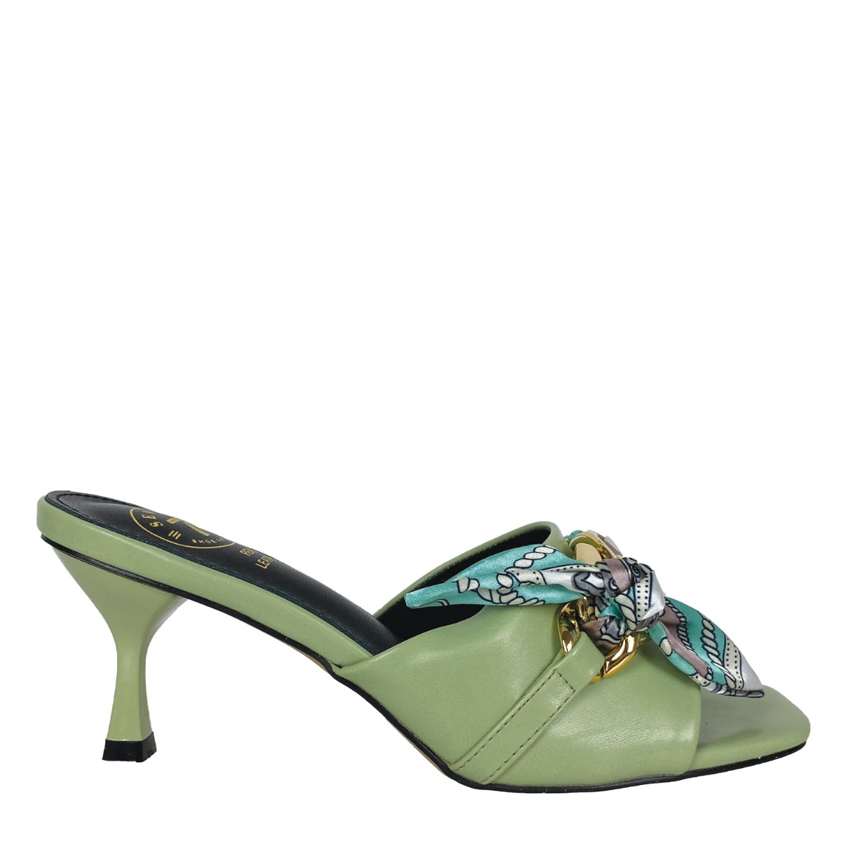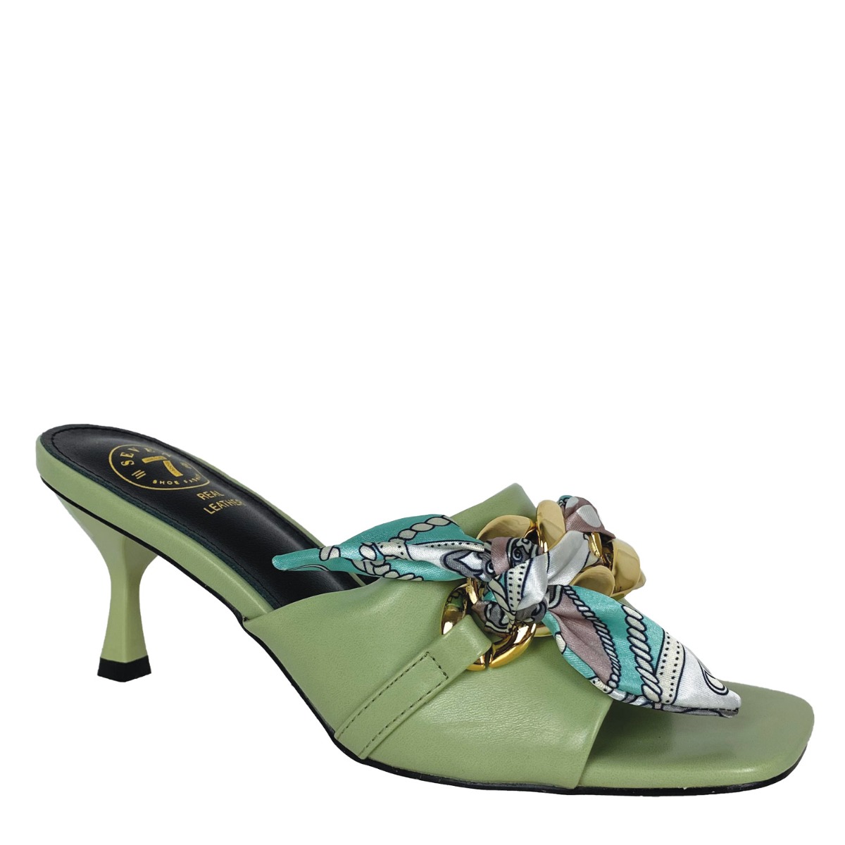 Seven γυναικείο mule σε χρώμα μέντας κατασκευασμένο από οικολογικό δέρμα, με ανατομικό πατάκι. Ύψος τακουνιού 8εκ.