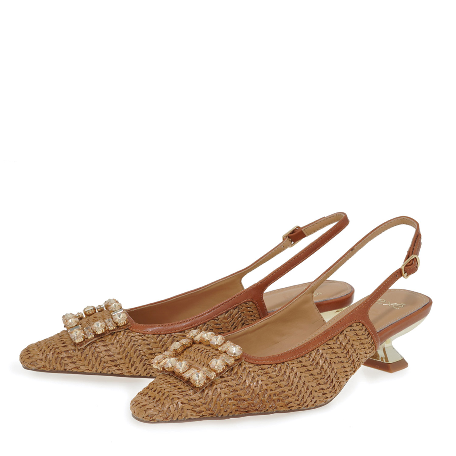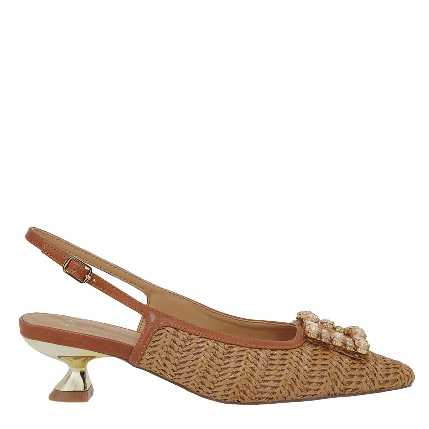 Exe γυναικείο mule, σε καμηλό χρώμα, κατασκευασμένο από οικολογικό δέρμα. Ύψος τακουνιού 4.5εκ.