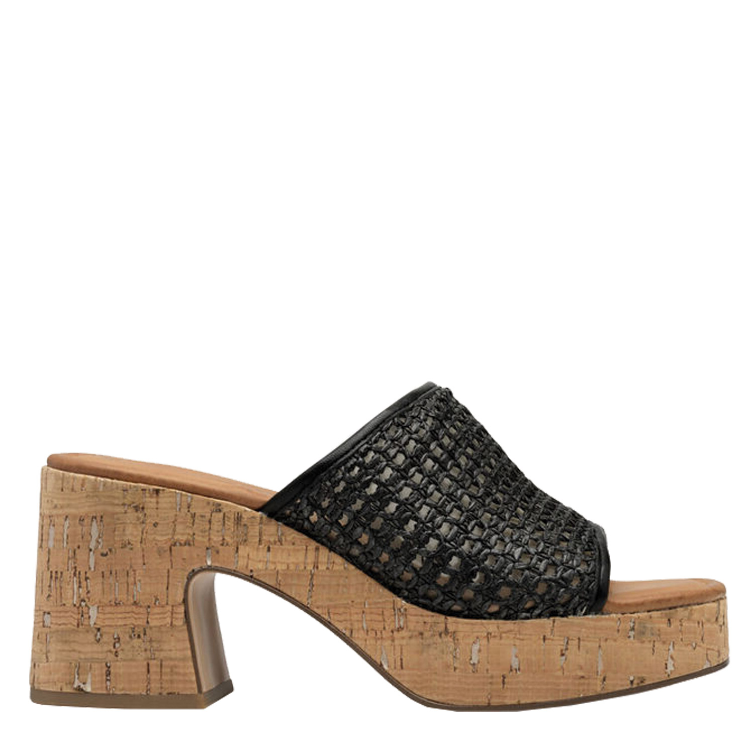 Tamaris γυναικείο mule σε μαύρο χρώμα κατασκευασμένο από ύφασμα και οικολογικό δέρμα. Ύψος τακουνιού 8εκ.
