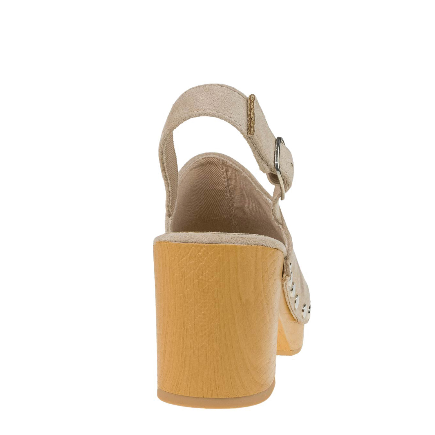 Koniarisshoes γυναικείο τσόκαρο, σε μπεζ χρώμα, κατασκευασμένο από ύφασμα. Ύψος τακουνιού 7εκ. και ύψος φιάπας 3εκ.