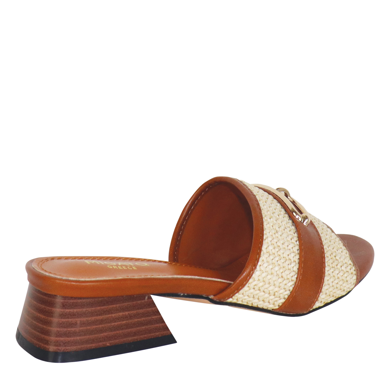 Migato γυναικείο mule σε ταμπά χρώμα κατασκευασμένο από ψάθα και οικολογικό δέρμα. Ύψος τακουνιού 4εκ.