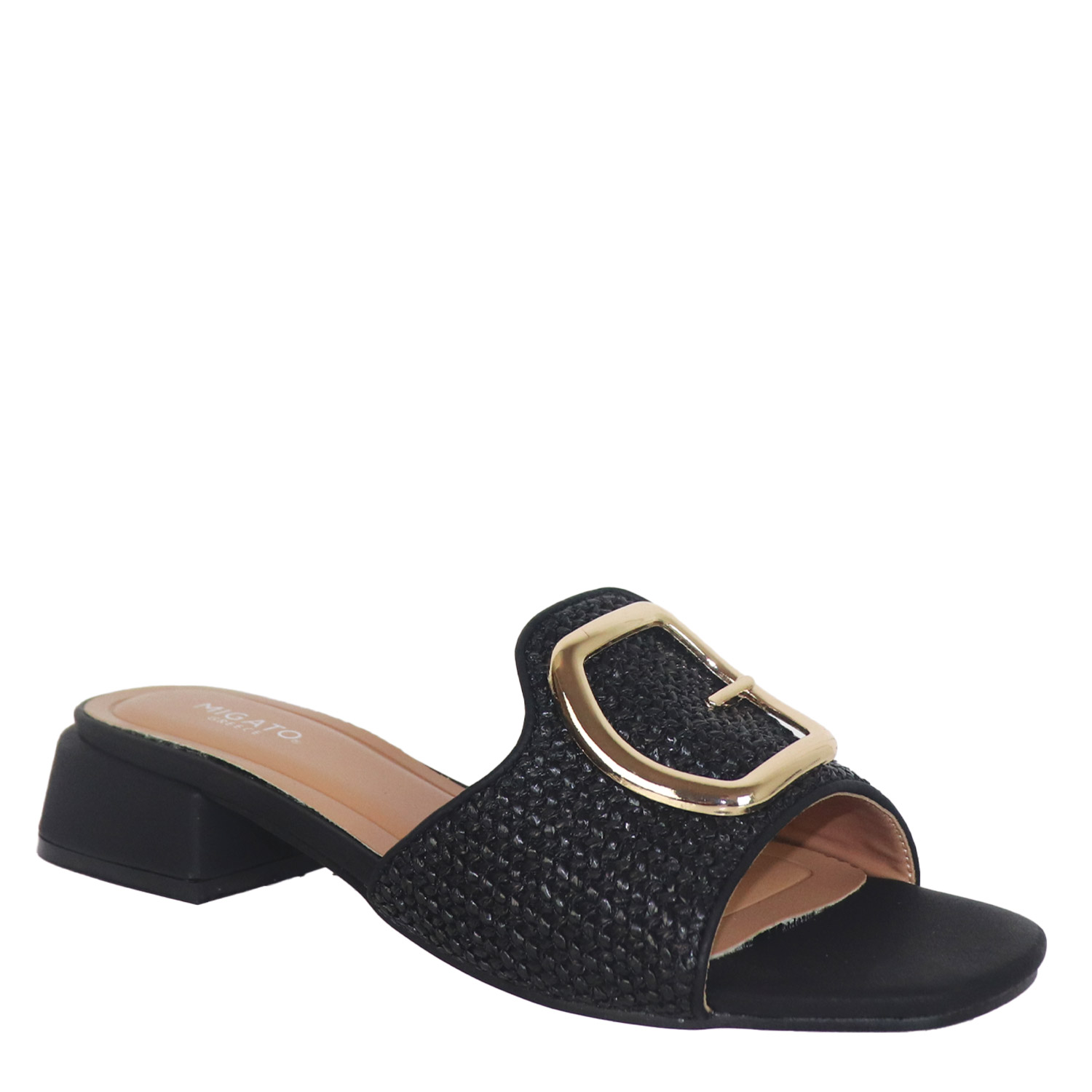 Migato γυναικείο mule σε μαύρο χρώμα κατασκευασμένο από ύφασμα. Ύψος τακουνιού 2εκ.