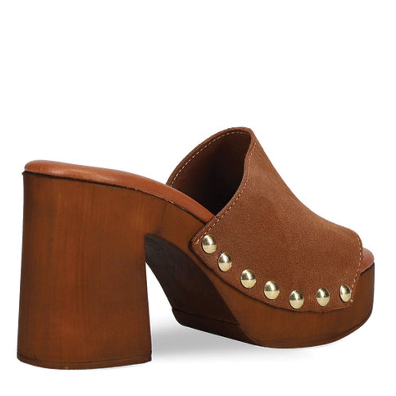 Migato γυναικείο mule με τακούνι σε καφέ χρώμα κατασκευασμένο από καστόρι. Ύψος τακουνιού 9εκ.