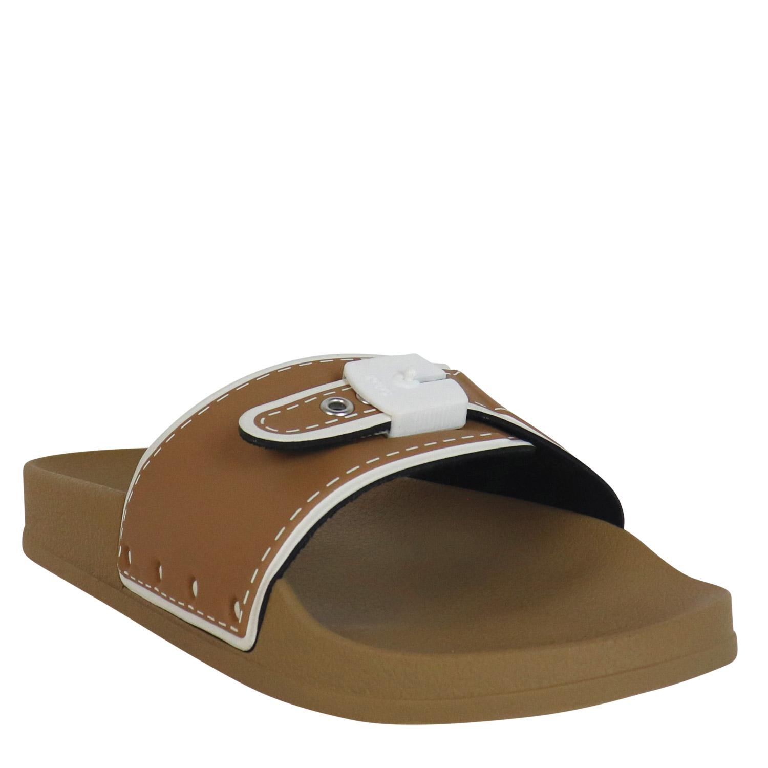 Scholl γυναικείο slide, σε μπεζ χρώμα, κατασκευασμένο από οικολογικό δέρμα. ύψος σόλας 2,5εκ.
