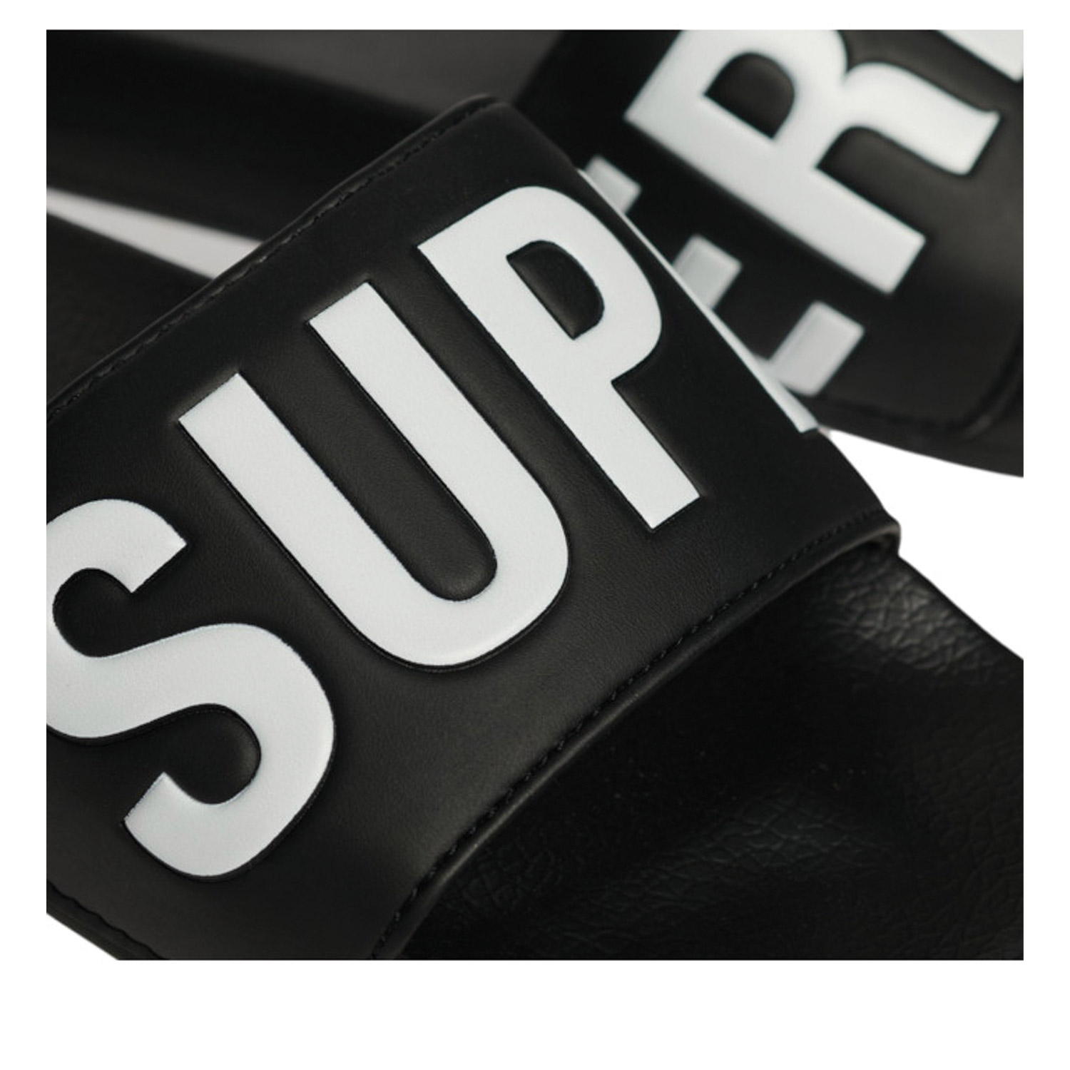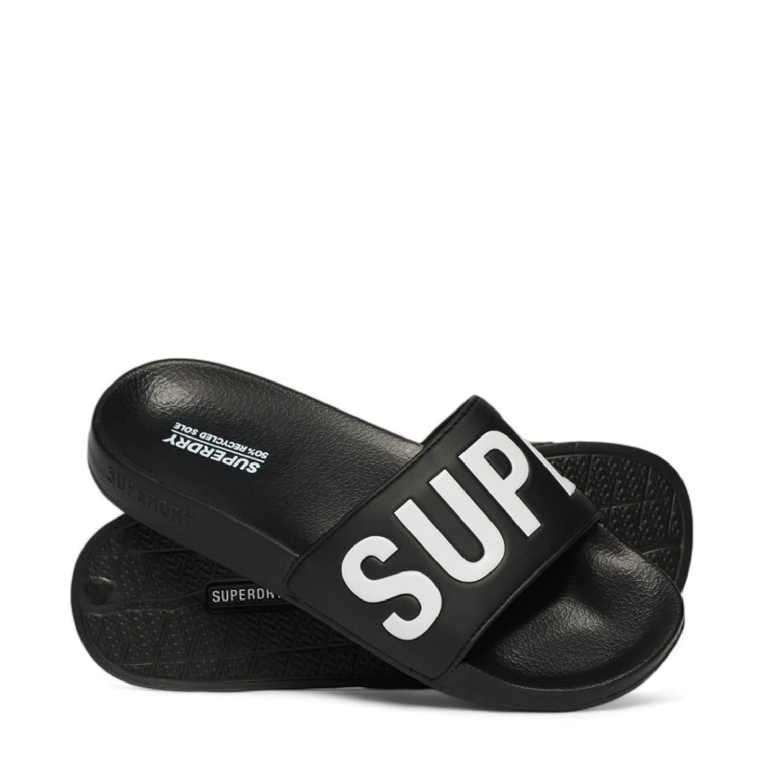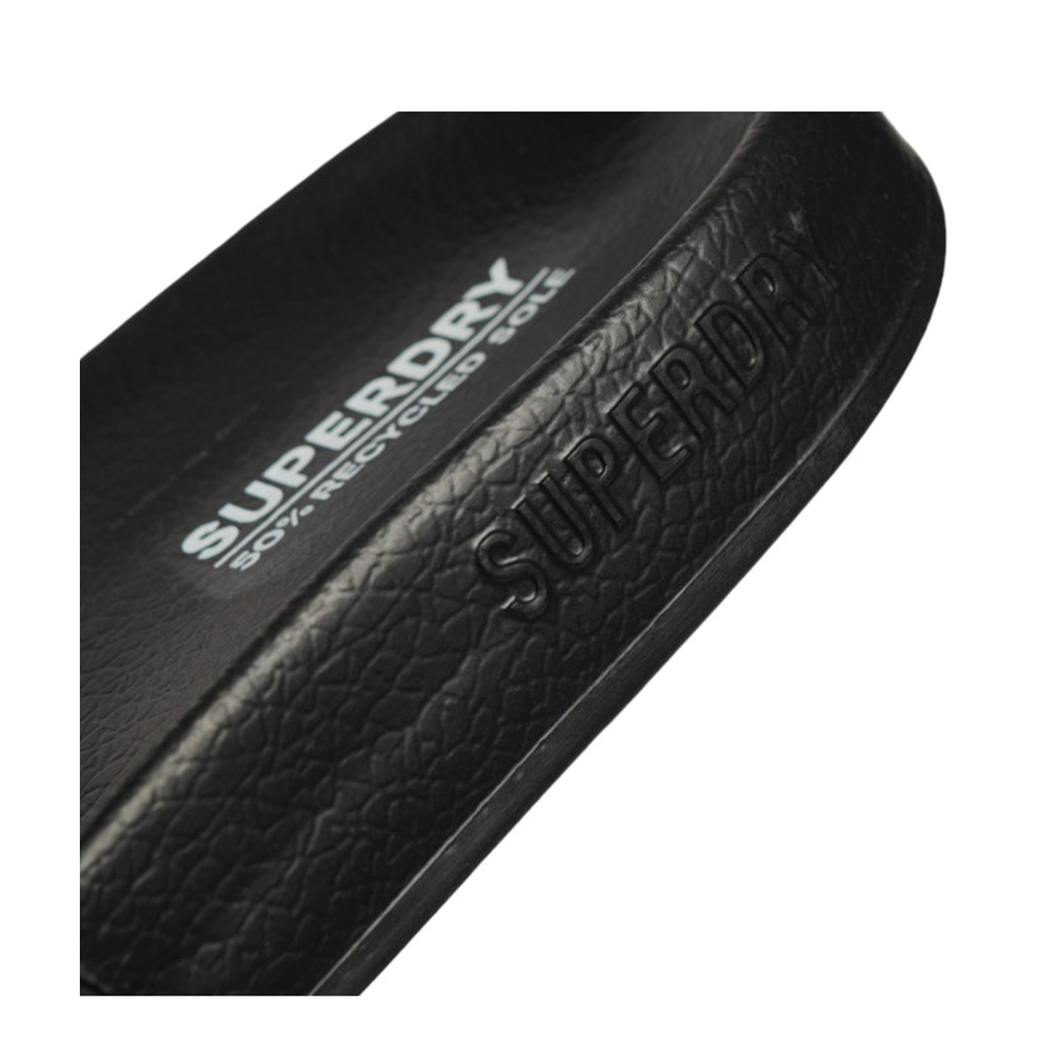 Superdry γυναικείο slide, σε μαύρο χρώμα, κατασκευασμένο από οικολογικό δέρμα. Ύψος σόλας 2εκ.