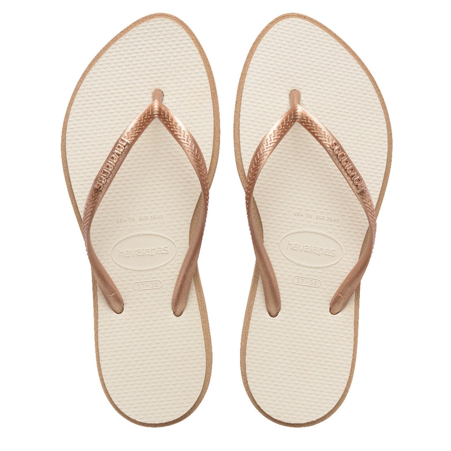 Havaianas γυναικείο flip-flop, σε μπεζ-χρυσό χρώμα, κατασκευασμένο από οικολογικό δέρμα. Ύψος σόλας 1.5εκ.