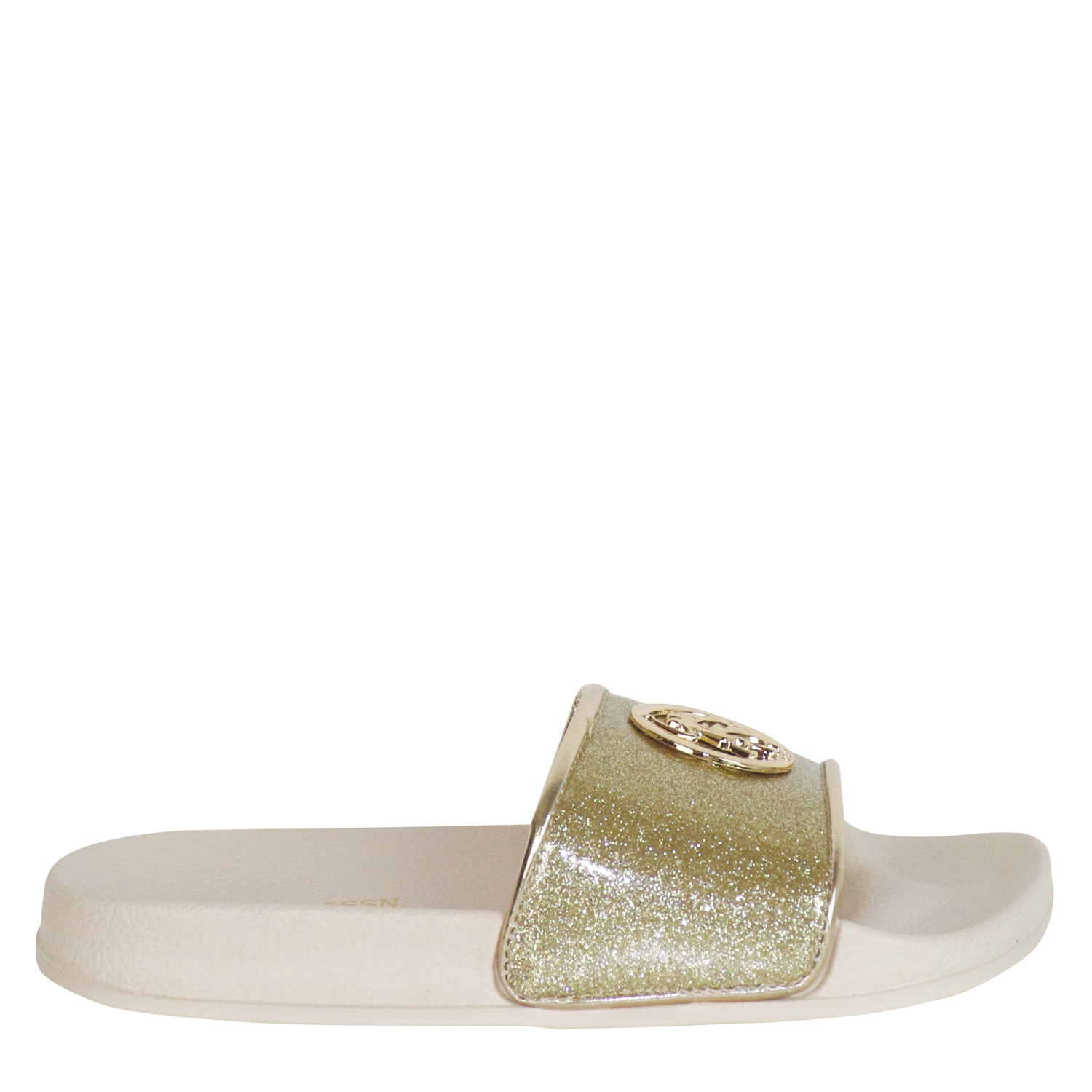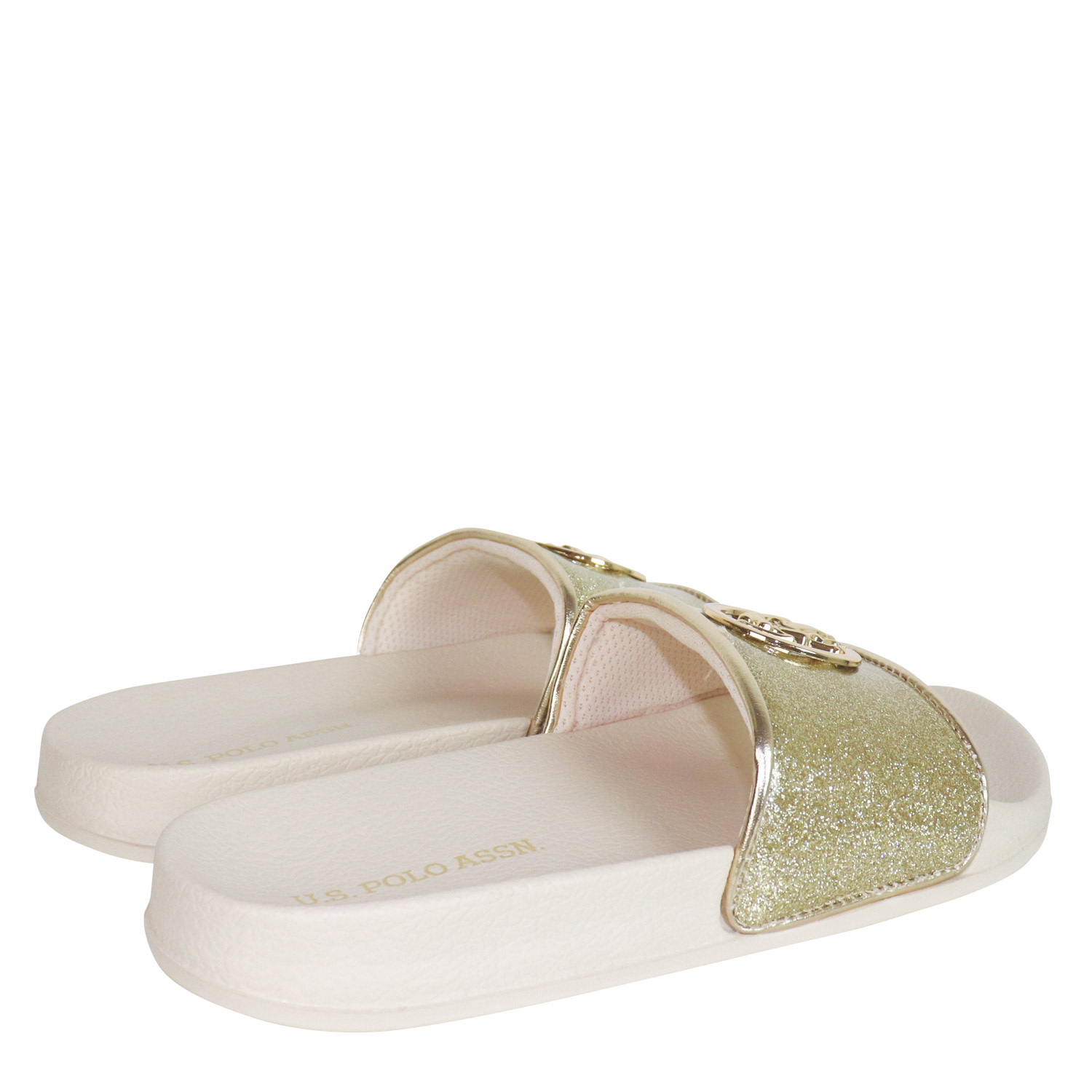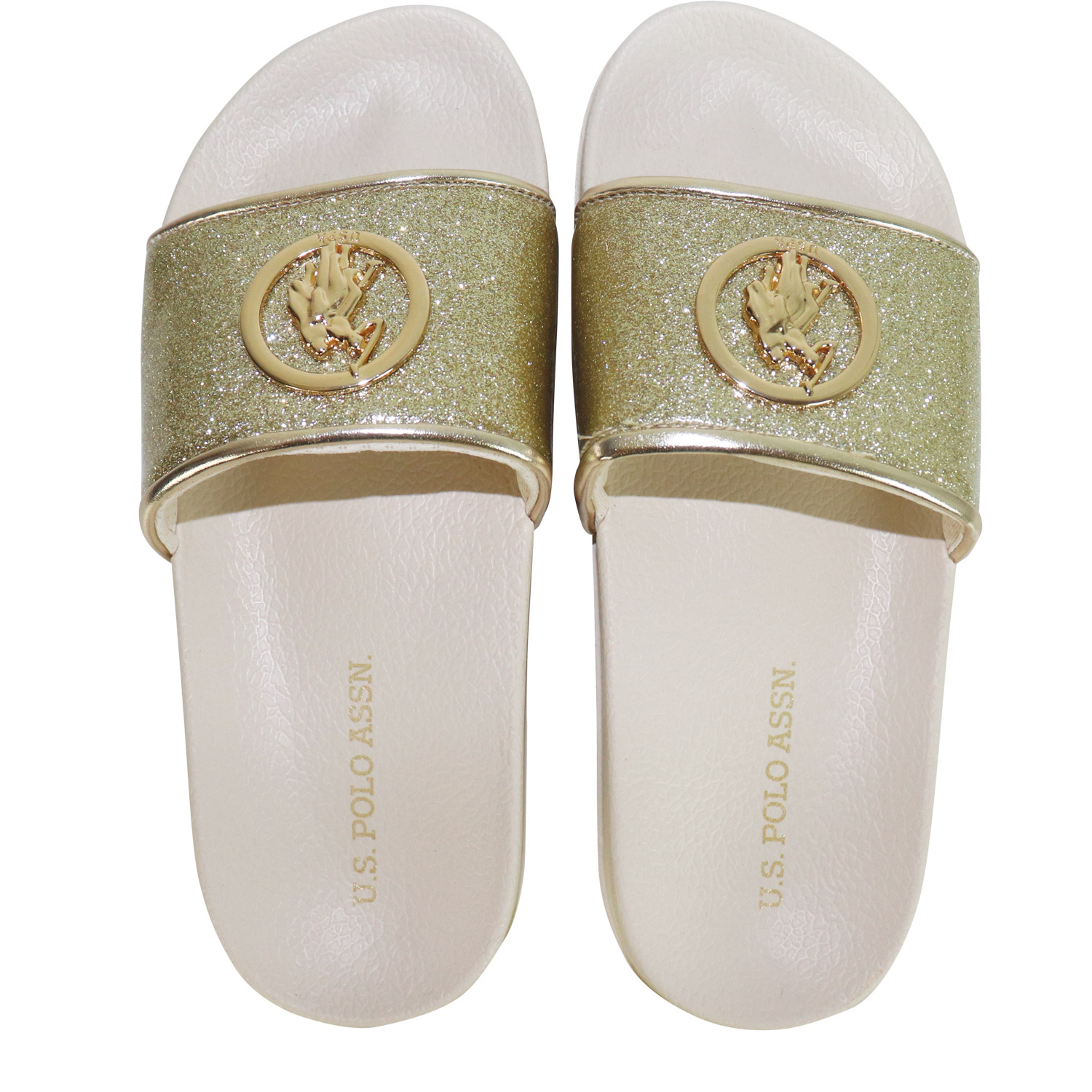 U.S. Polo ASSN γυναικείο slide, σε χρυσό χρώμα, κατασκευασμένο από οικολογικό δέρμα. Ύψος σόλας 2.5εκ.