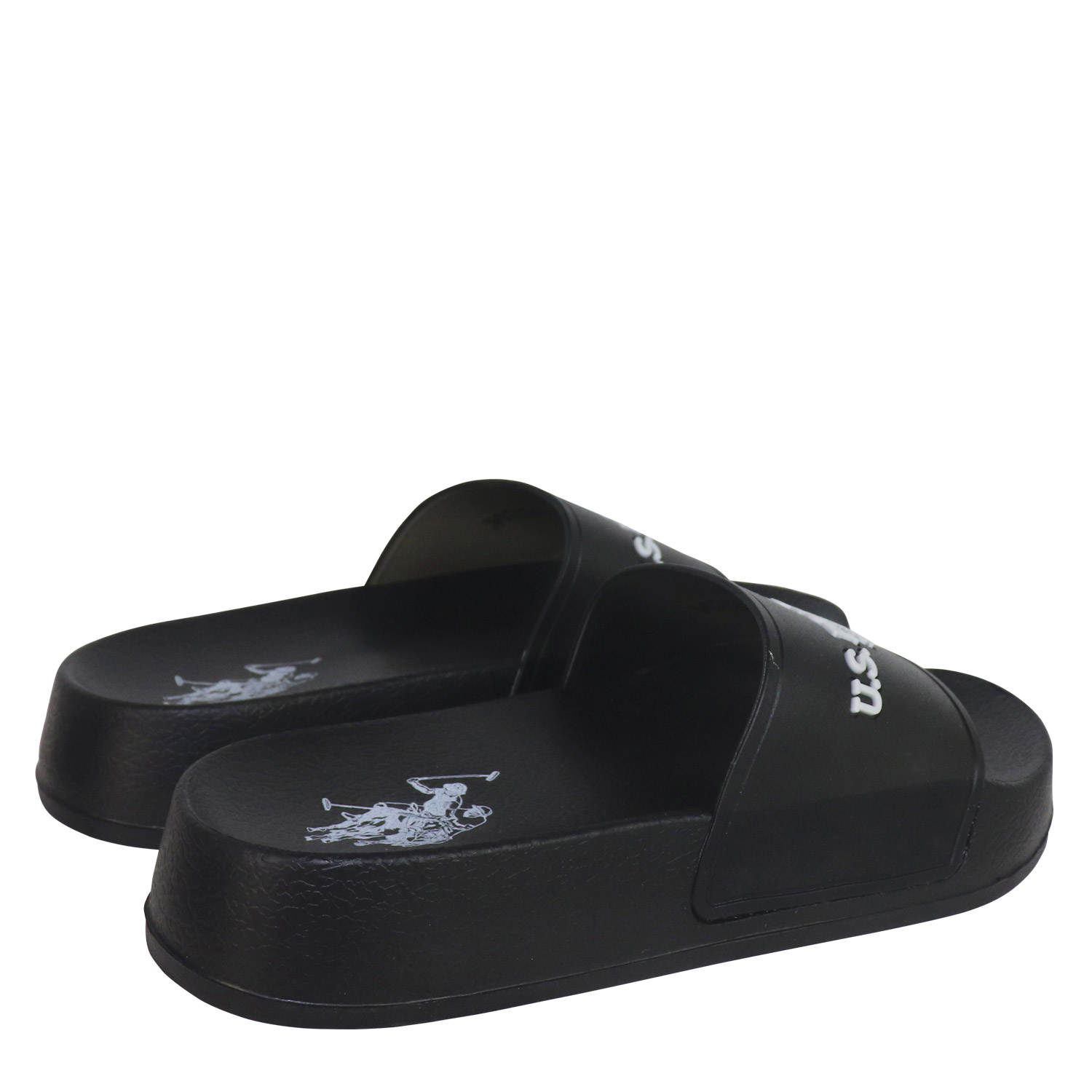 U.S. Polo ASSN γυναικείο slide, σε μαύρο χρώμα, κατασκευασμένο από οικολογικό δέρμα. Ύψος σόλας 4εκ.
